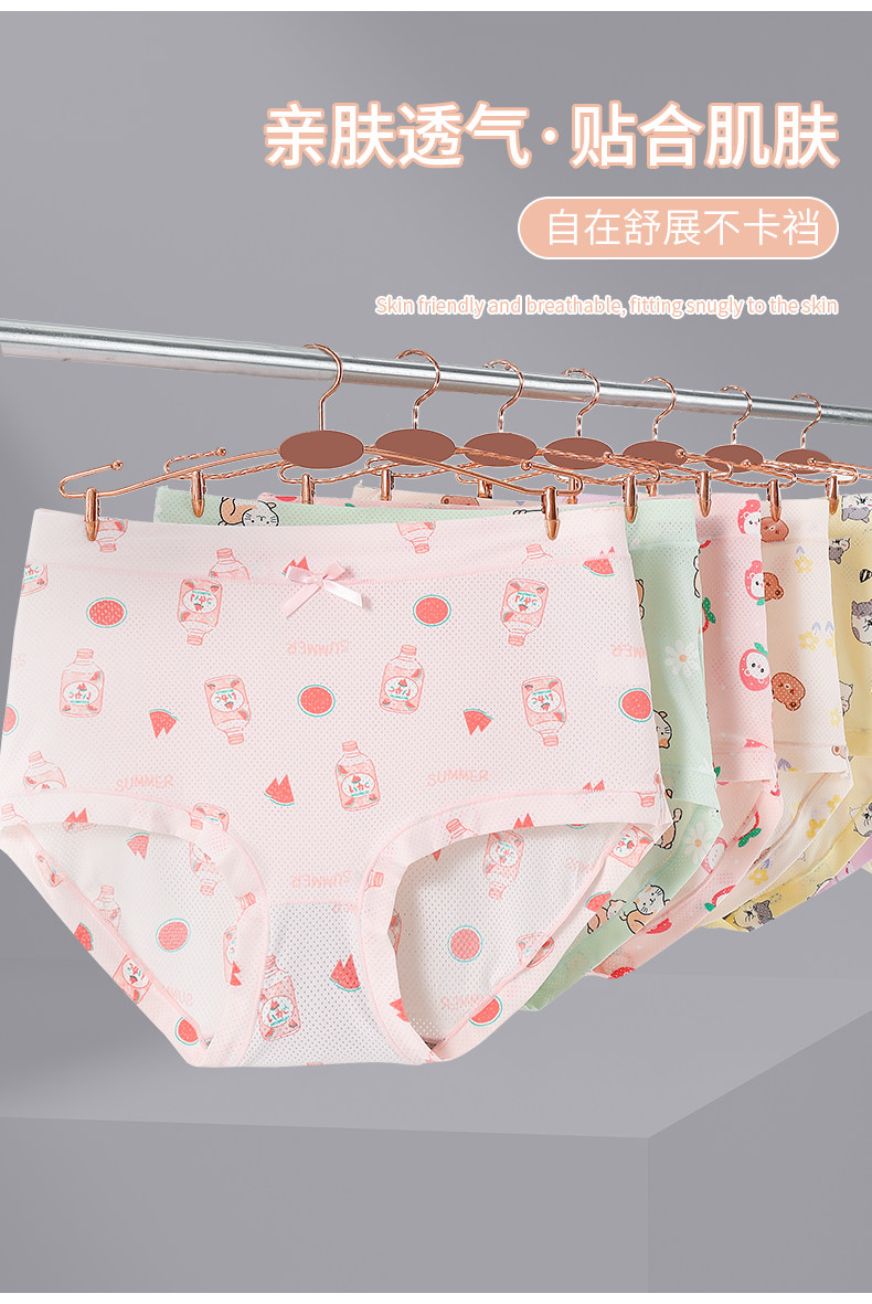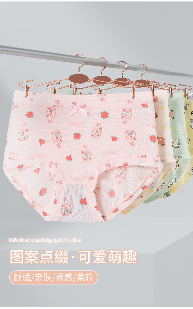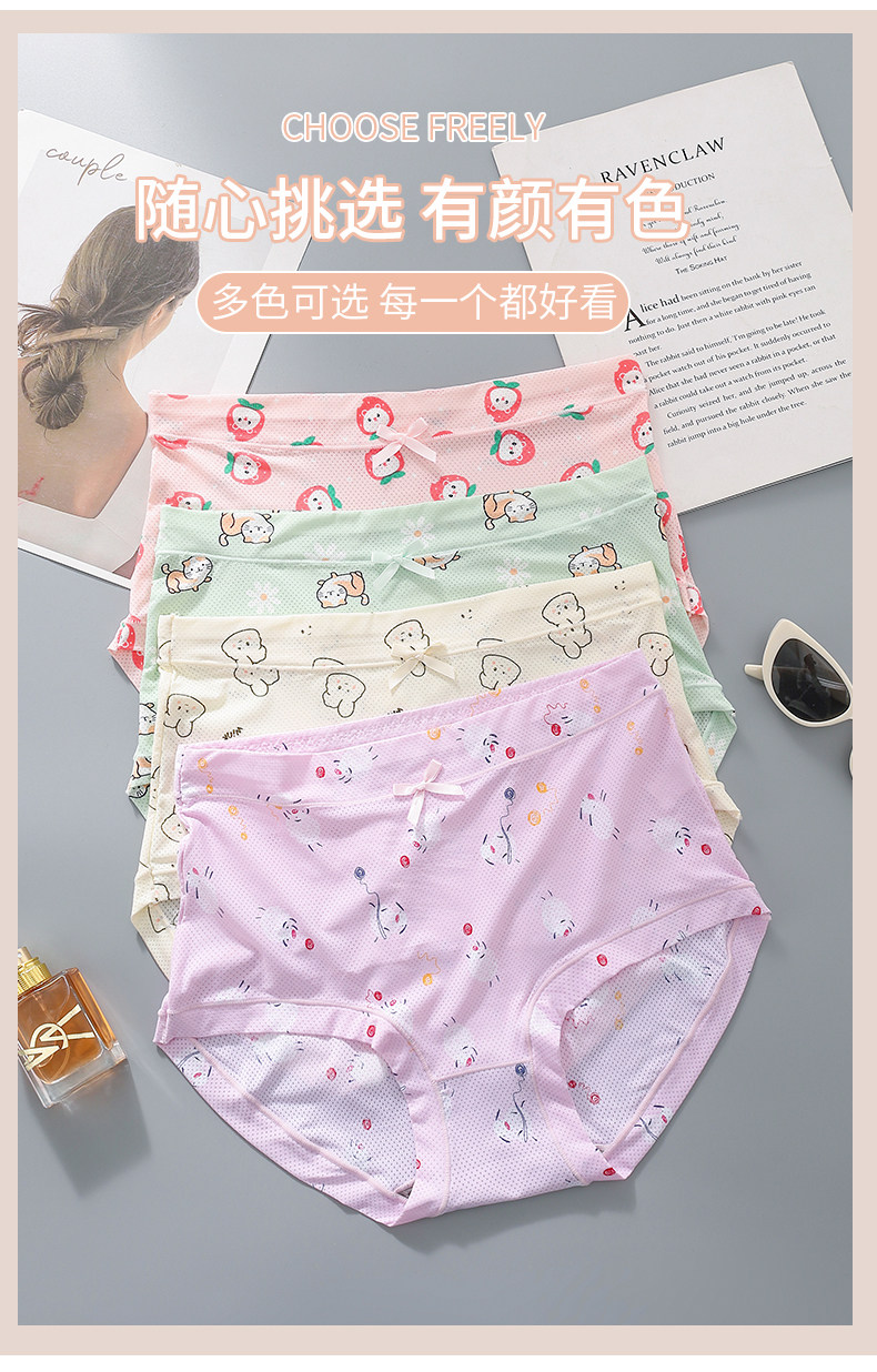 高腰冰絲內褲女加大加肥200斤7A抗菌襠女士速乾印花清新三角褲薄