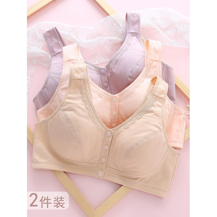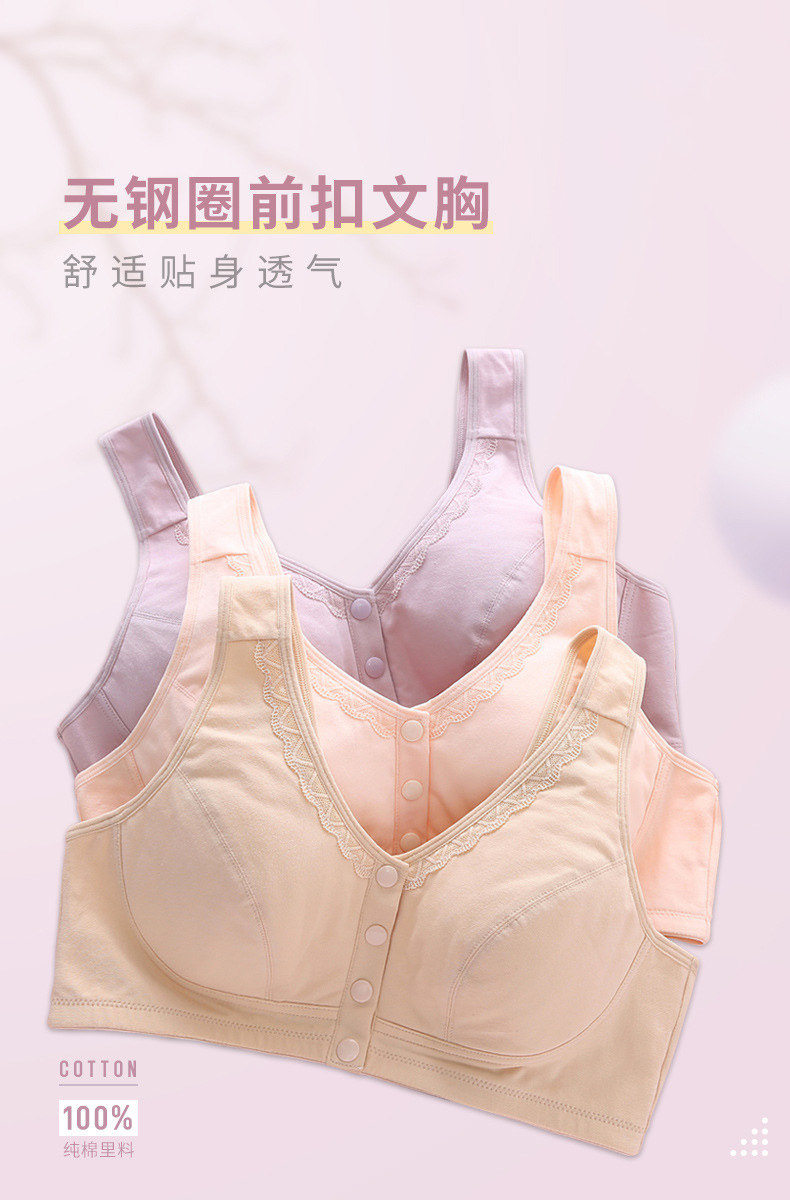 中老年人文胸胖媽媽內衣50嵗加大碼薄款無鋼圈純棉背心式前釦胸罩