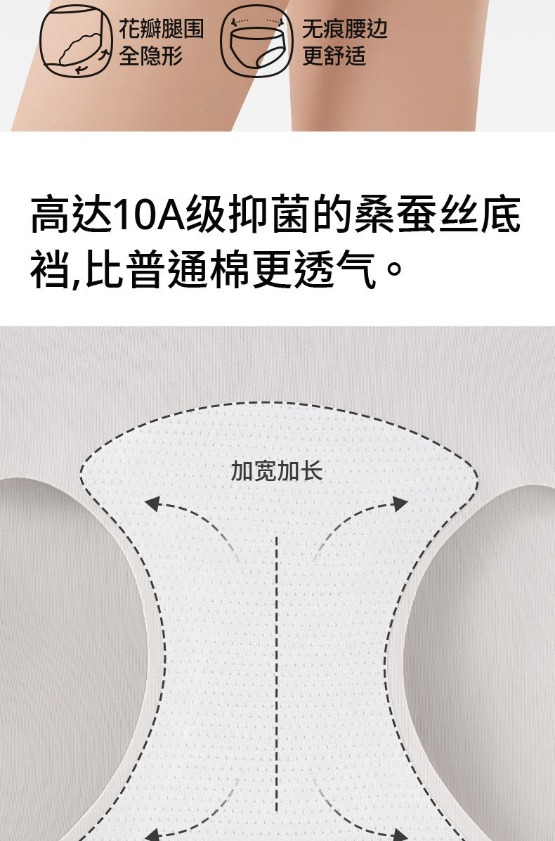 健丹鳥10A奶皮無痕內褲女抗菌桑蠶絲加長襠瑜珈運動透氣三角褲頭