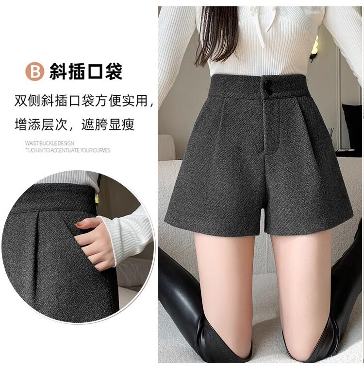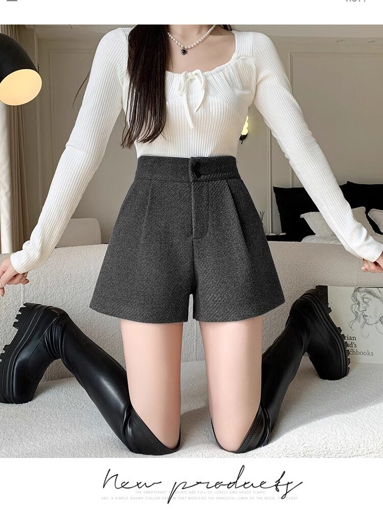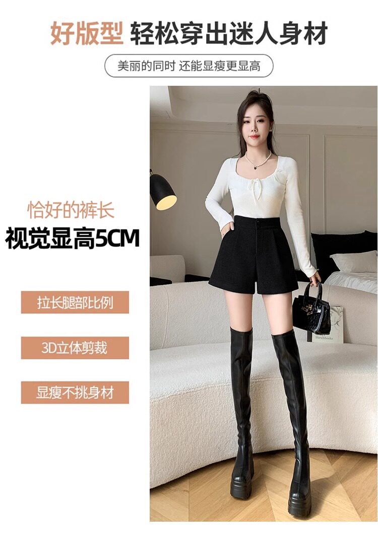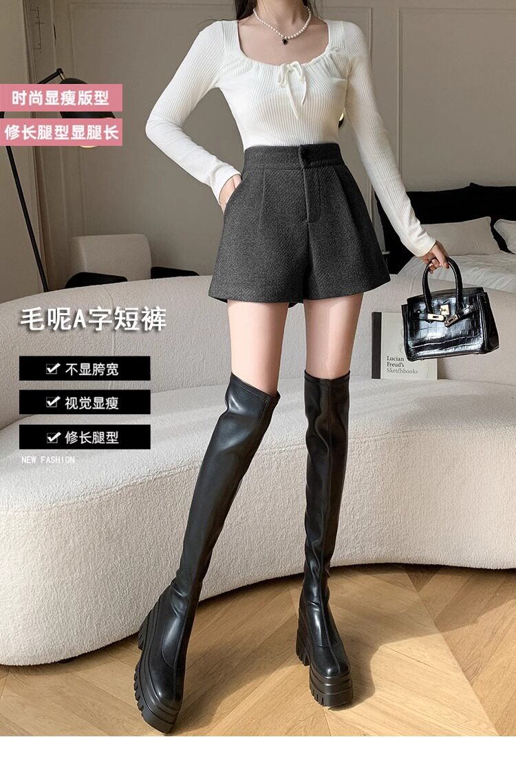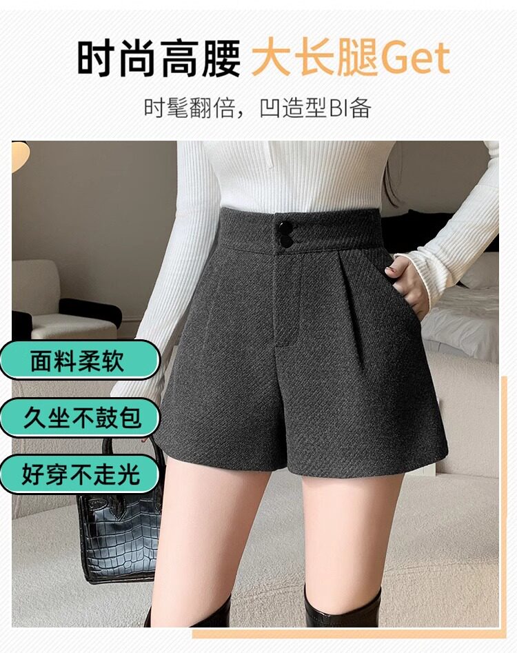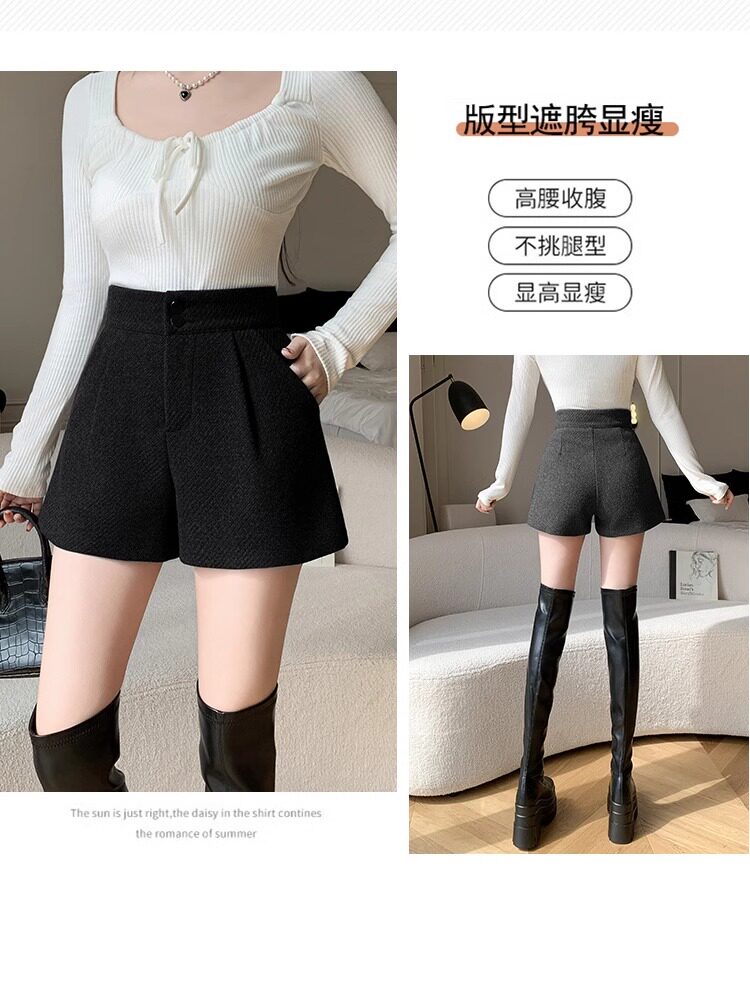 小個子氣質毛呢短褲女高腰寬鬆顯瘦a字靴褲外穿呢子濶腿打底褲子