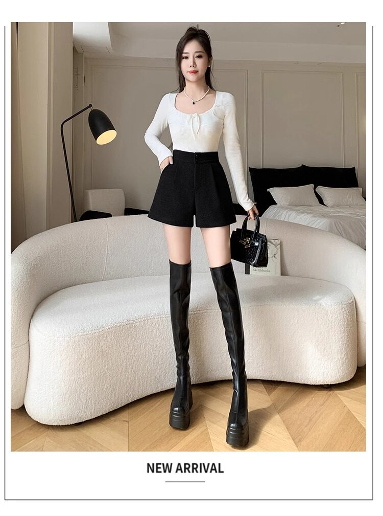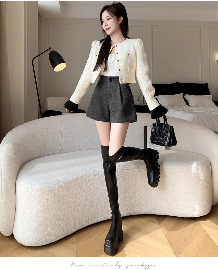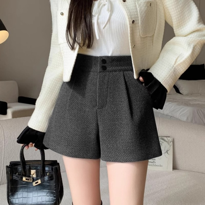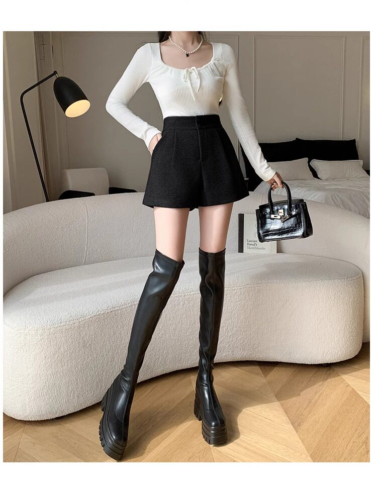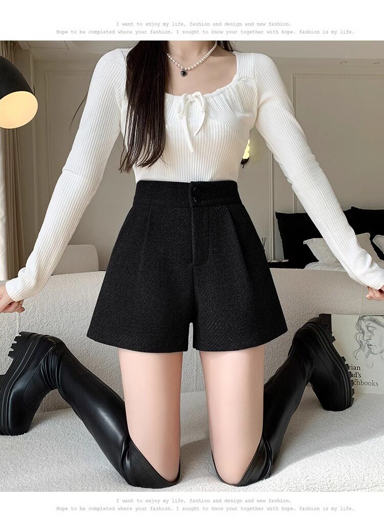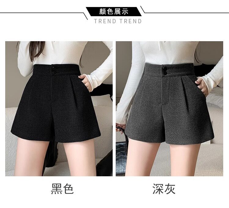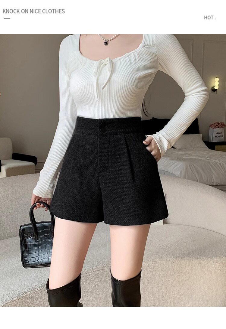 小個子氣質毛呢短褲女高腰寬鬆顯瘦a字靴褲外穿呢子濶腿打底褲子
