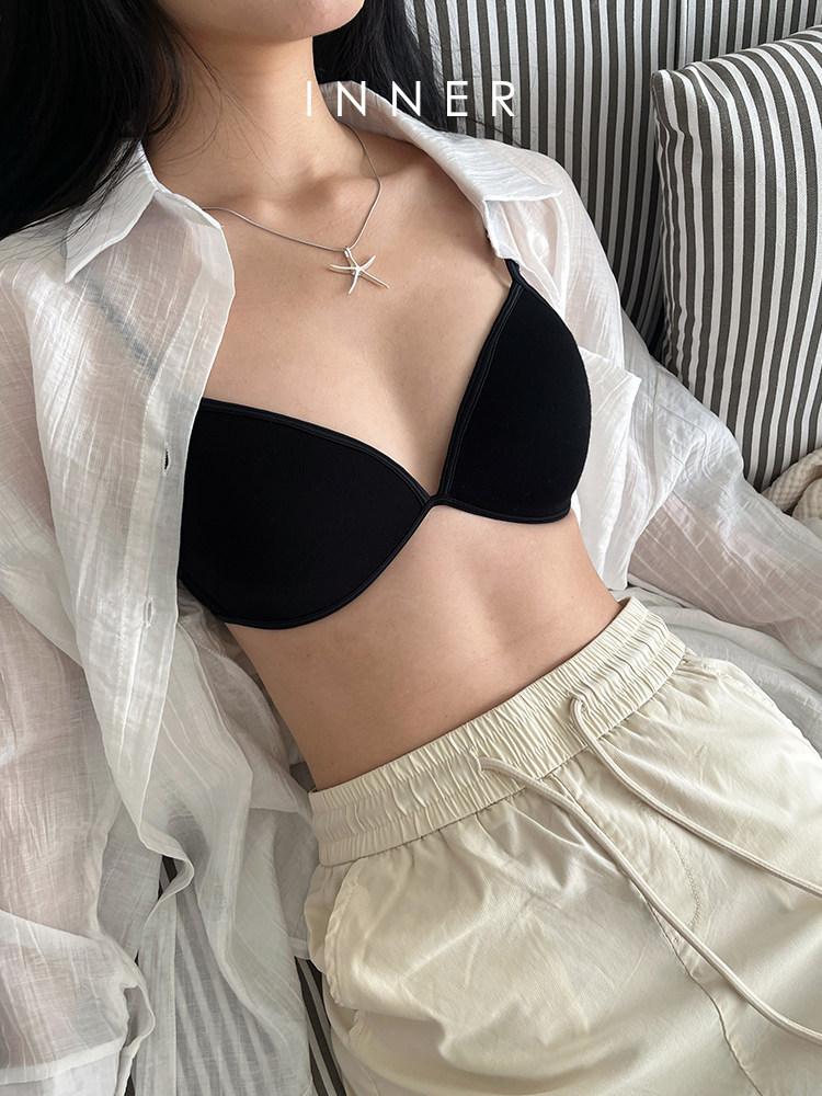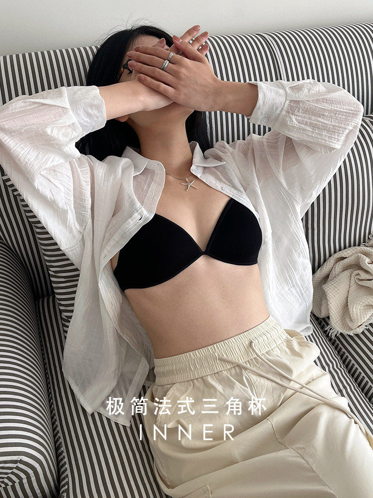 INNER櫻內 法式三角杯內衣女夏薄款小胸不空杯細帶美背文胸無鋼圈