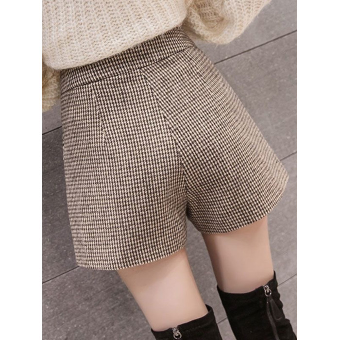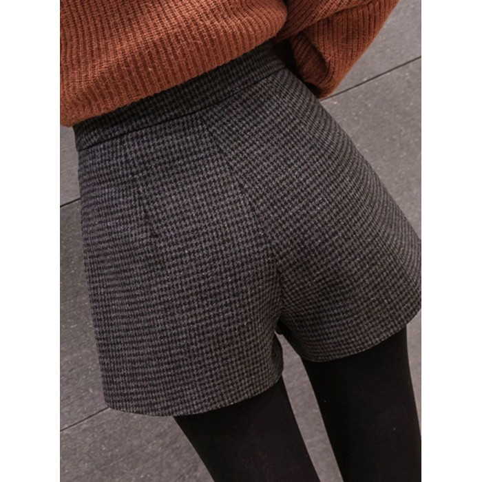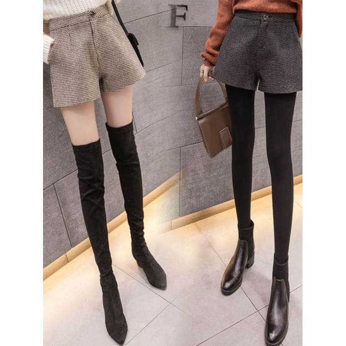 大碼毛呢短褲女秋冬新款高腰A字濶腿褲200斤胖妹妹外穿打底靴褲子
