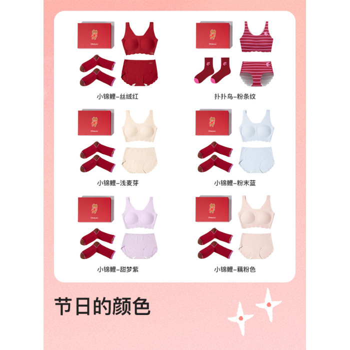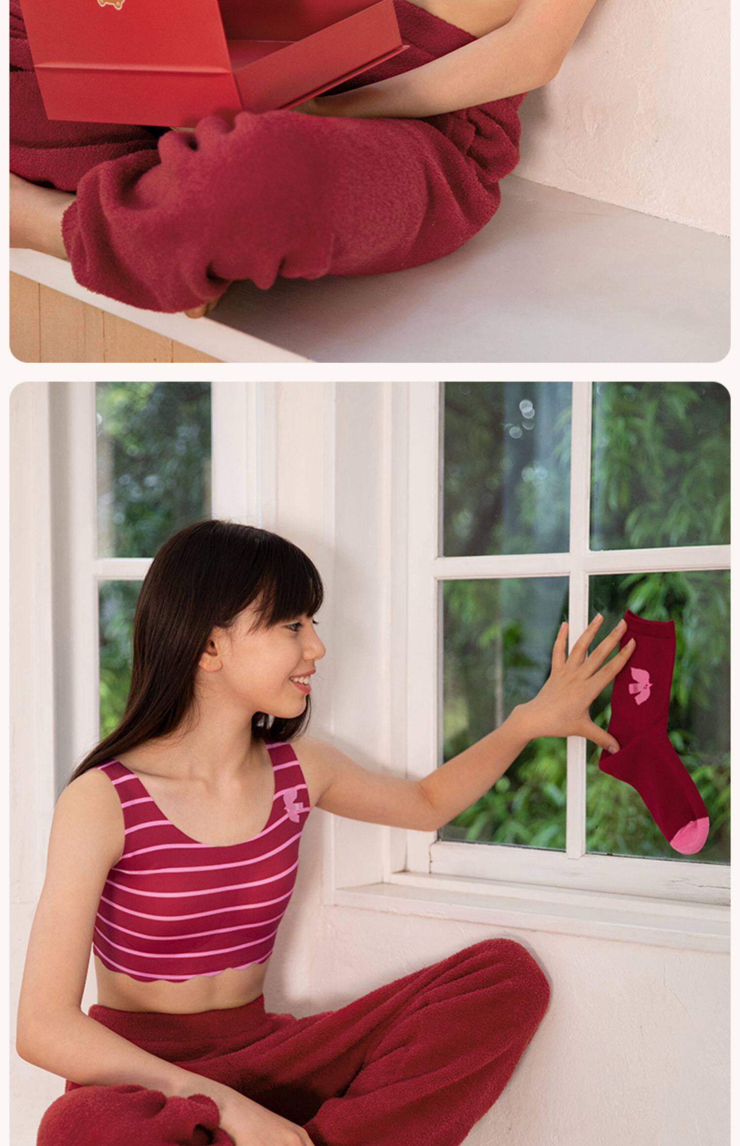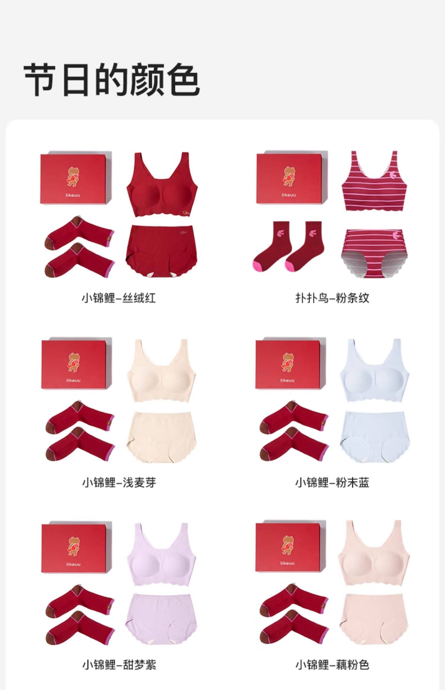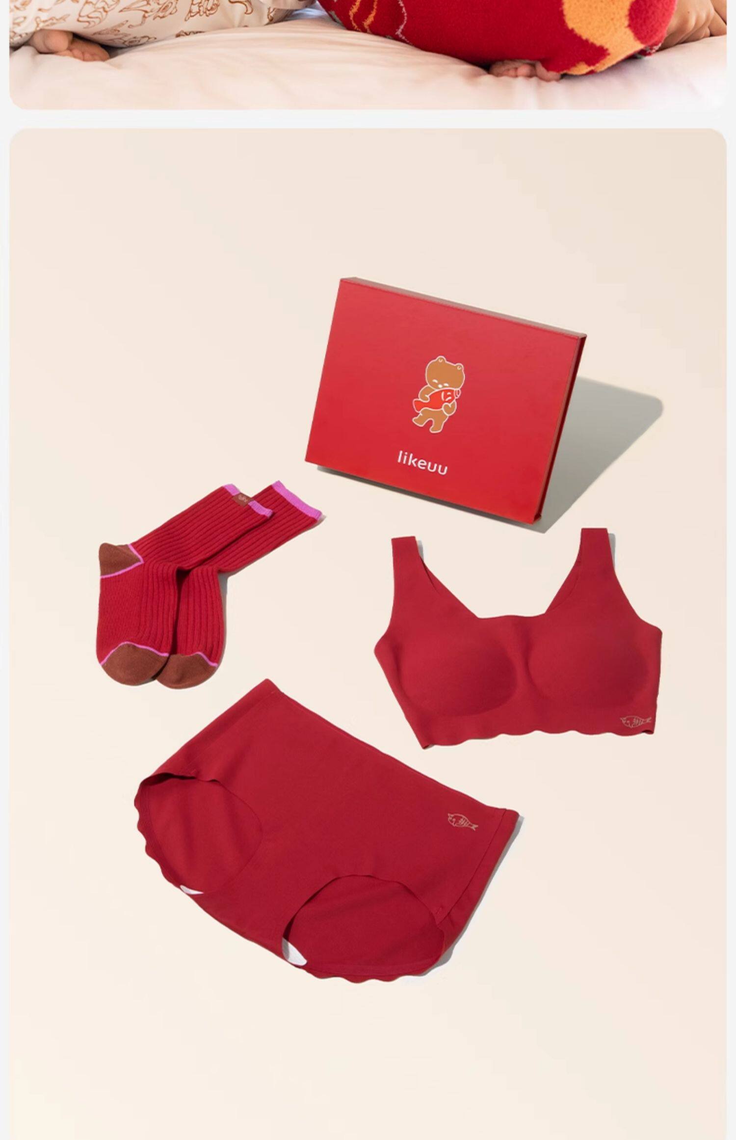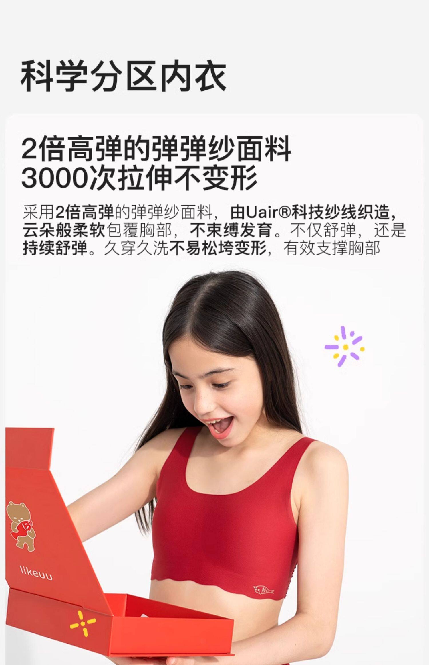 ubras旗下likeuu少女內衣套裝兒童發育文胸內褲紅色錦鯉禮盒大童