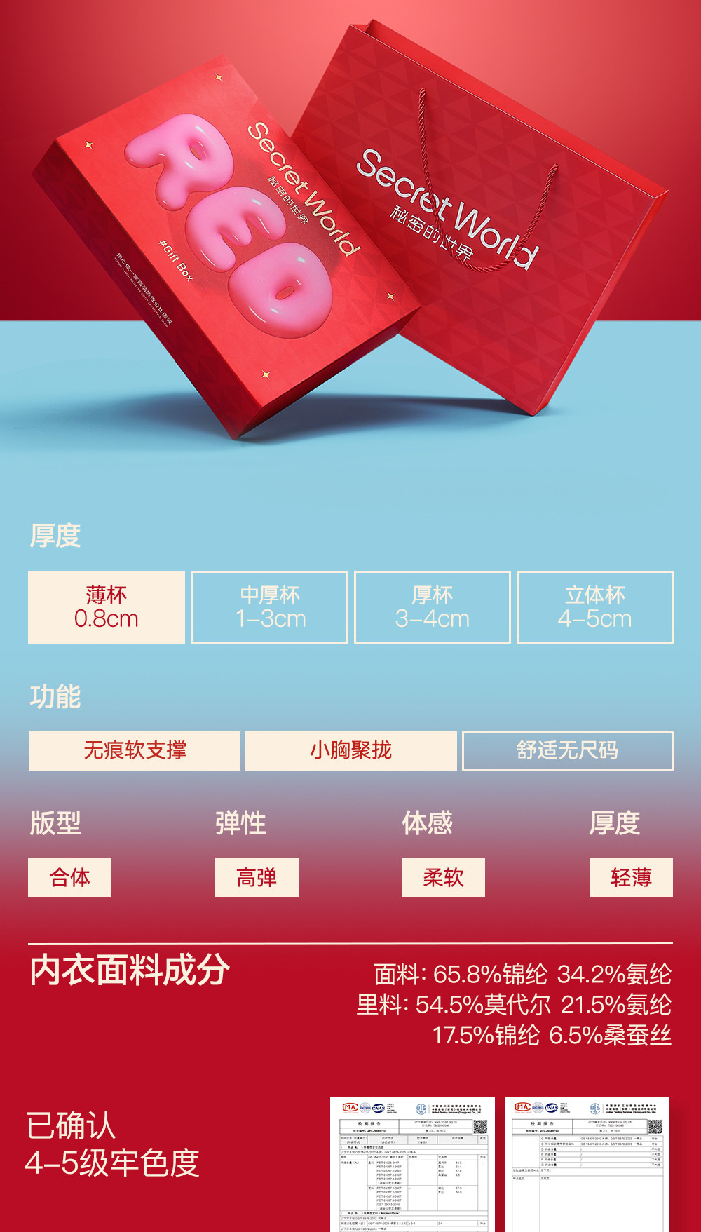 【趙今麥同款】Secret World紅色內衣女小胸聚攏本命年結婚禮盒裝