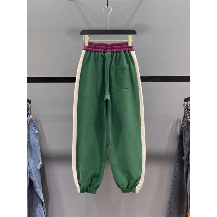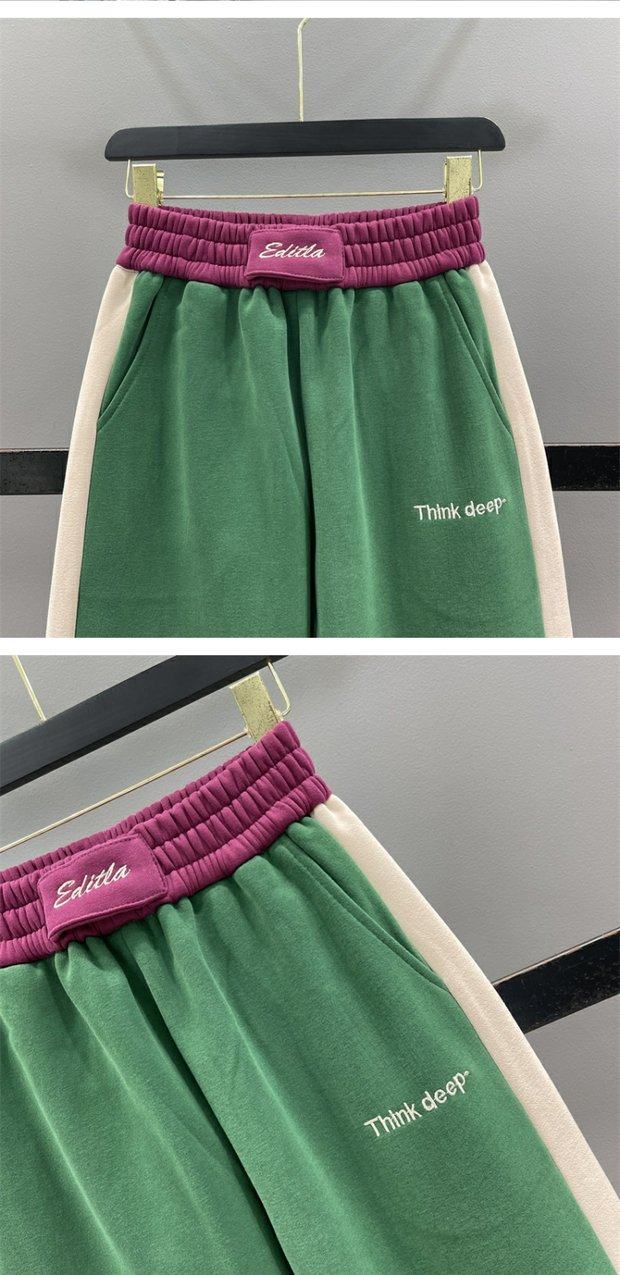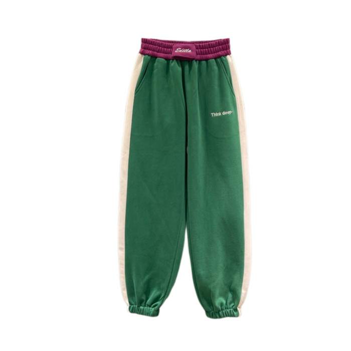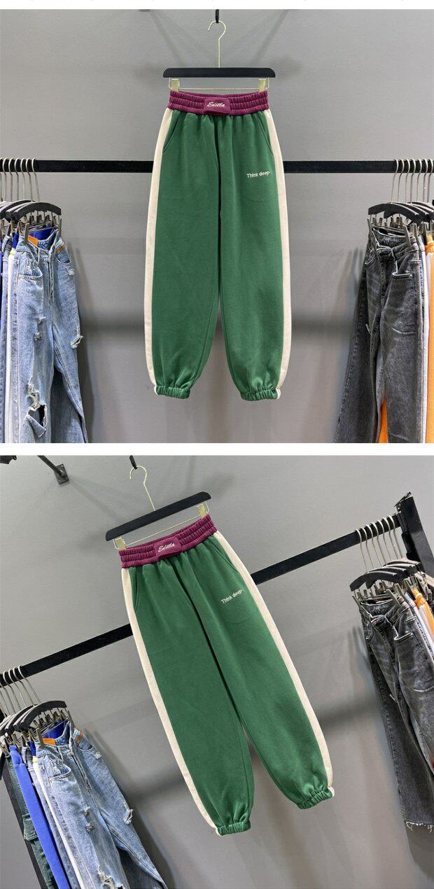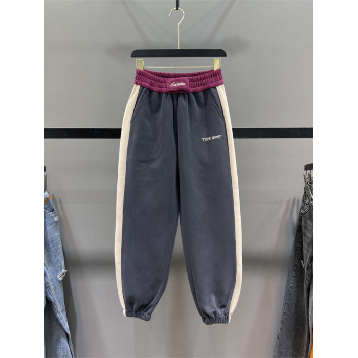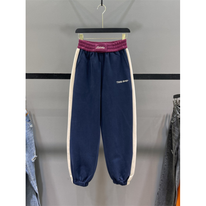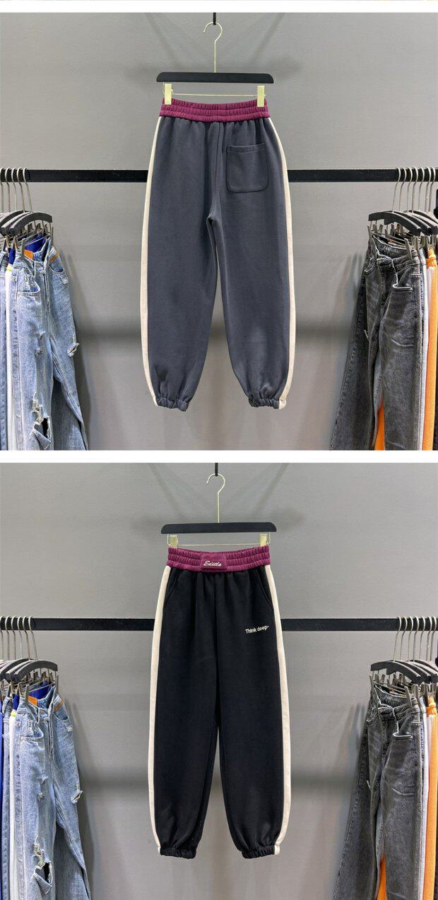 歐貨撞色拼接休閒衛褲女2025秋冬新款加絨高腰寬鬆哈倫束腳運動褲
