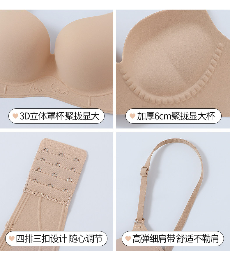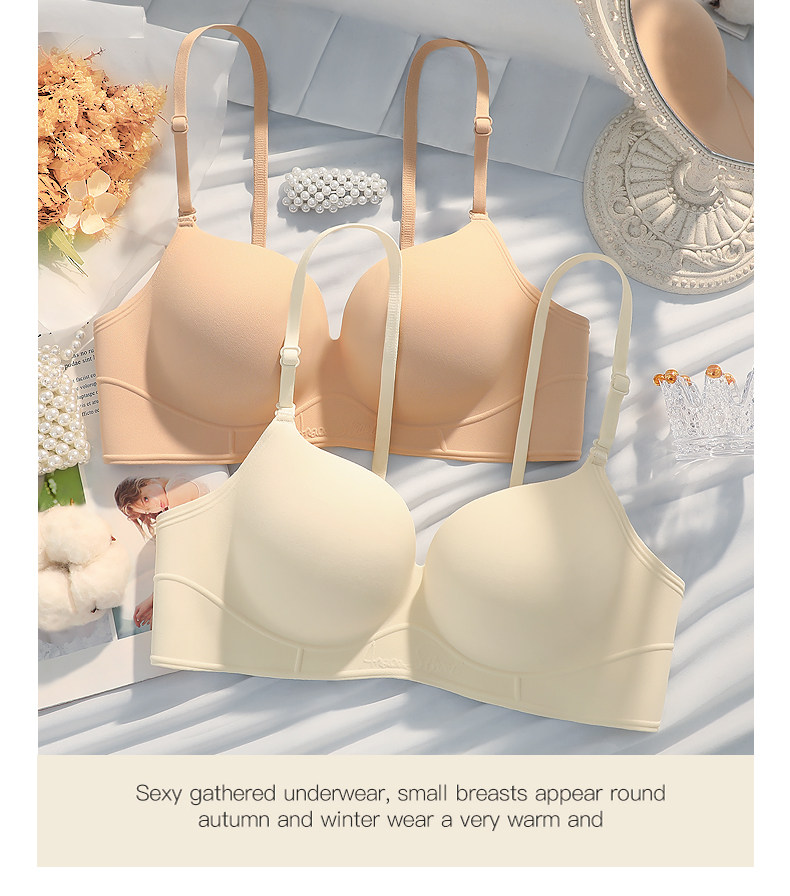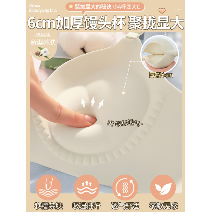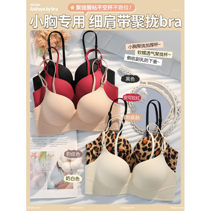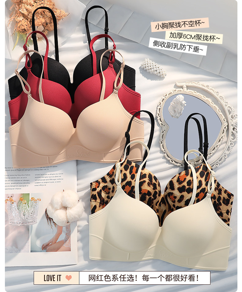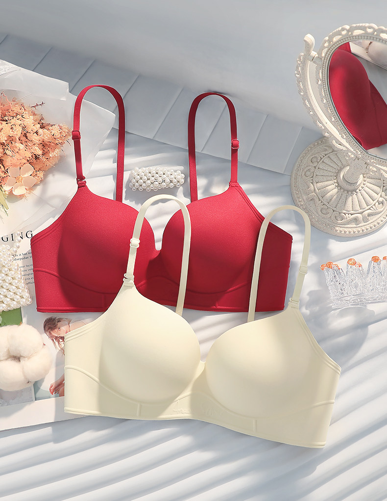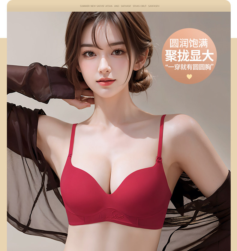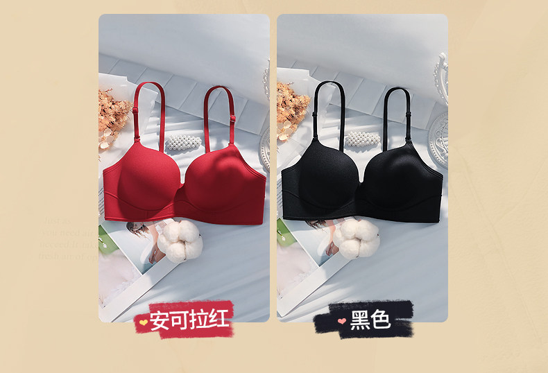加厚6cm紅色本命年內衣女小胸聚攏顯大無痕細肩帶無鋼圈文胸套裝