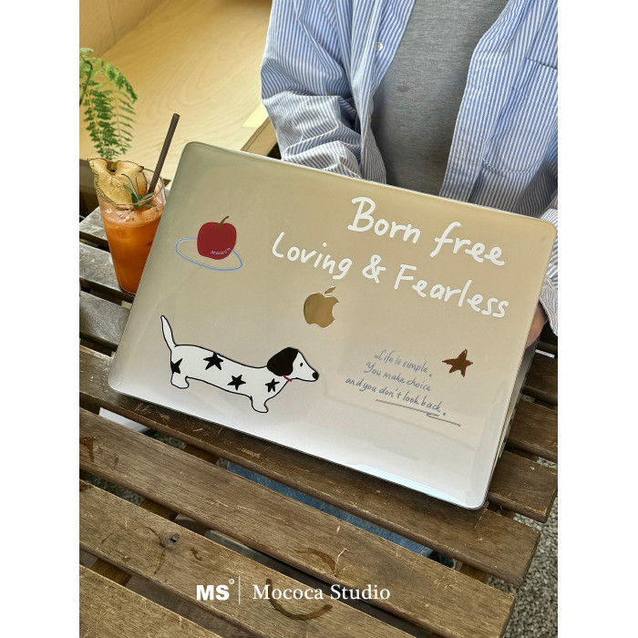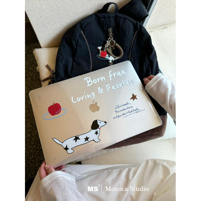 MOCOCA《蘋果斑點小狗》插畫字母簡約進口pc透明亮面硬殼防磕碰適用於Macbook蘋果pro電腦air保護套1314寸