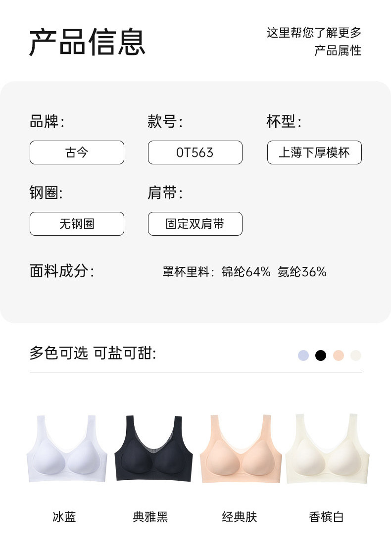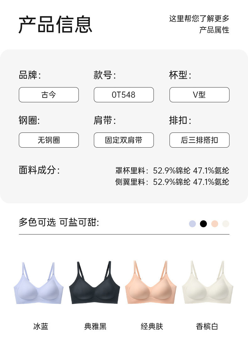 古今半固定杯墊無鋼圈聚攏無痕粉底液內衣透氣舒適柔軟7A抗菌文胸