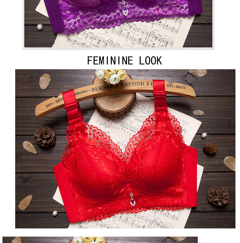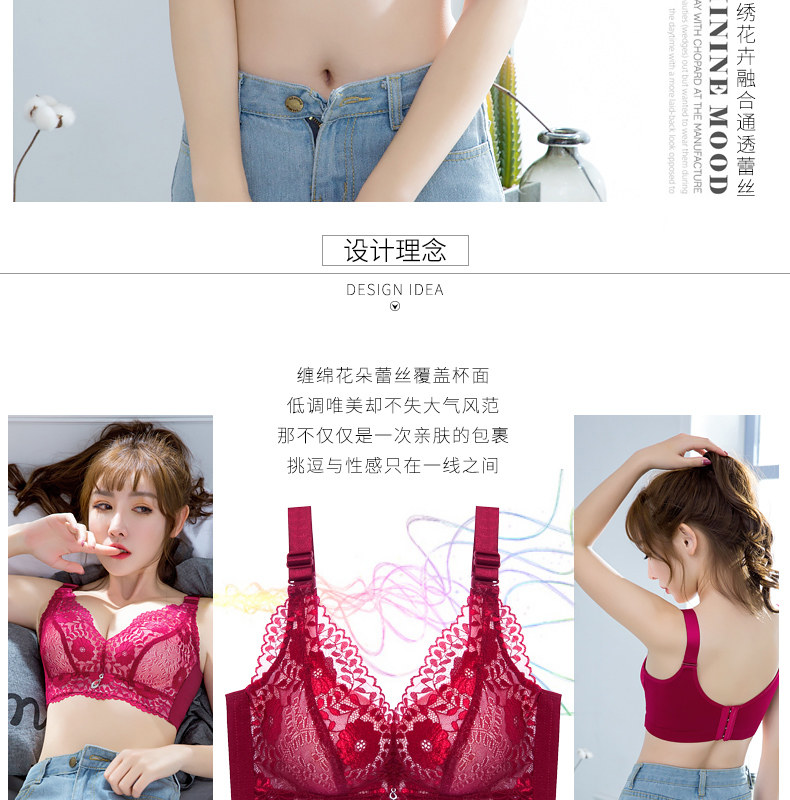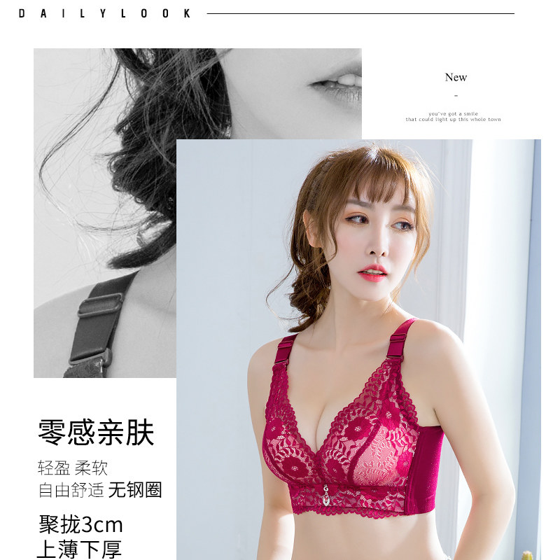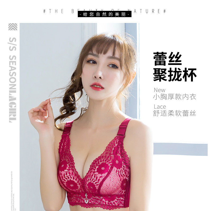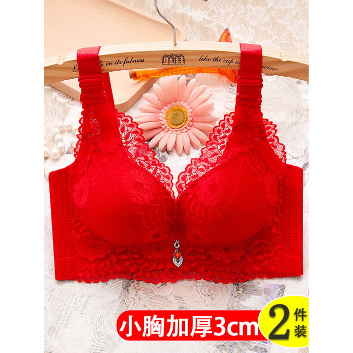 本命年紅色文胸女聚攏上托小胸加厚顯大調整型收副乳無鋼圈內衣