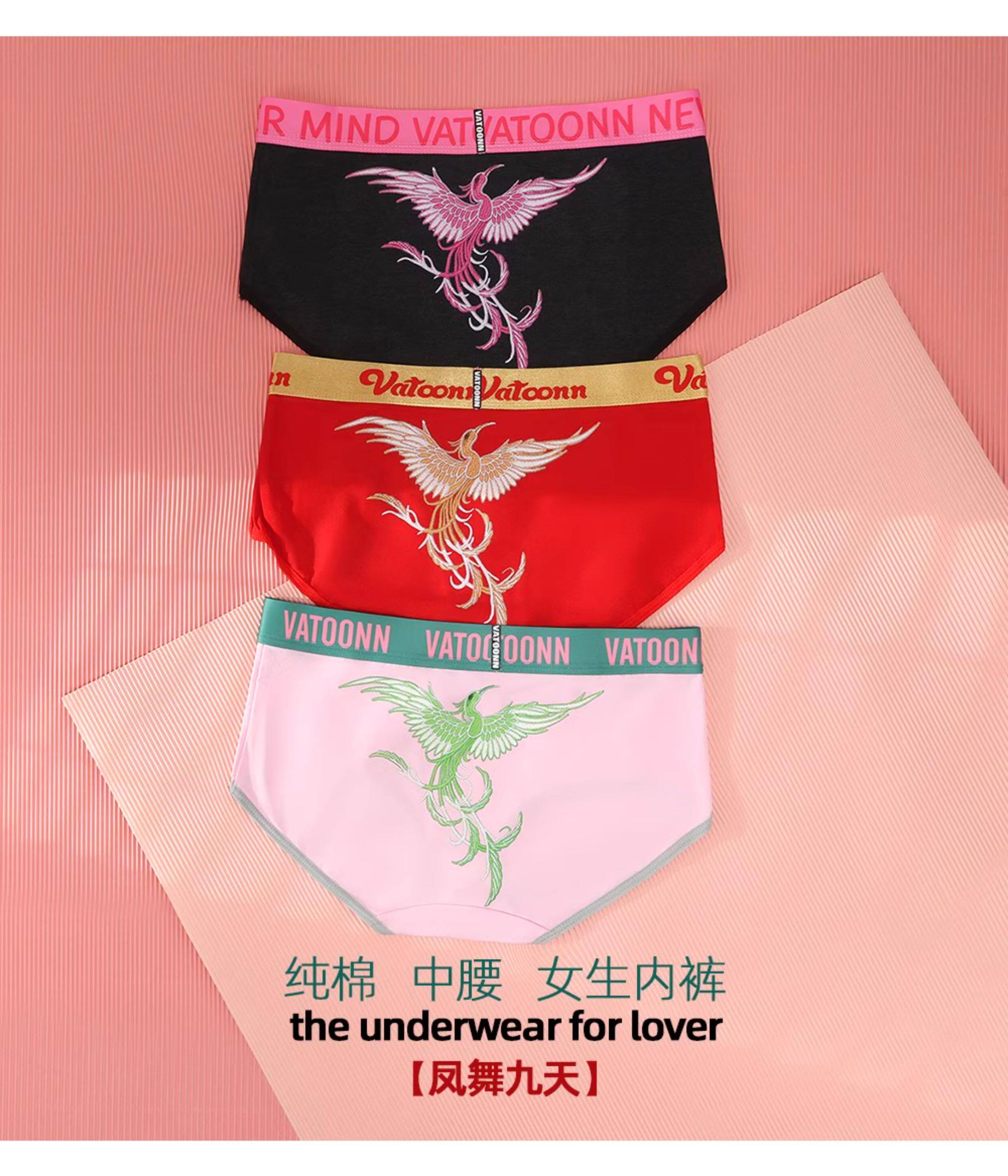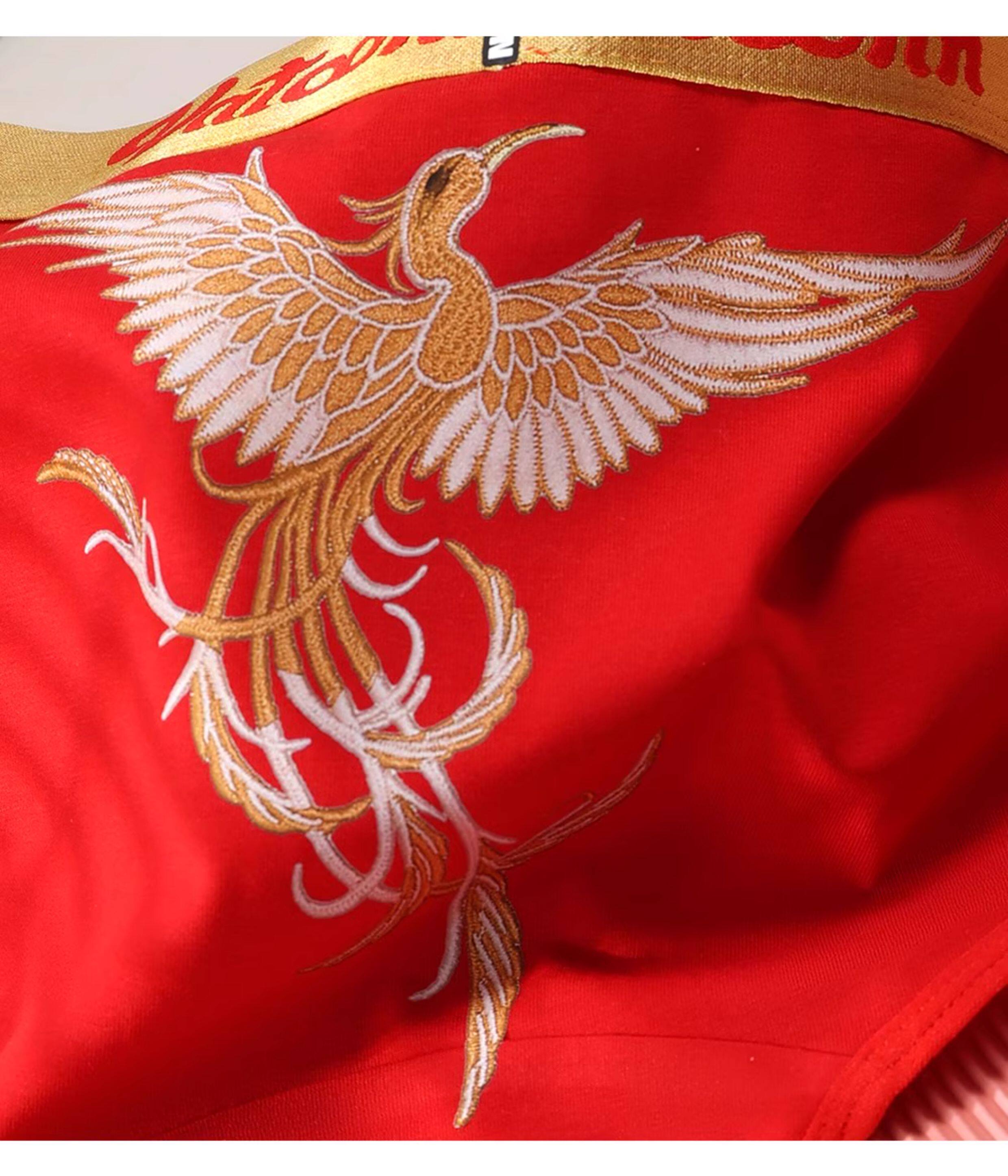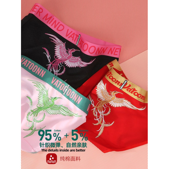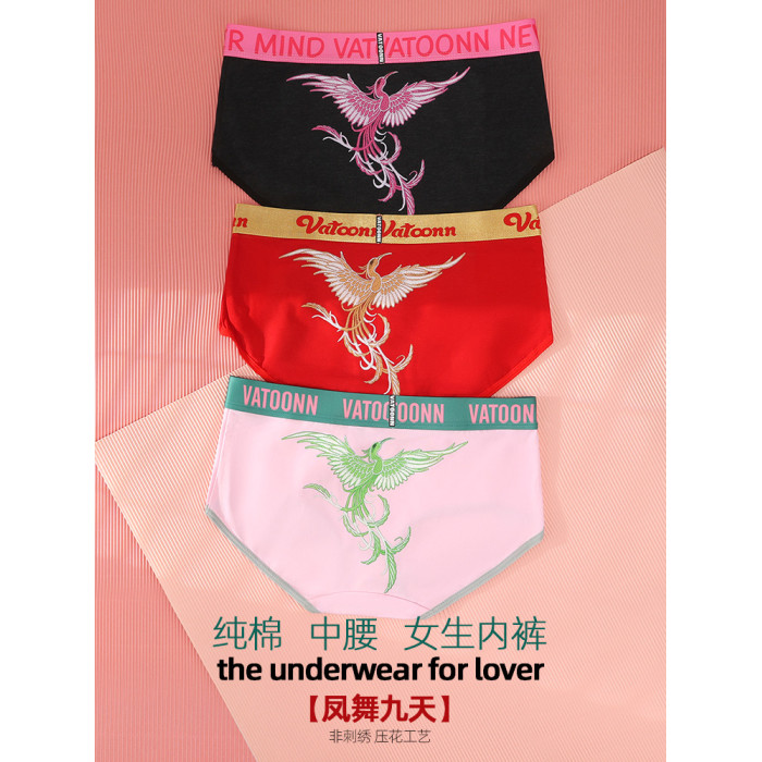 新年鴻運鳳凰女生內褲純棉刺綉風格潮印花中腰收腹寬腰帶抑菌底襠
