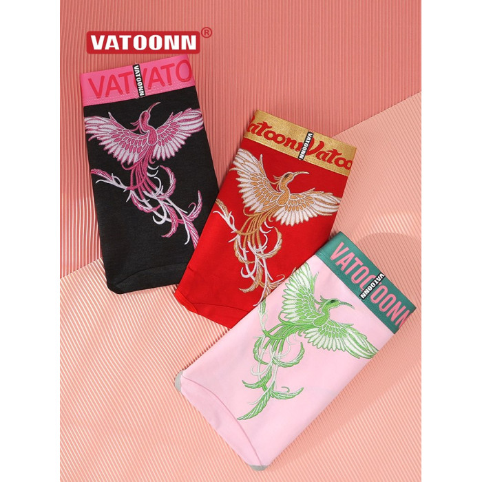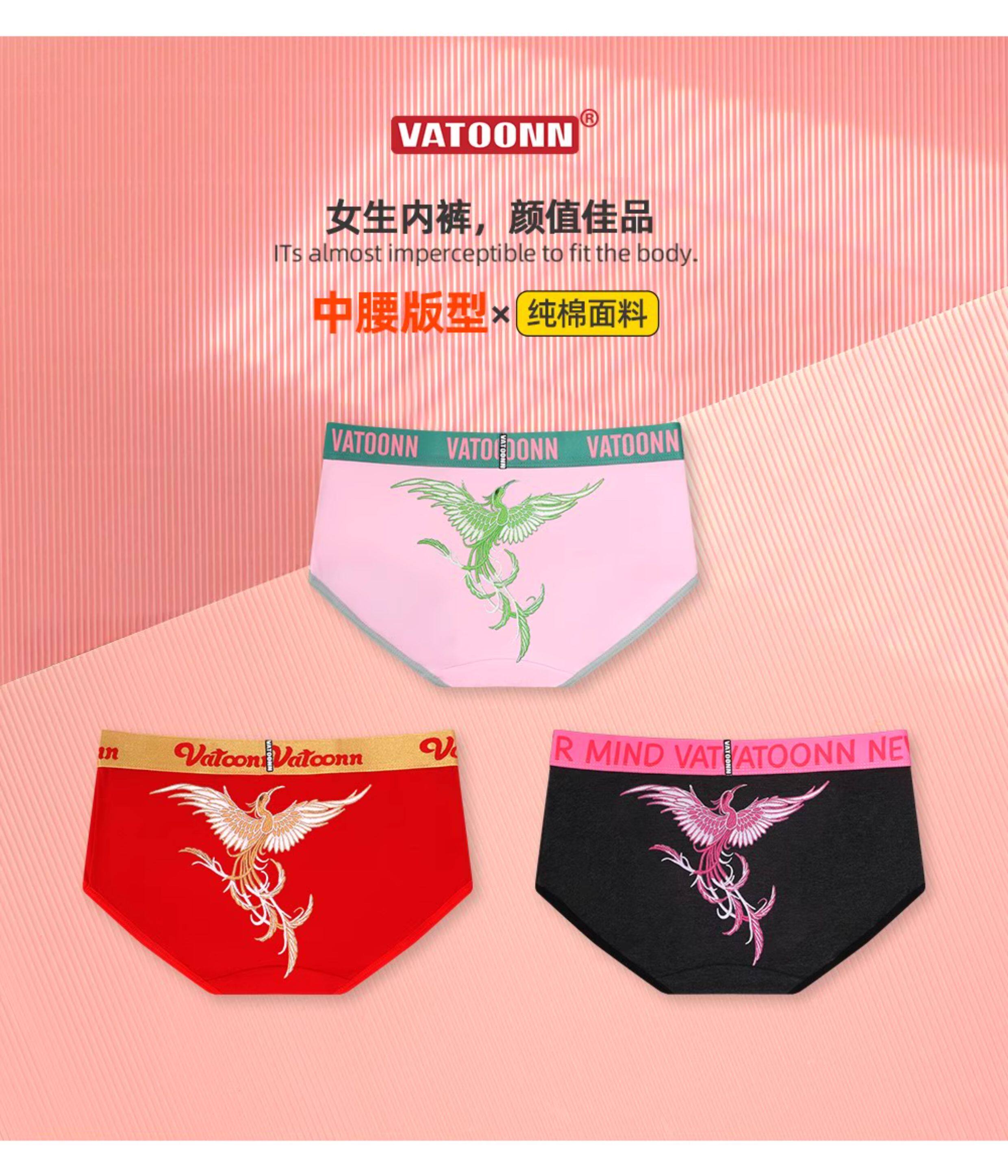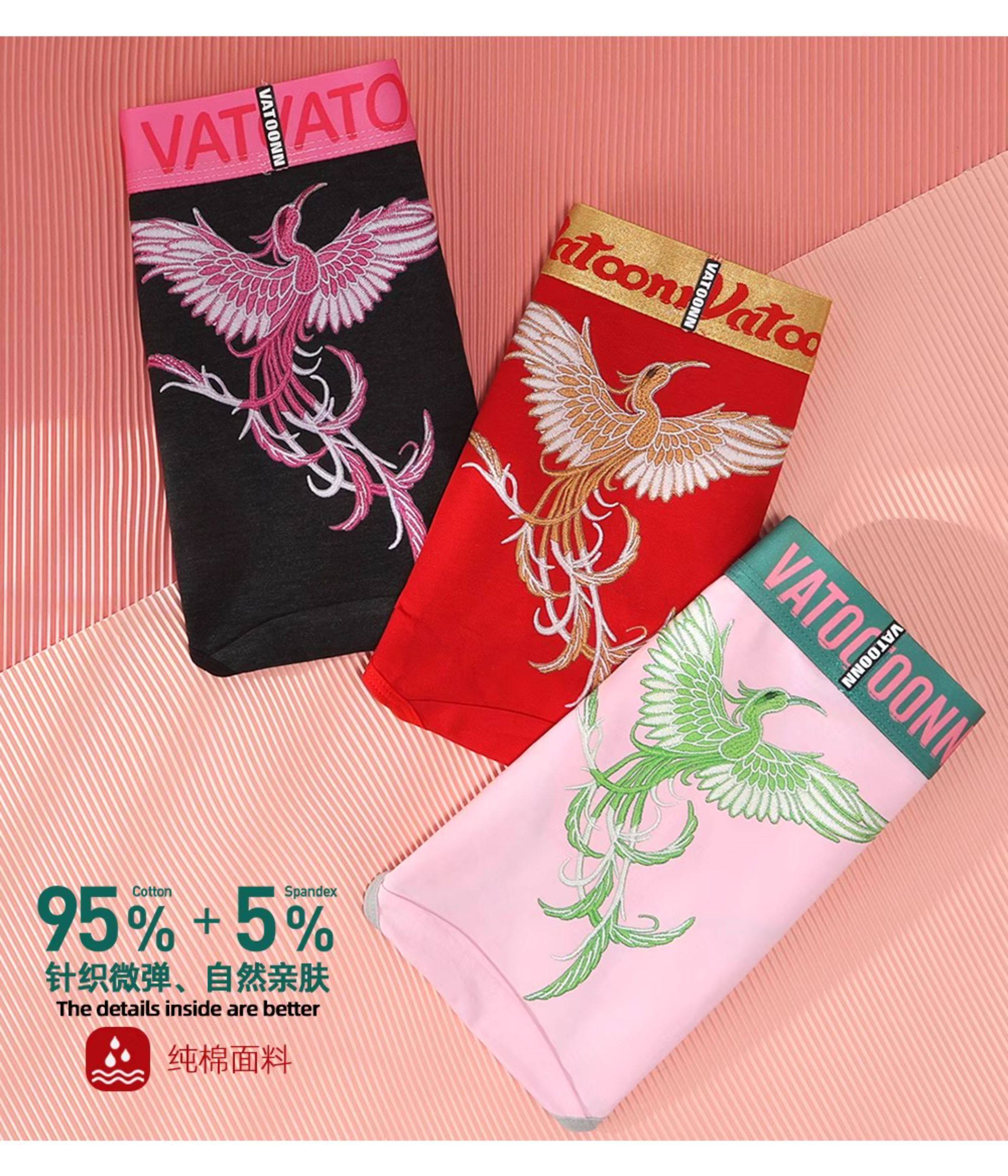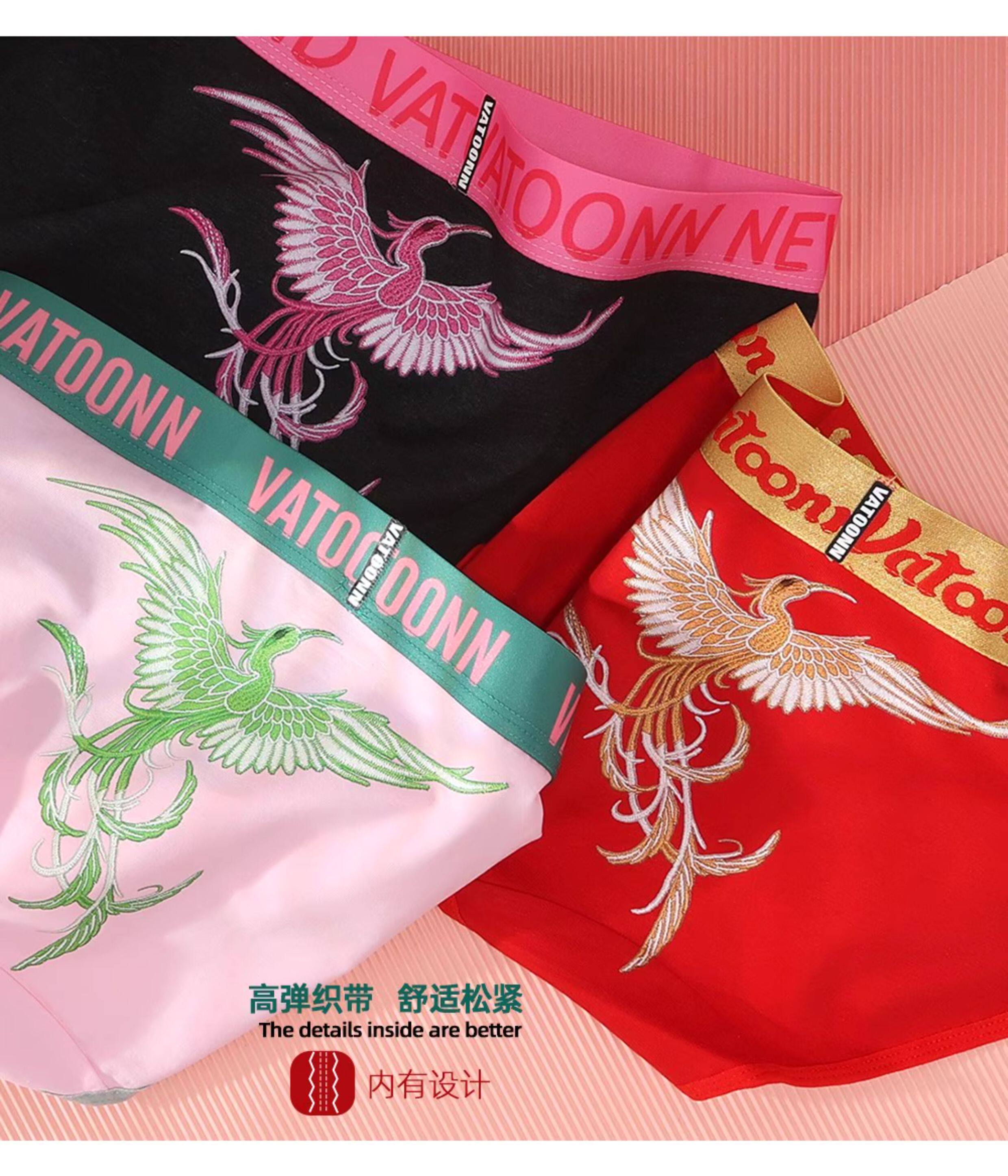 新年鴻運鳳凰女生內褲純棉刺綉風格潮印花中腰收腹寬腰帶抑菌底襠