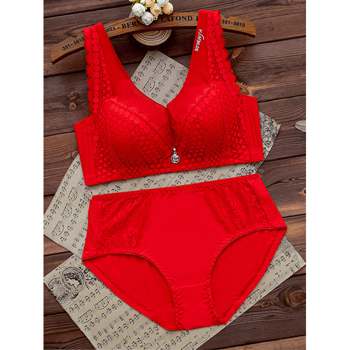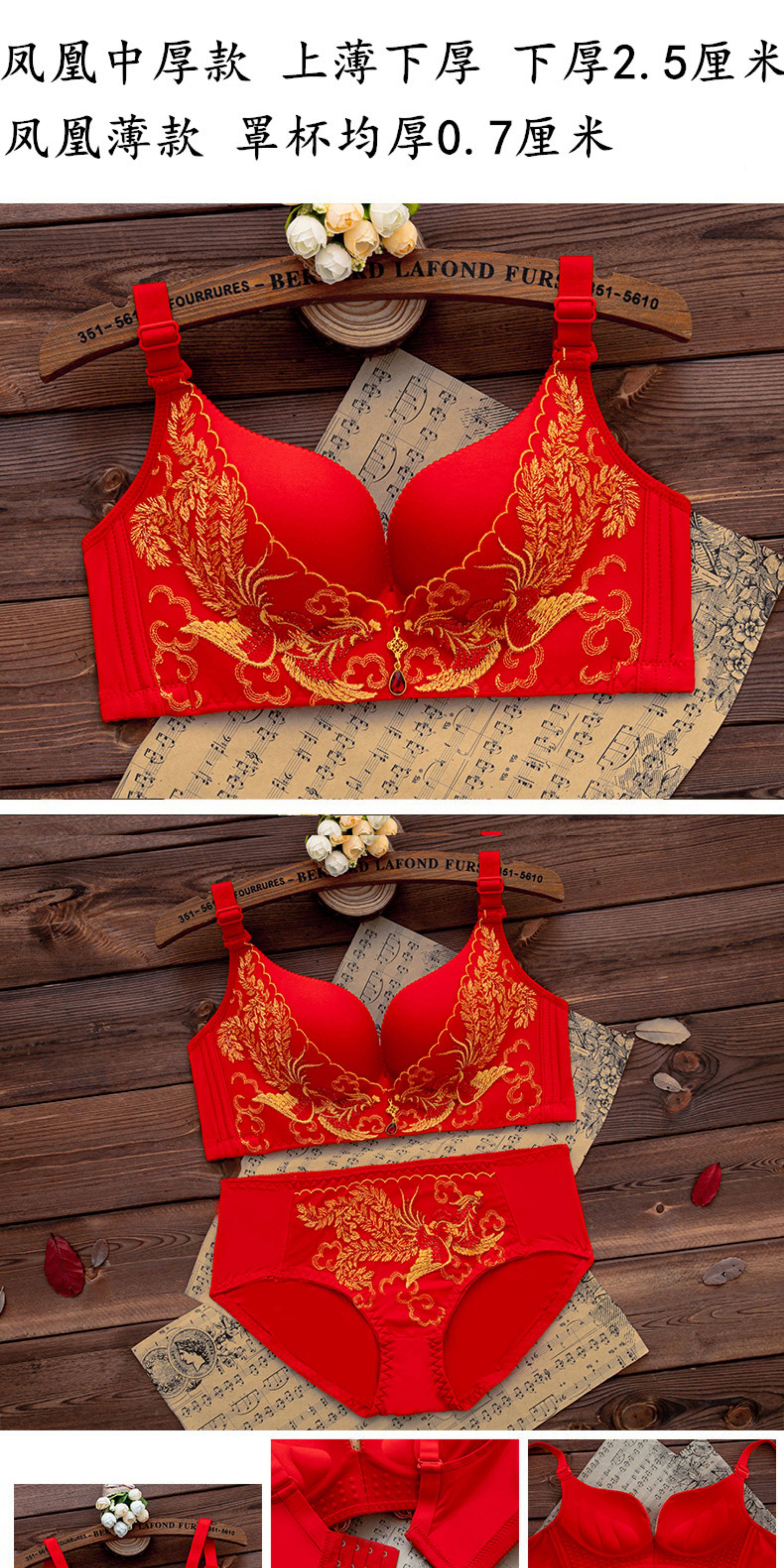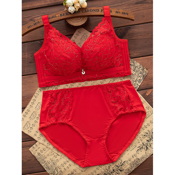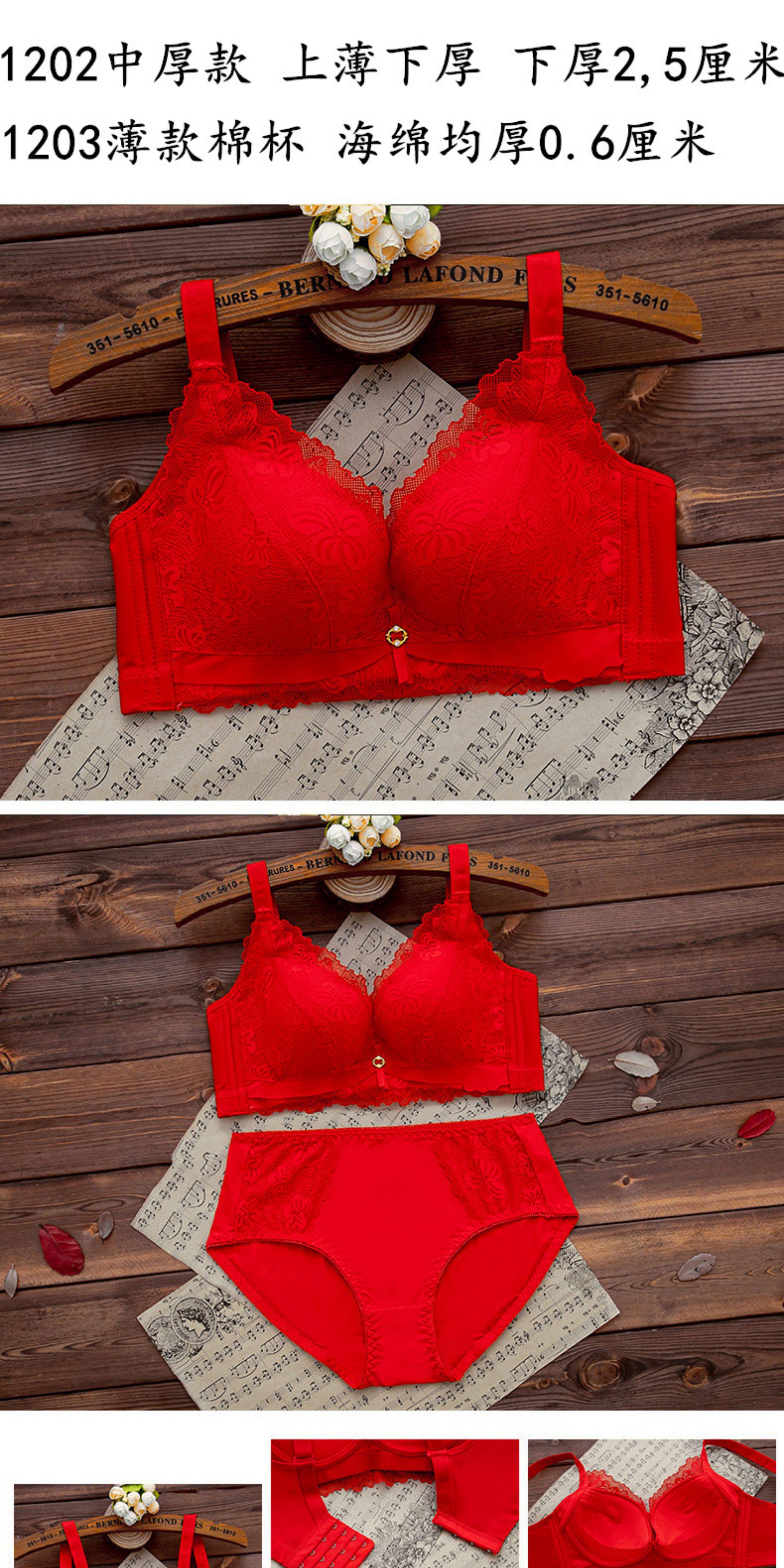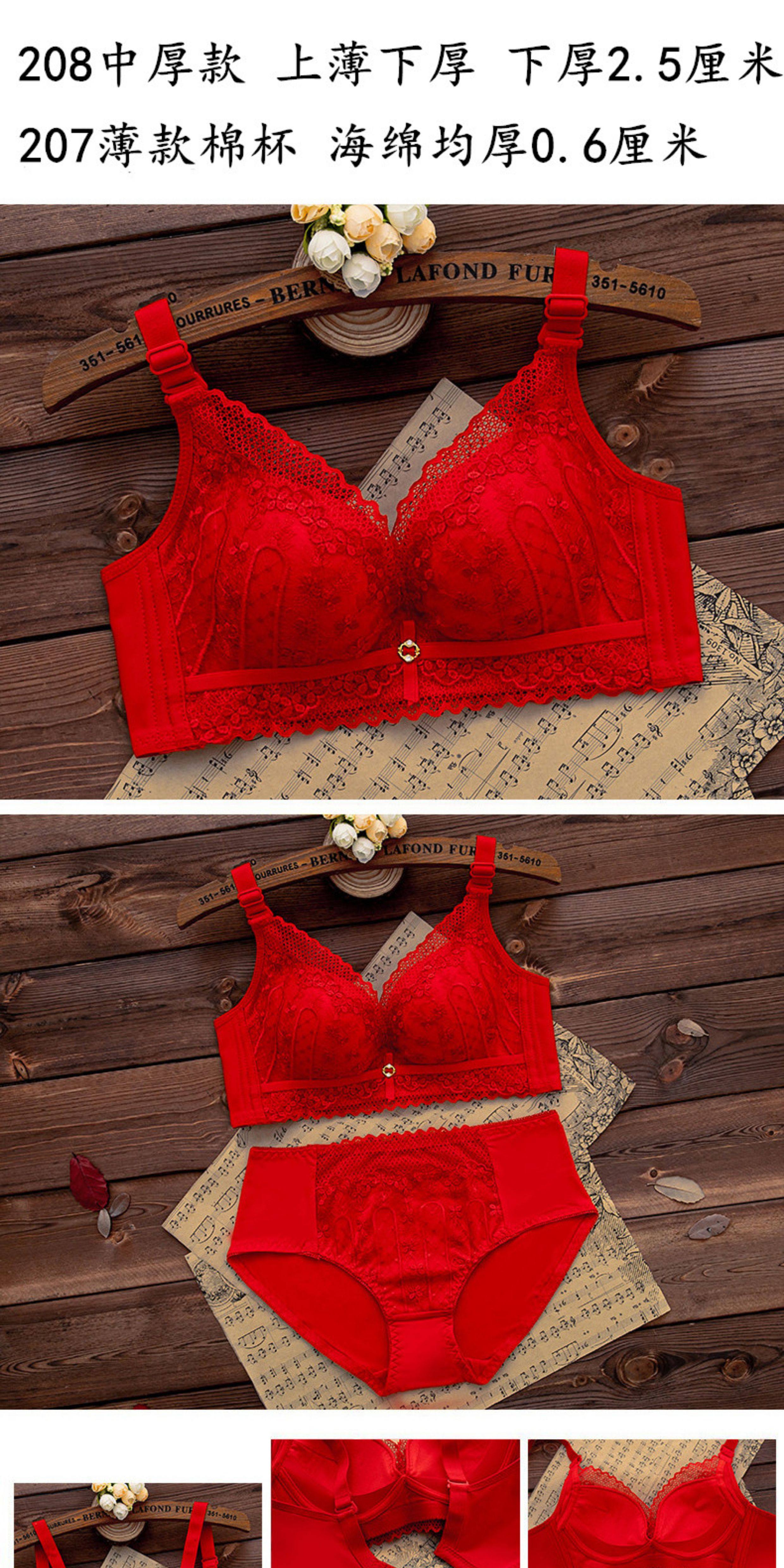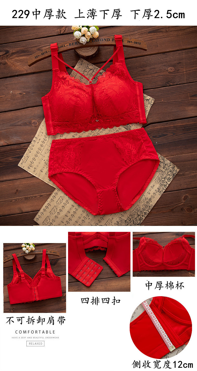 本命年紅色內衣內褲套裝女無鋼圈小胸聚攏文胸結婚新娘2026屬馬年