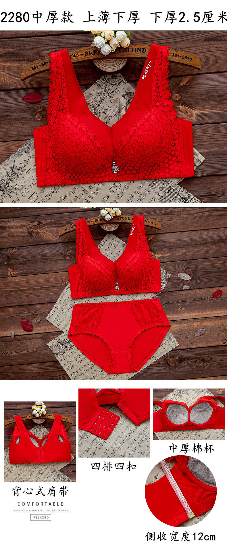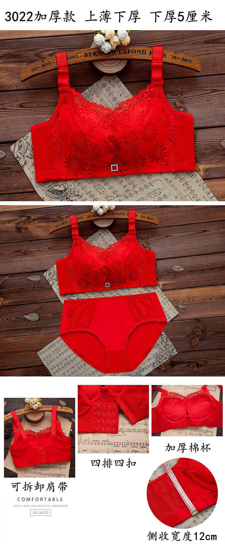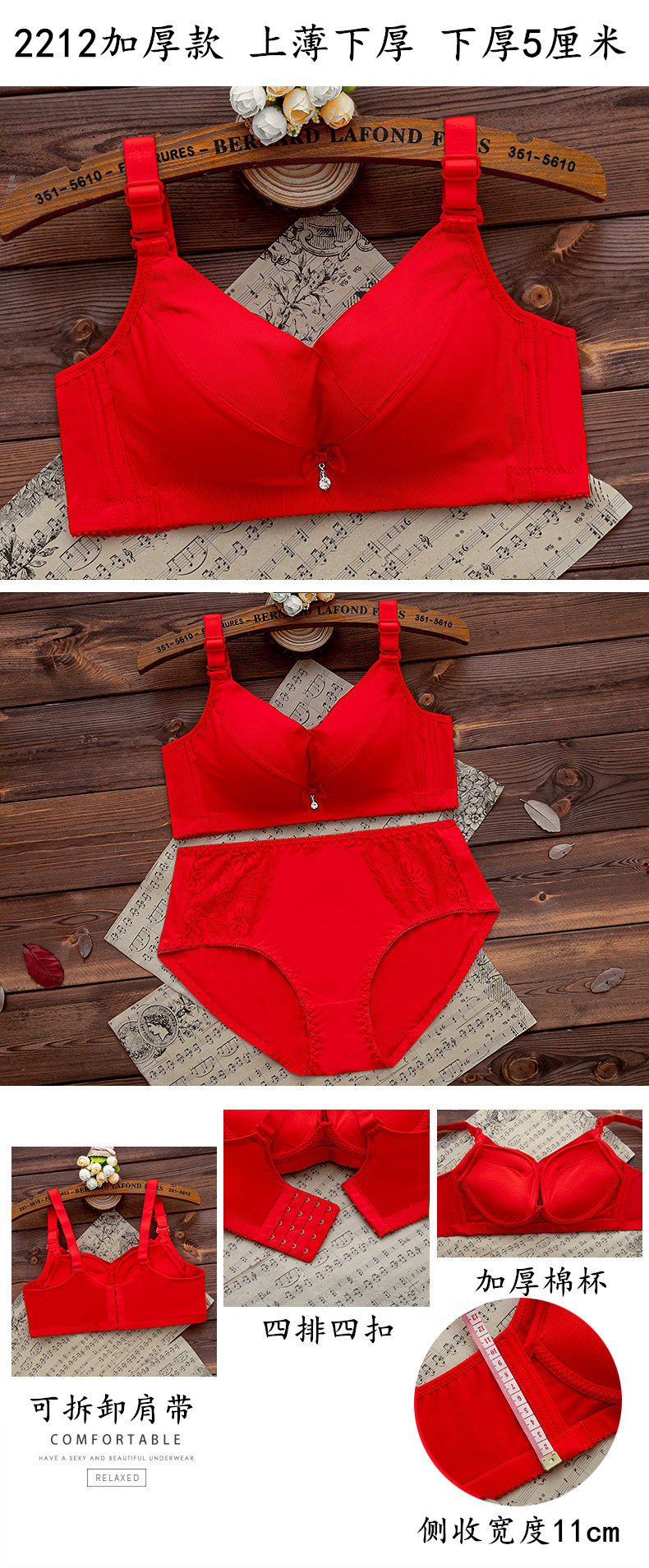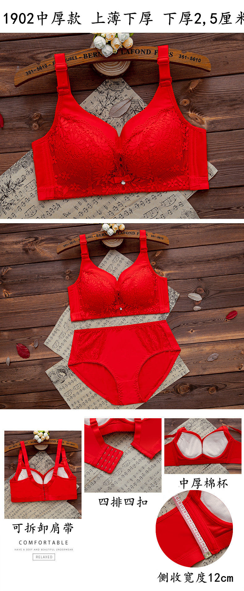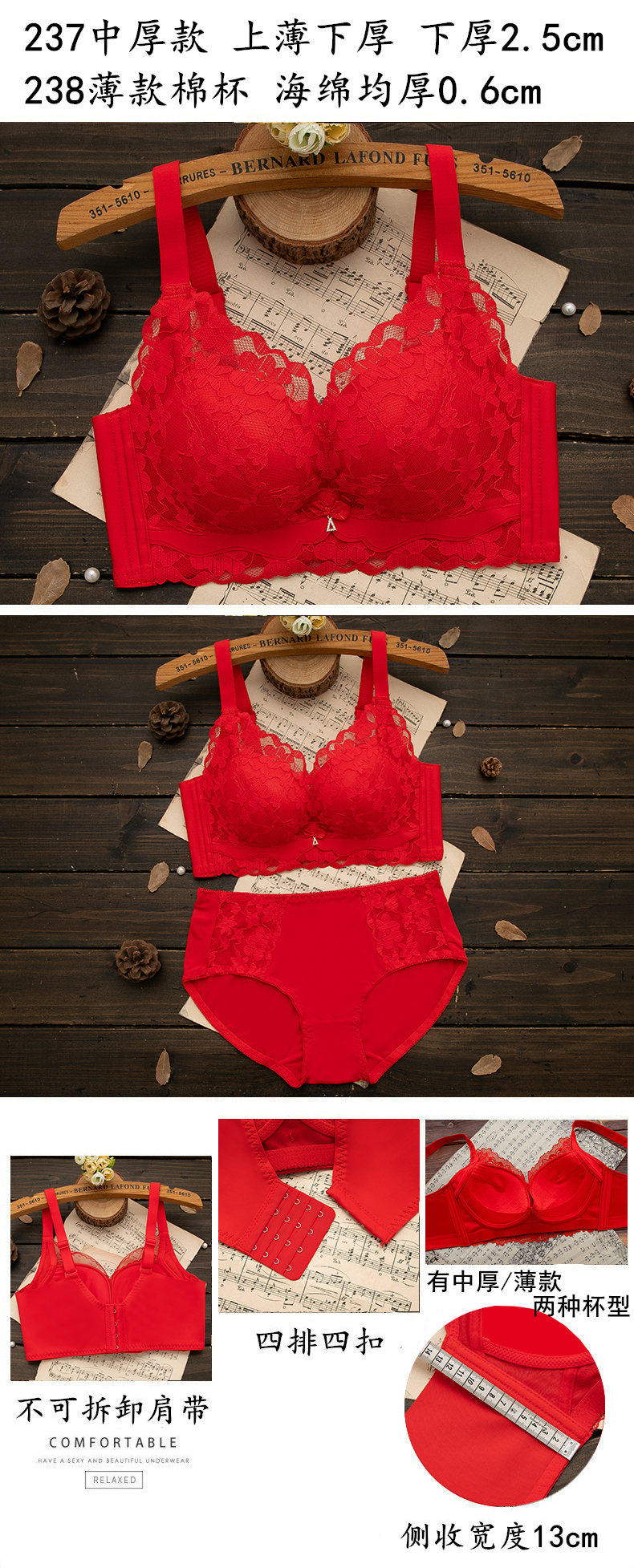 本命年紅色內衣內褲套裝女無鋼圈小胸聚攏文胸結婚新娘2026屬馬年