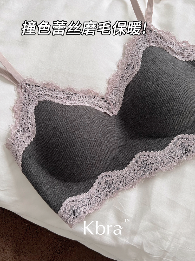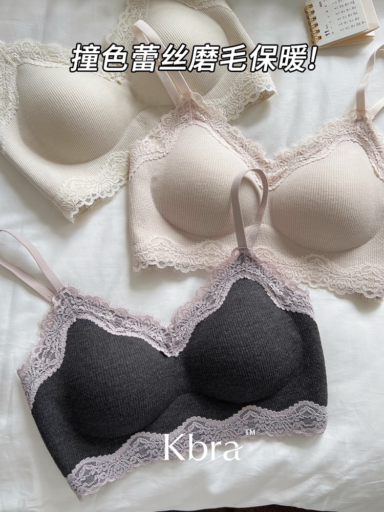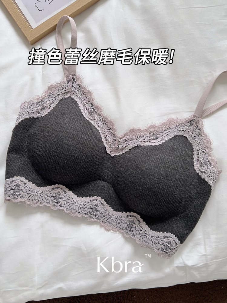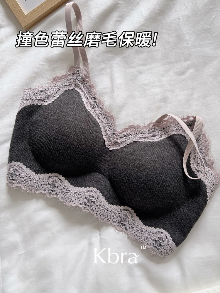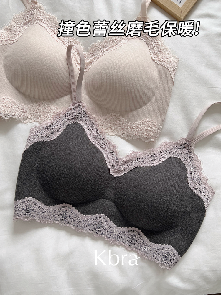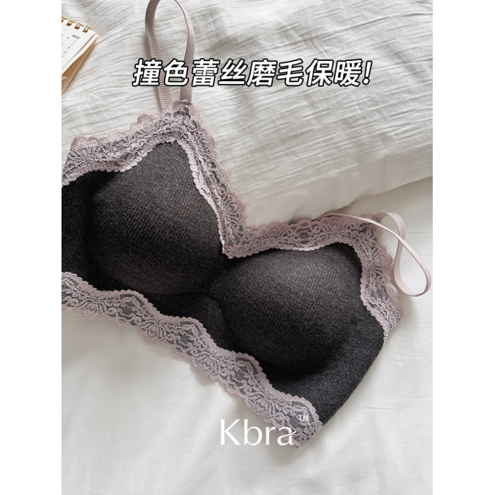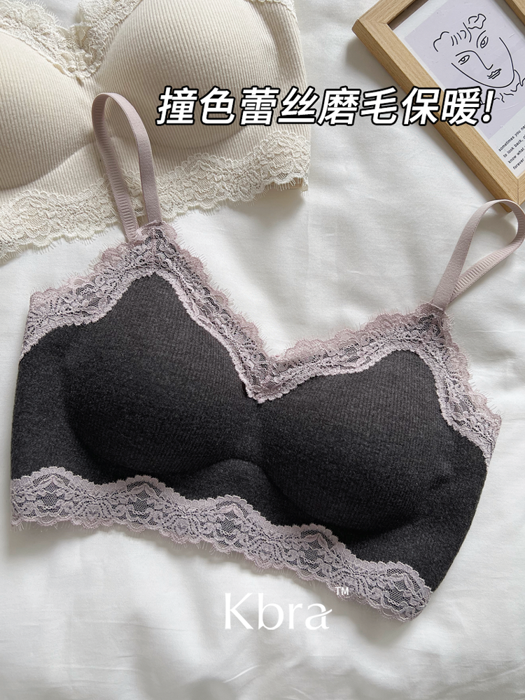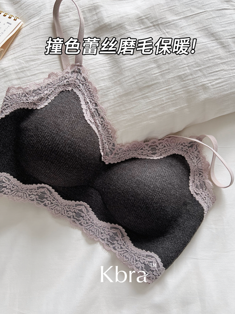 Kbra法式蕾絲磨毛保暖內衣女2025新款胸大顯小無痕防下垂文胸罩