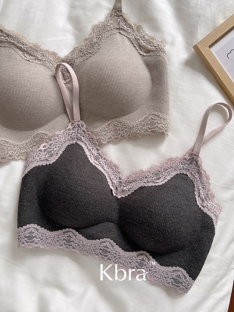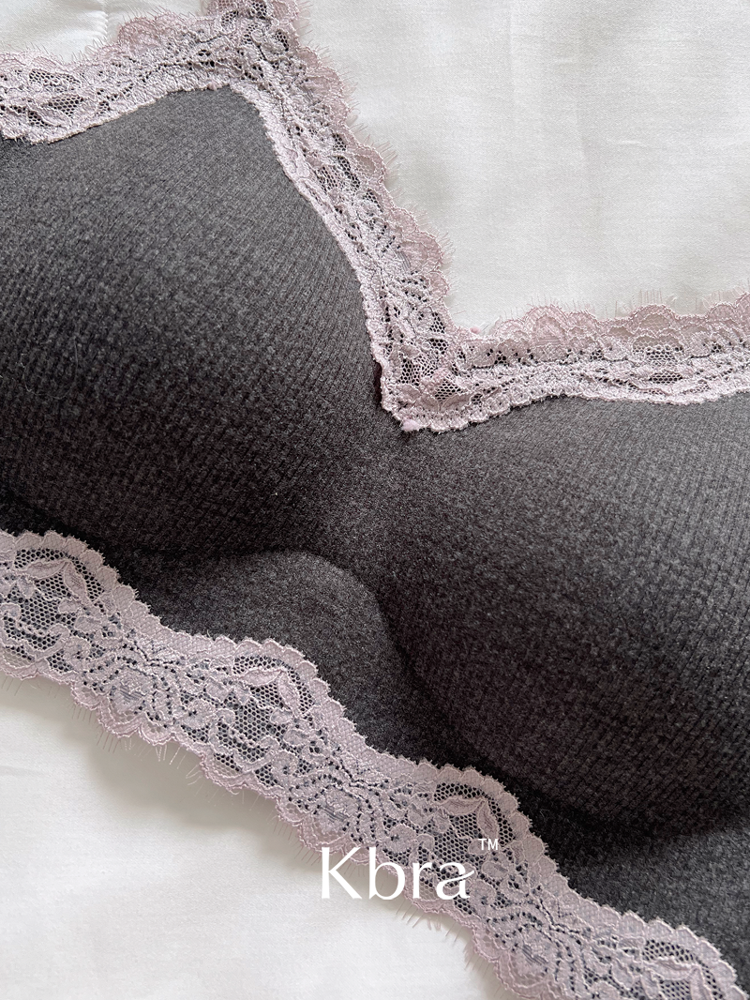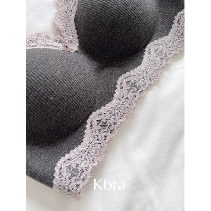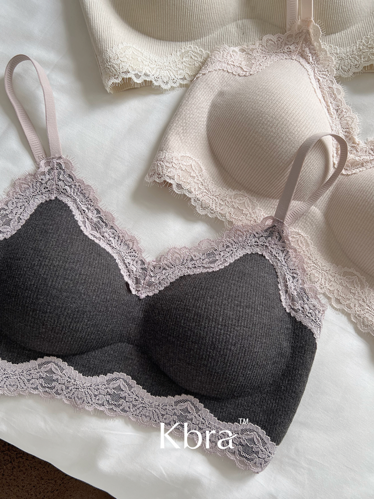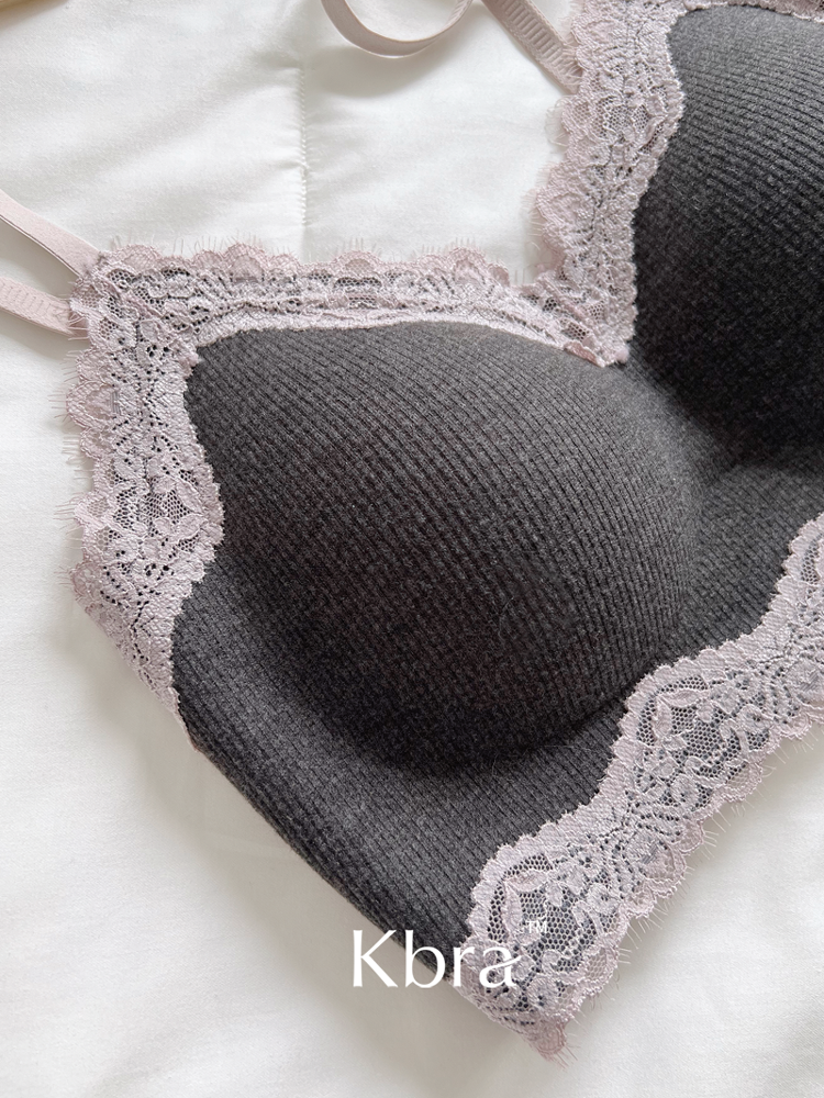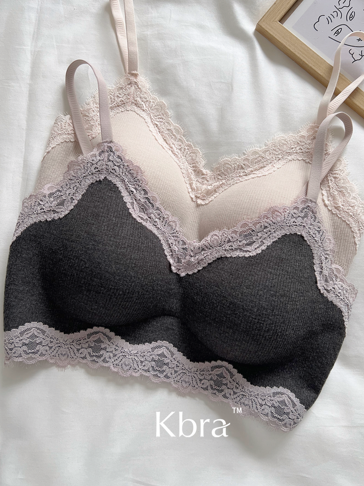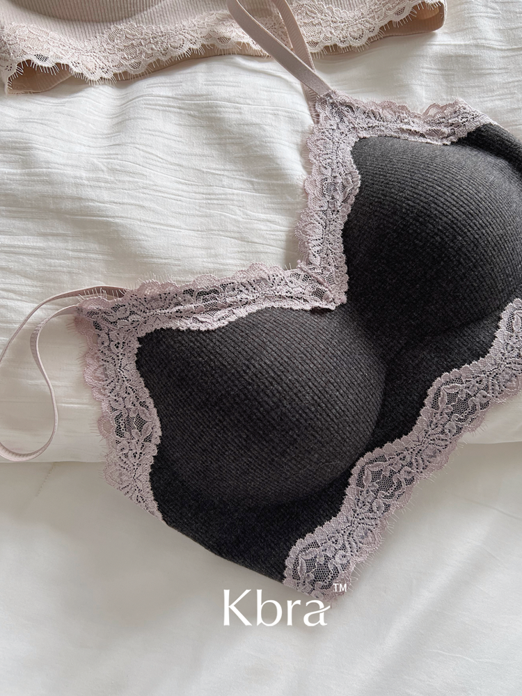 Kbra法式蕾絲磨毛保暖內衣女2025新款胸大顯小無痕防下垂文胸罩