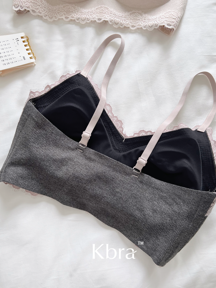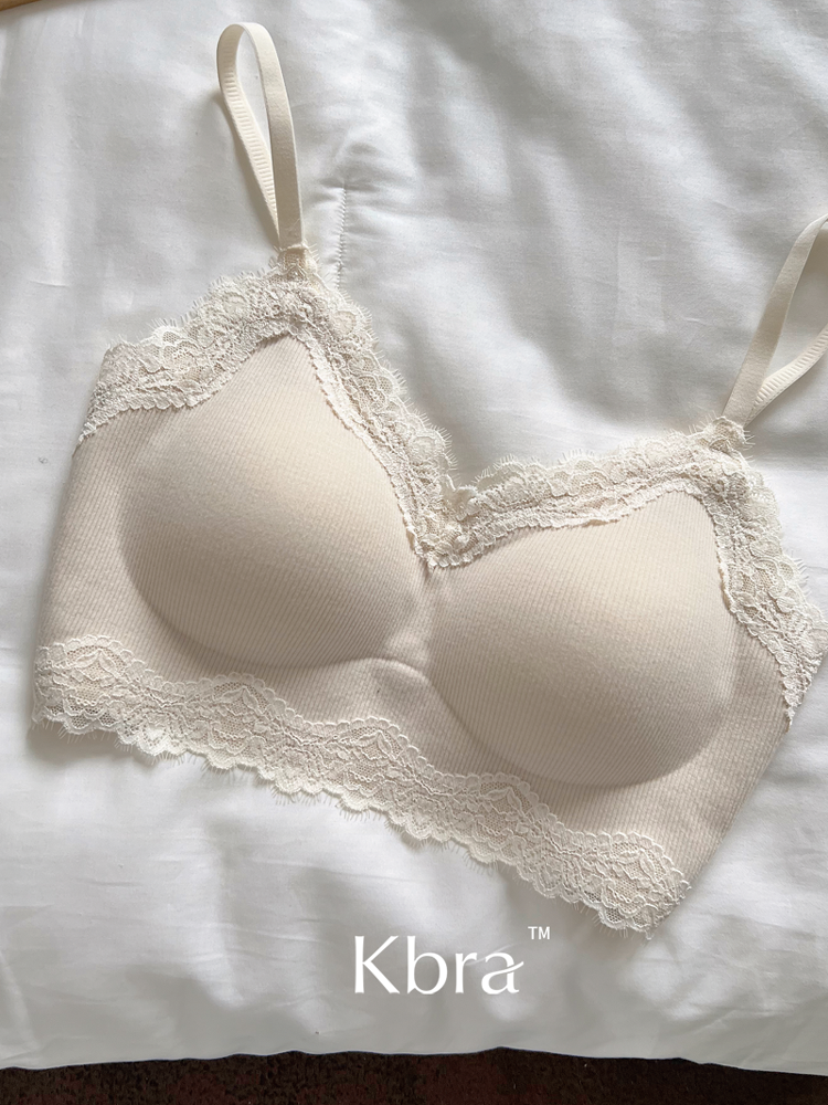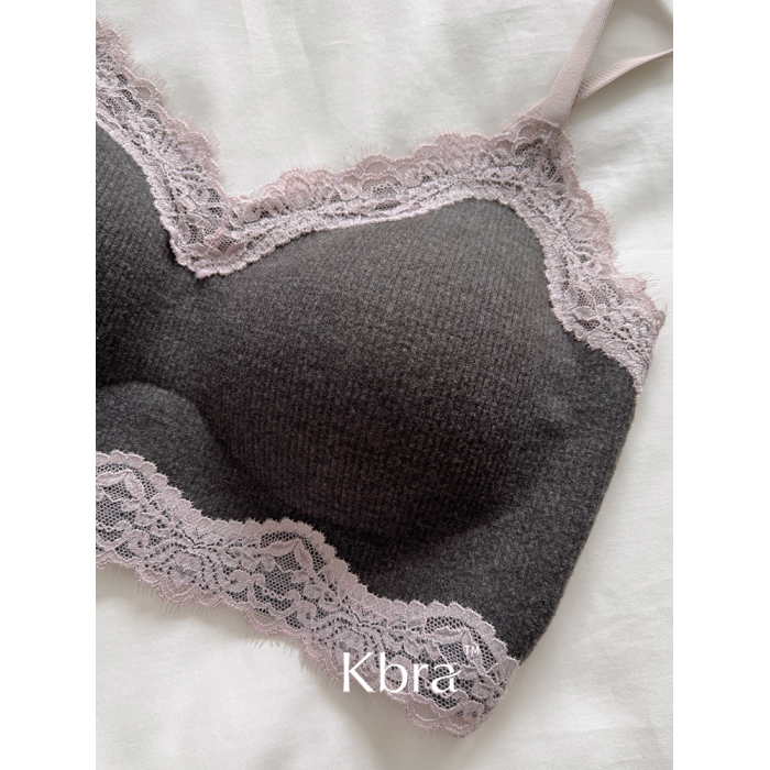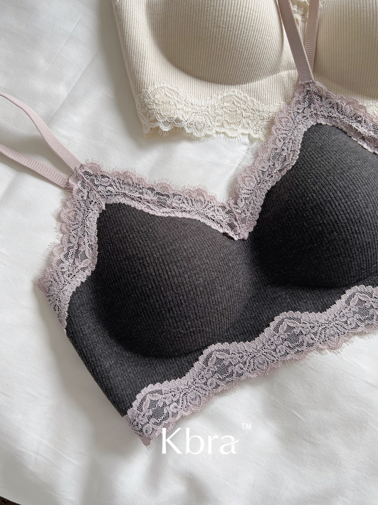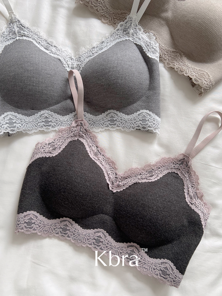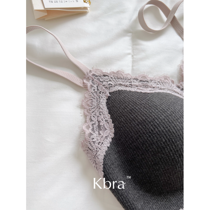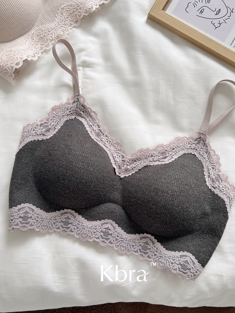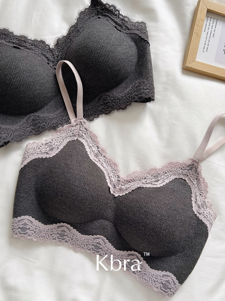 Kbra法式蕾絲磨毛保暖內衣女2025新款胸大顯小無痕防下垂文胸罩