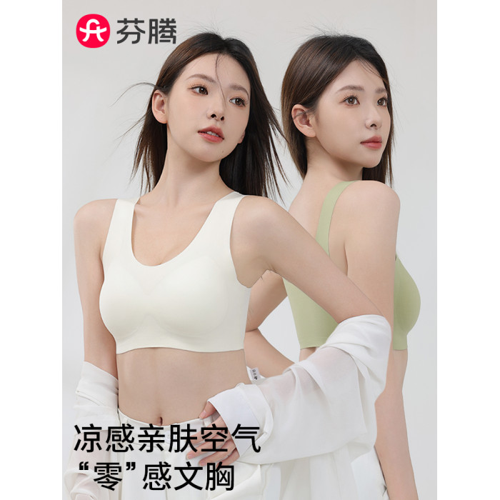芬騰無痕內衣女無鋼圈尺碼夏美背心式運動薄款大胸顯小大碼文胸罩