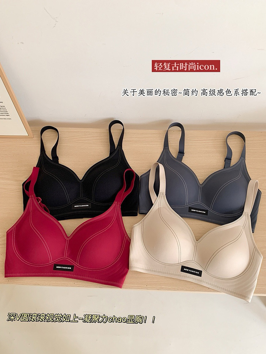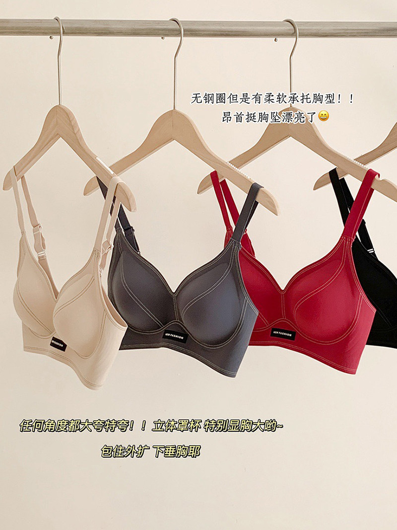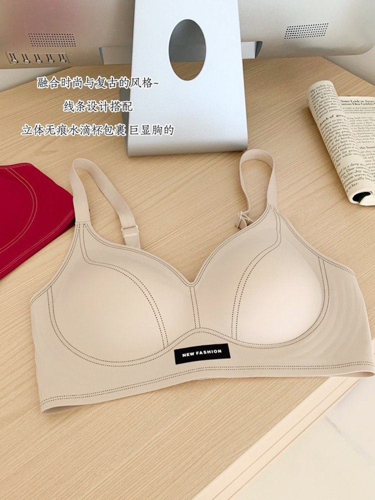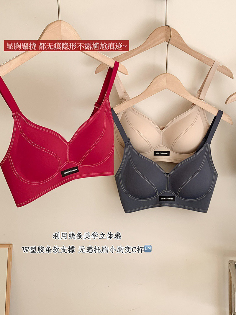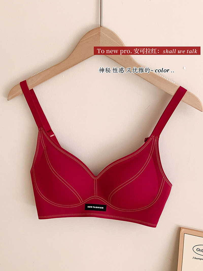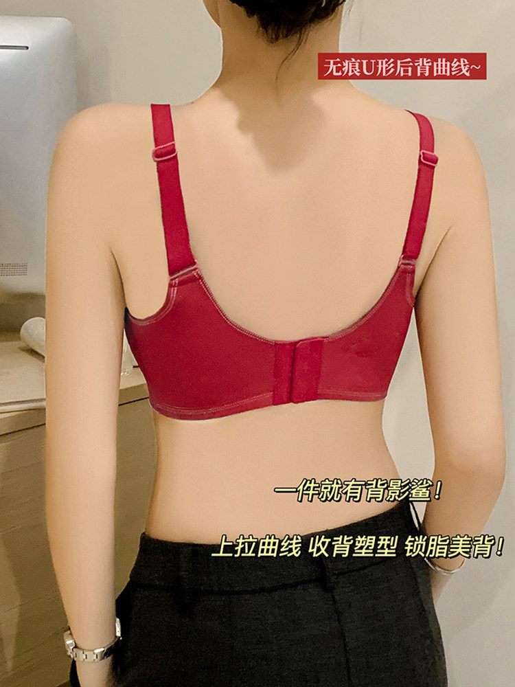 果凍條軟提拉無痕內衣女大胸顯小聚攏紅色固定杯防下垂收副乳文胸