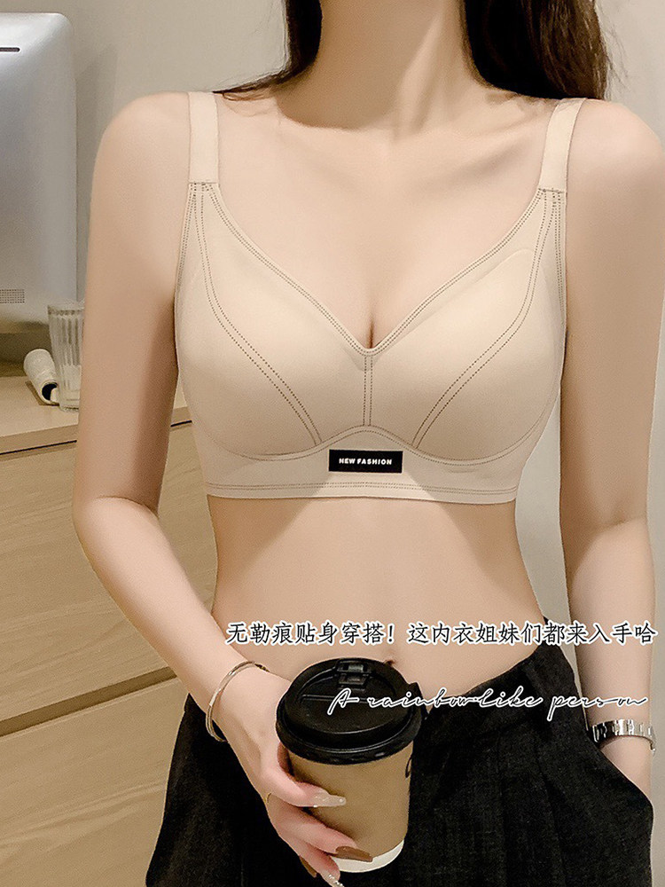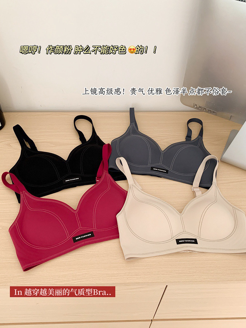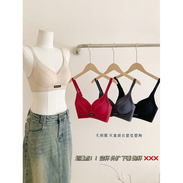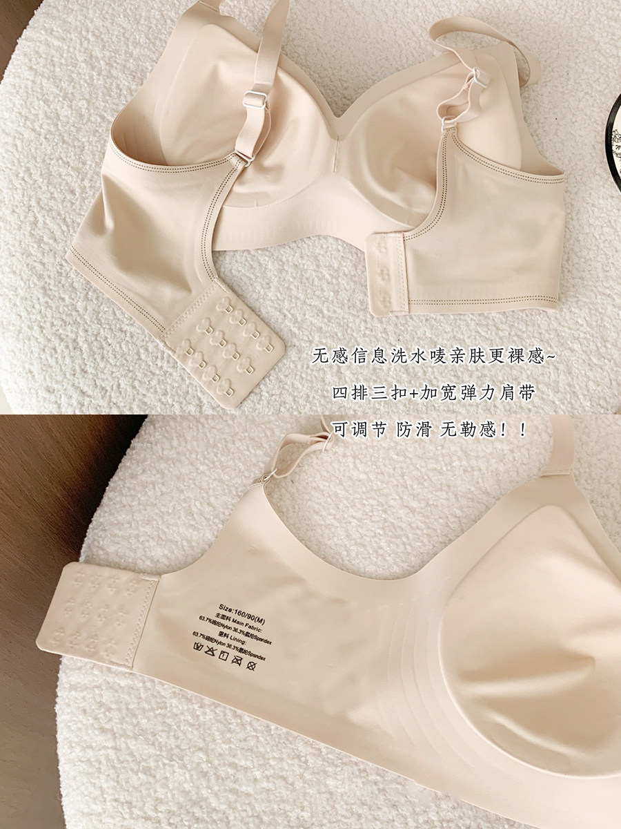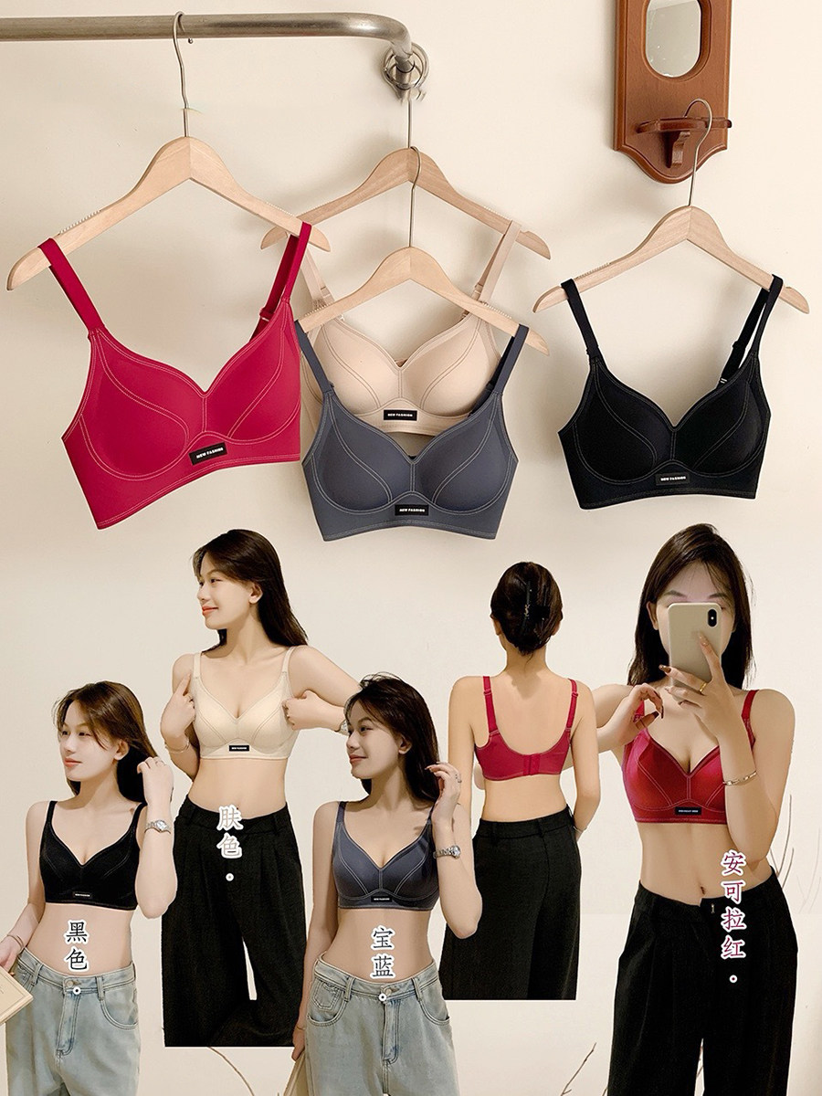 果凍條軟提拉無痕內衣女大胸顯小聚攏紅色固定杯防下垂收副乳文胸