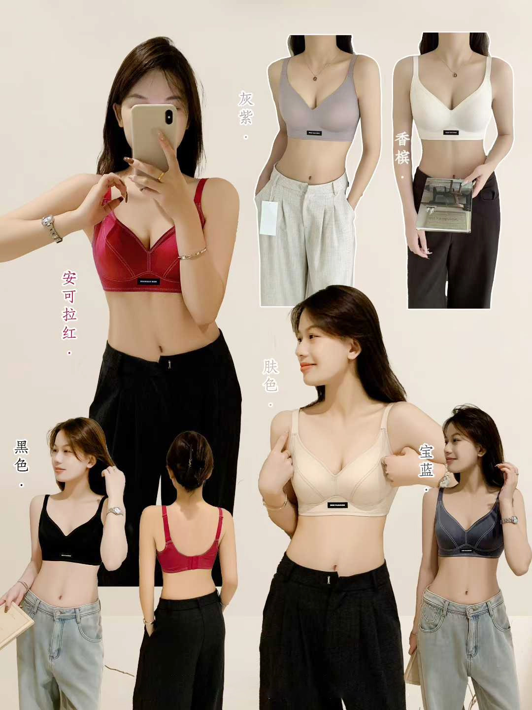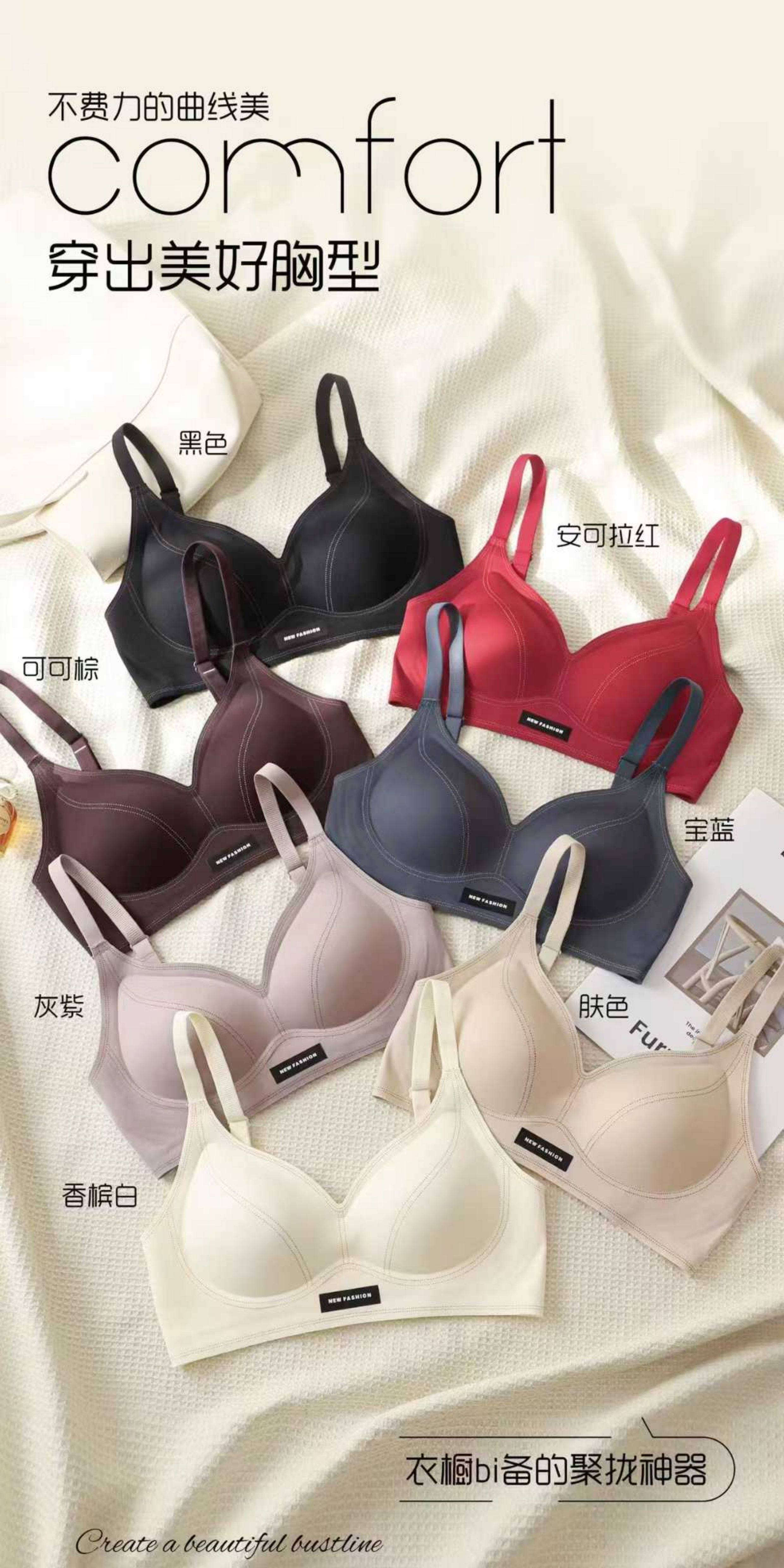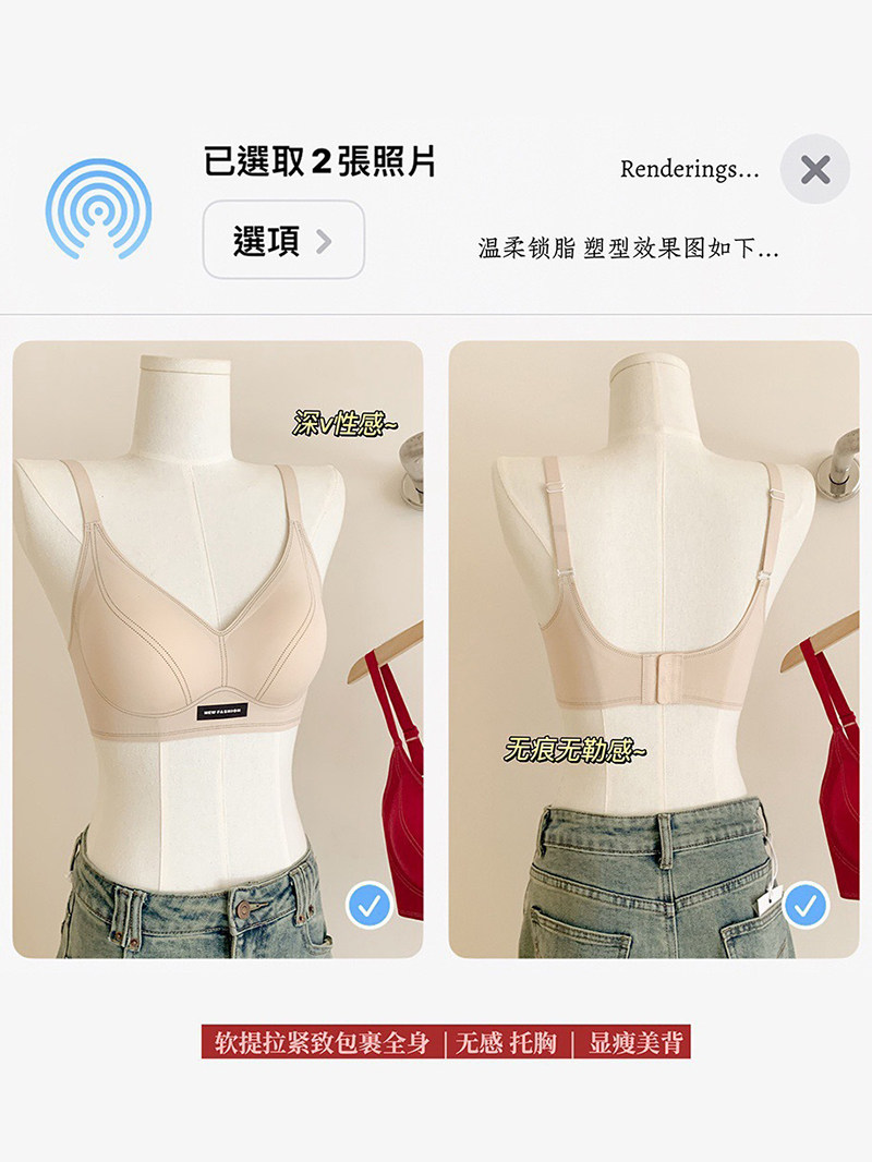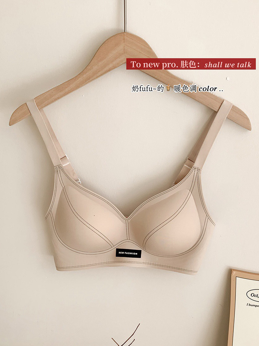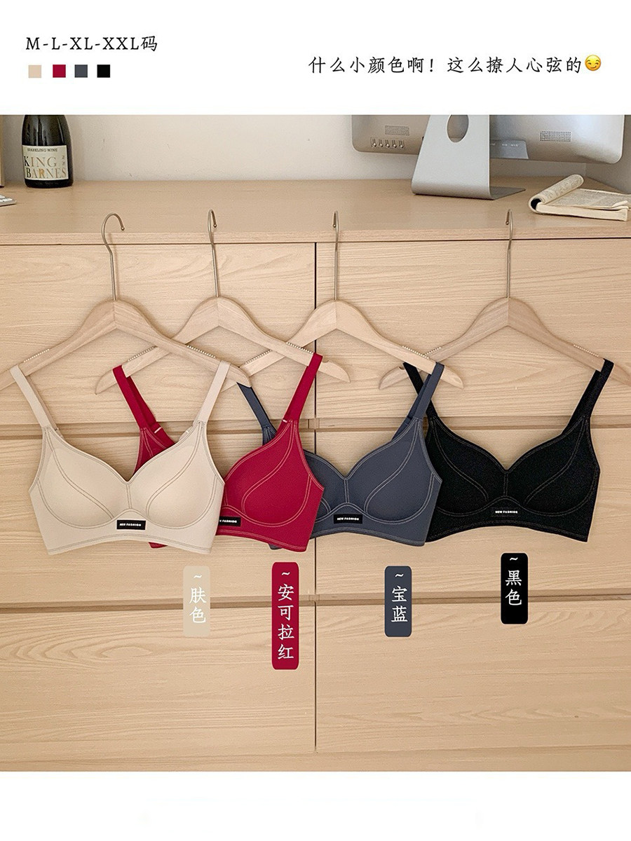 果凍條軟提拉無痕內衣女大胸顯小聚攏紅色固定杯防下垂收副乳文胸
