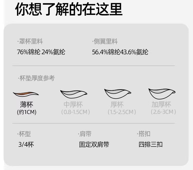 | 罩杯款式 | 3/4罩杯 |