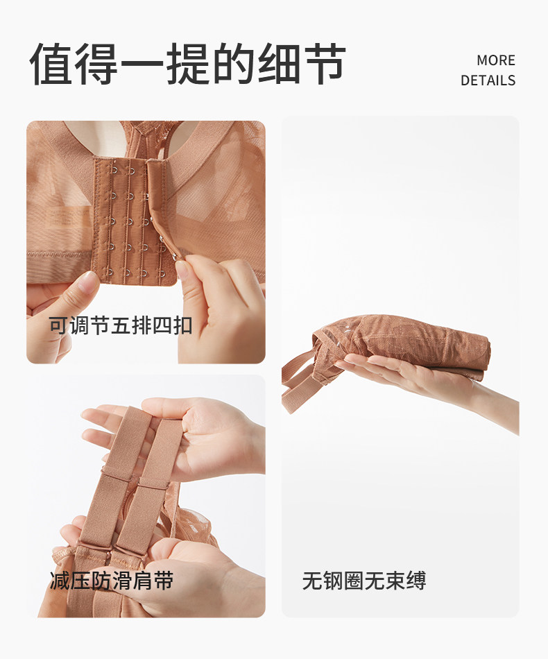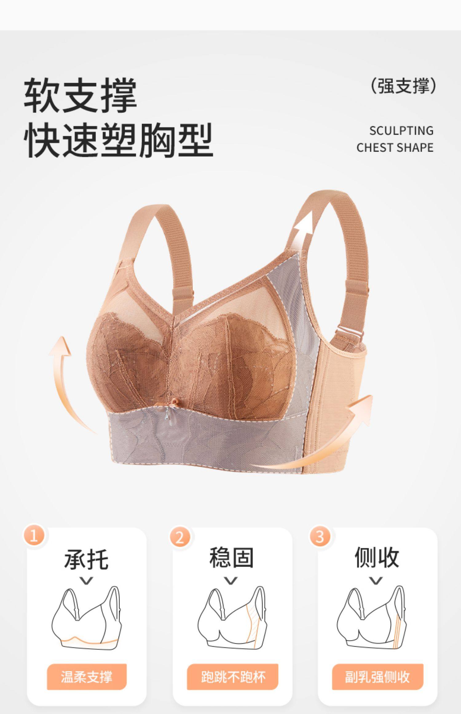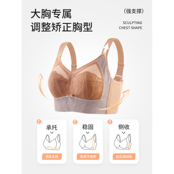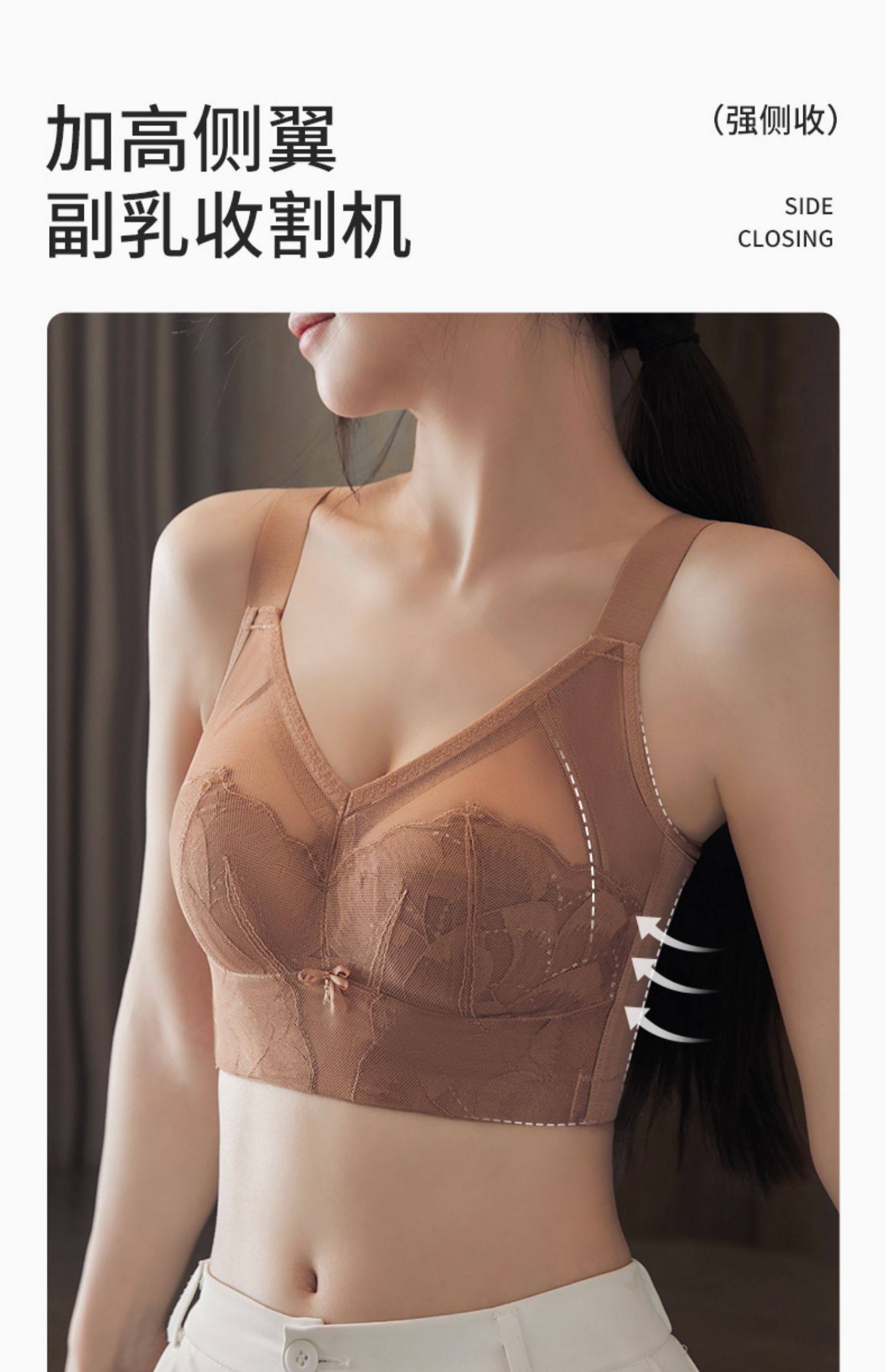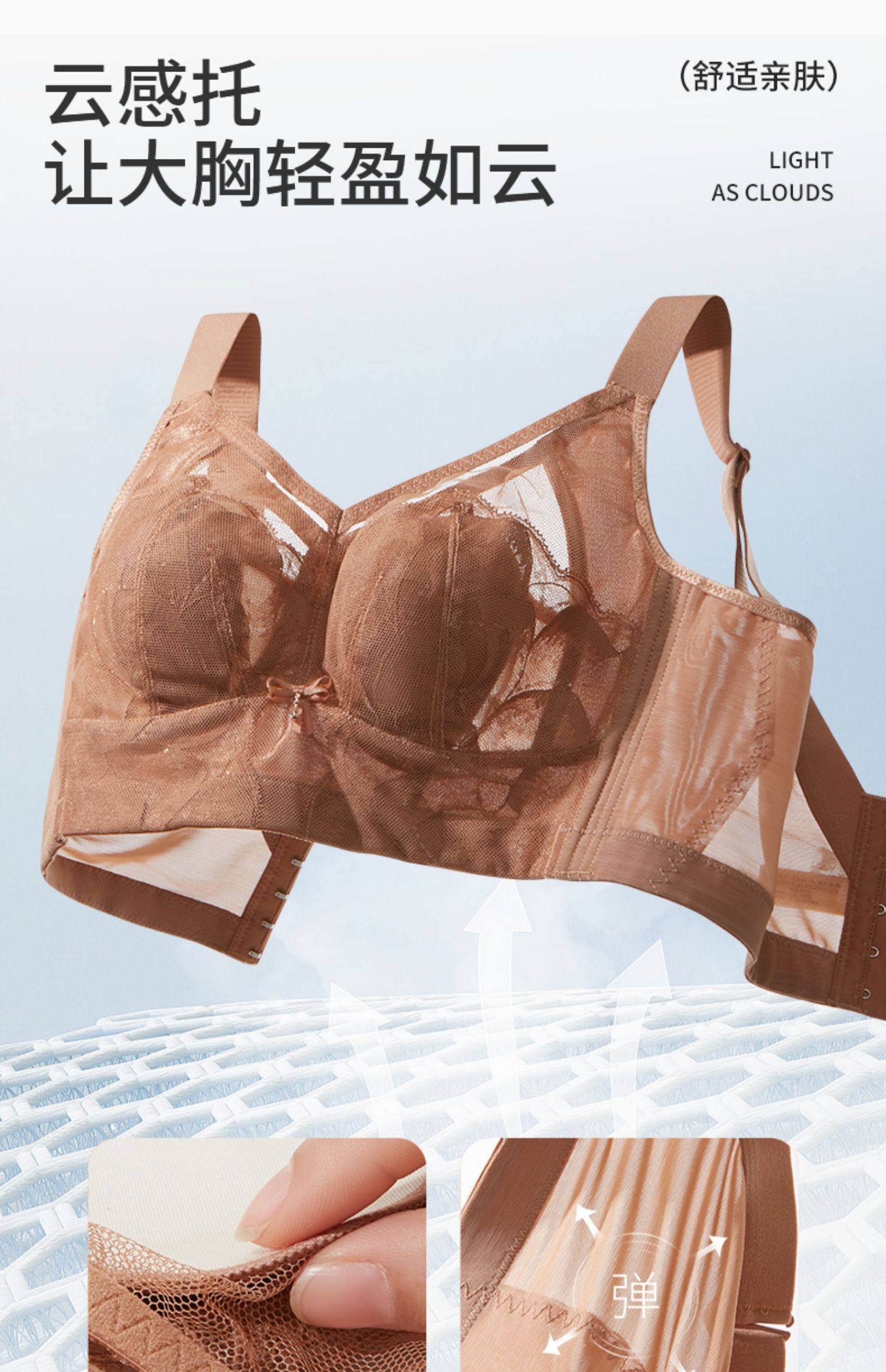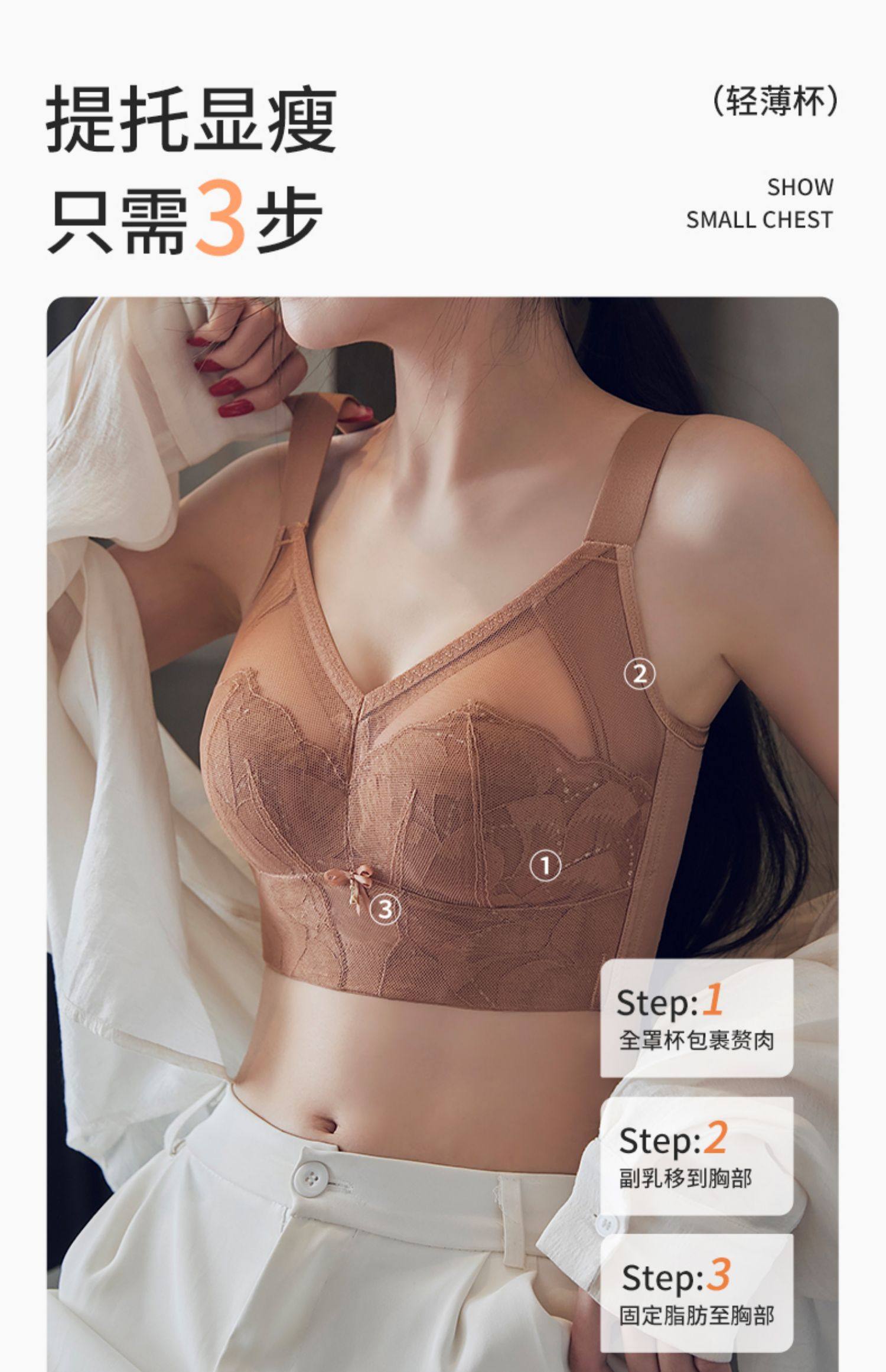 大胸顯小兔耳杯蕾絲文胸大碼超薄杯無鋼圈調整型全罩杯薄款內衣