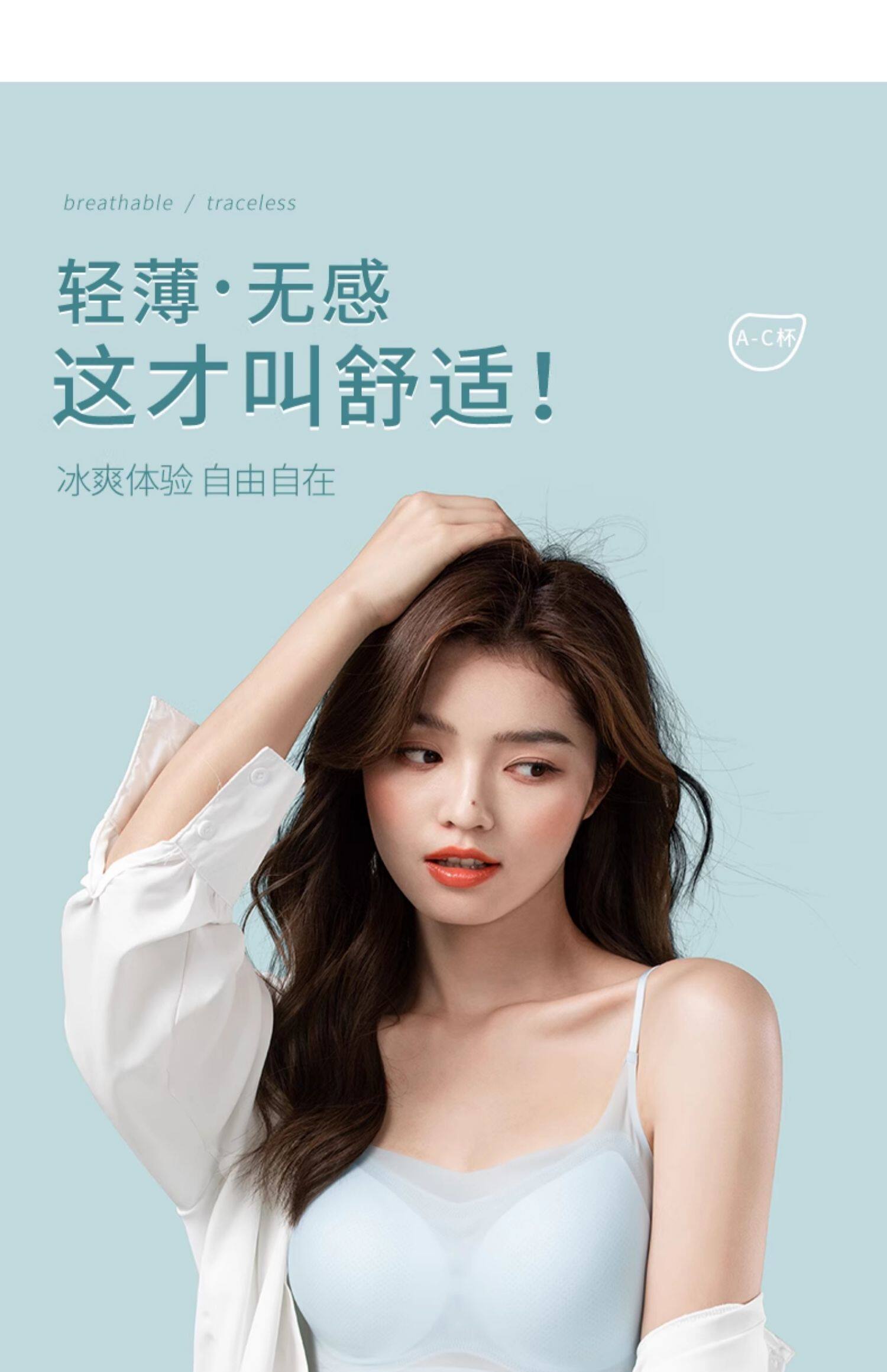 無痕超薄款內衣女夏季冰絲大胸顯小胸聚攏美背運動背心式文胸胸罩