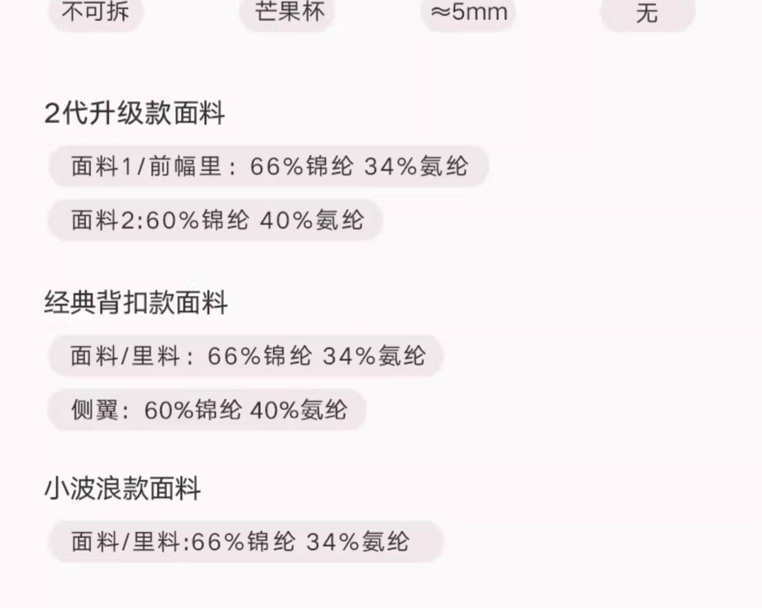 | 罩杯外層材質 | 雙彈面料 |