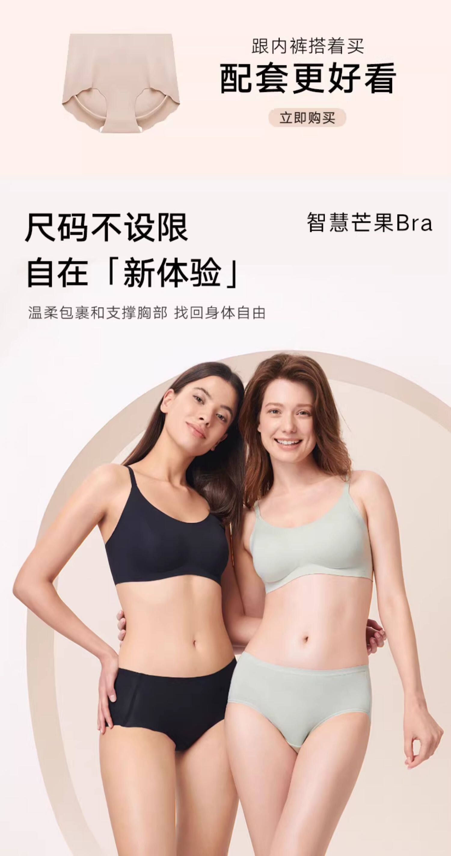 曼妮芬芒果杯智慧無尺碼無痕內衣女無鋼圈背心不空杯文胸舒適胸罩