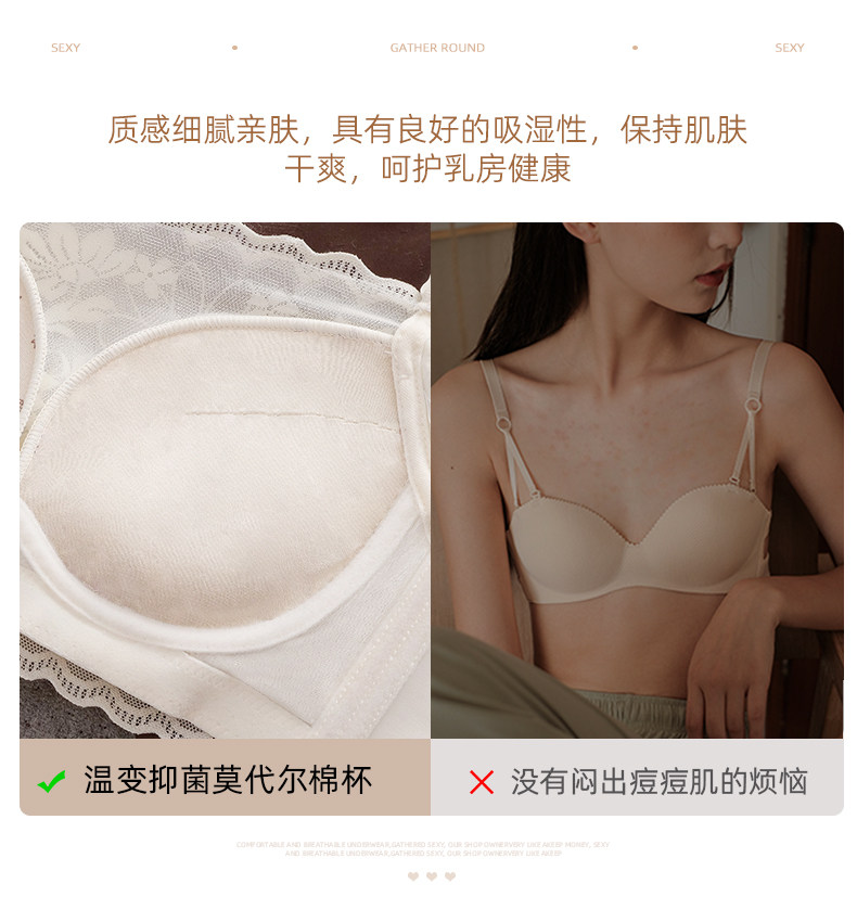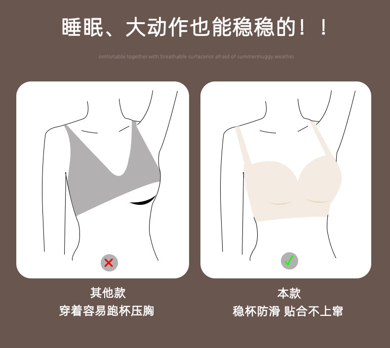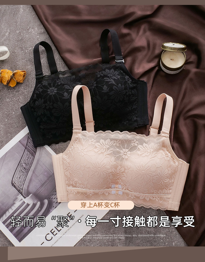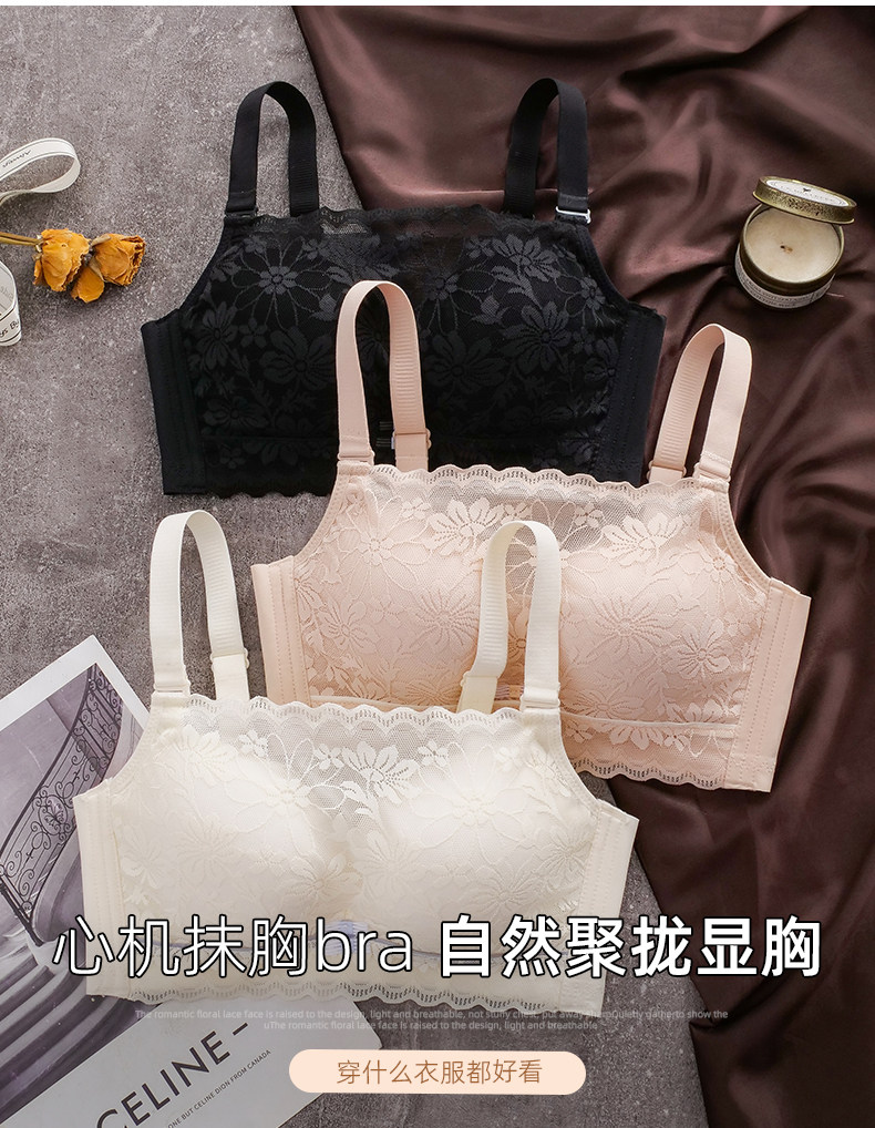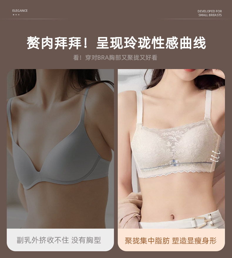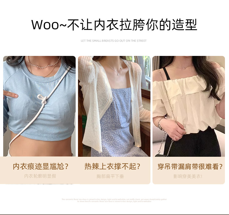 夏季平胸專用抹胸內衣女小胸聚攏6CM加厚無鋼圈顯大防走光文胸