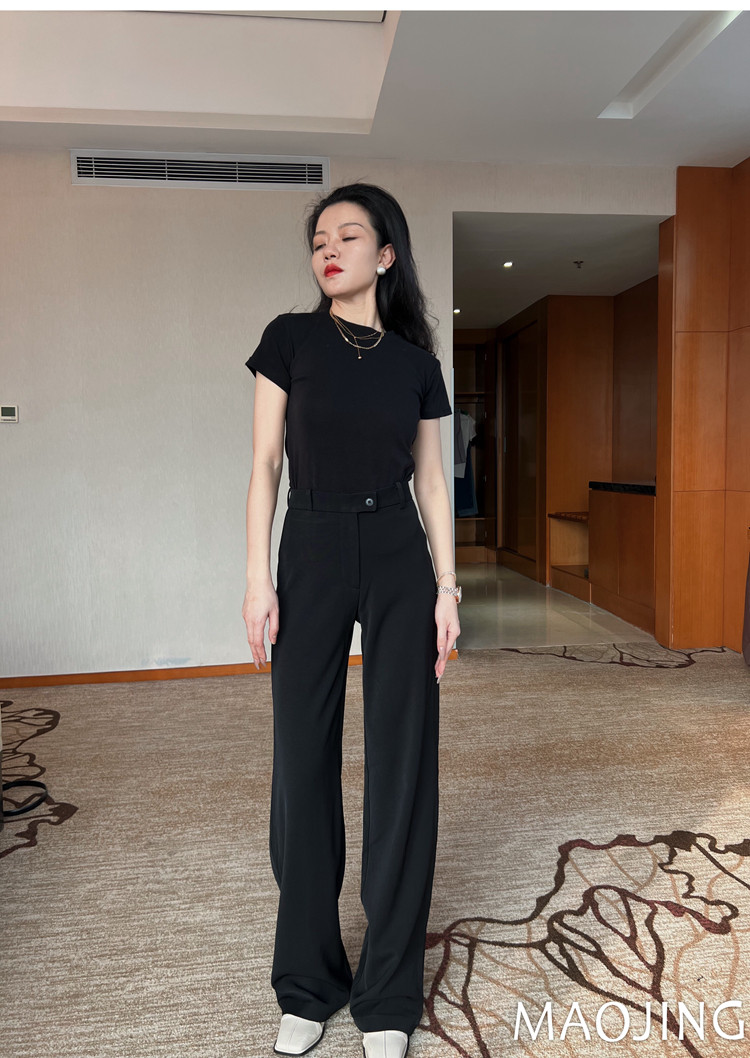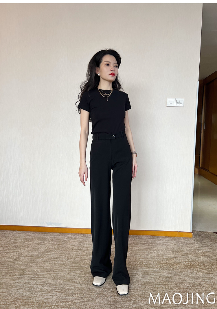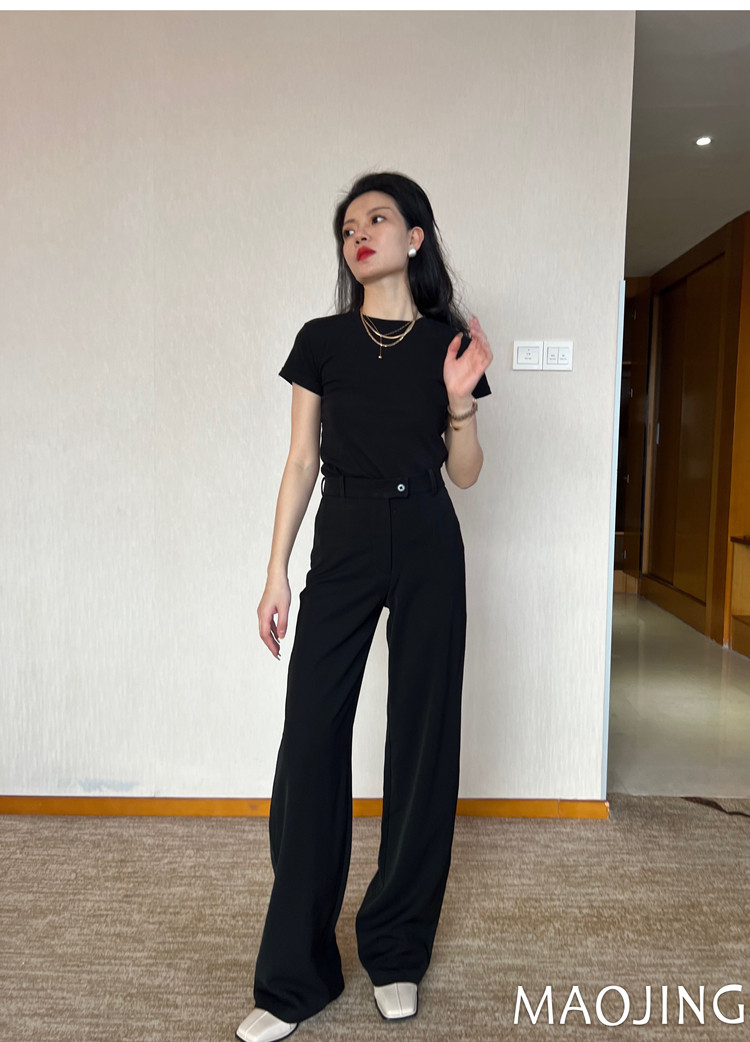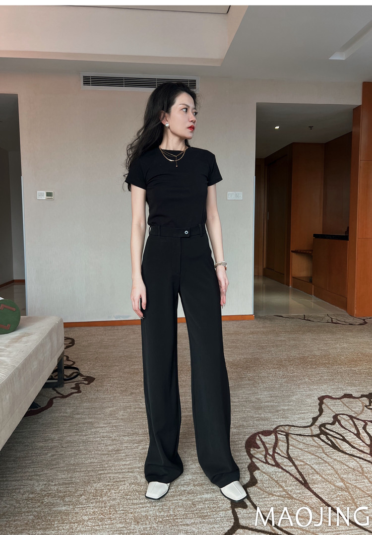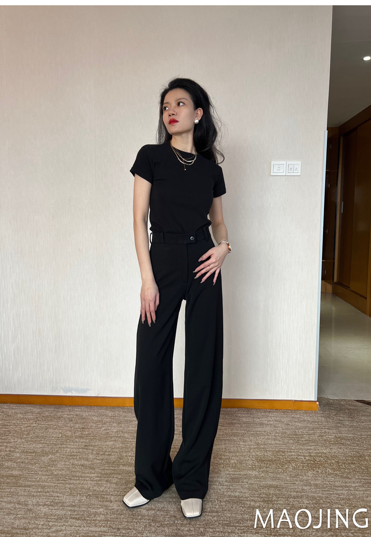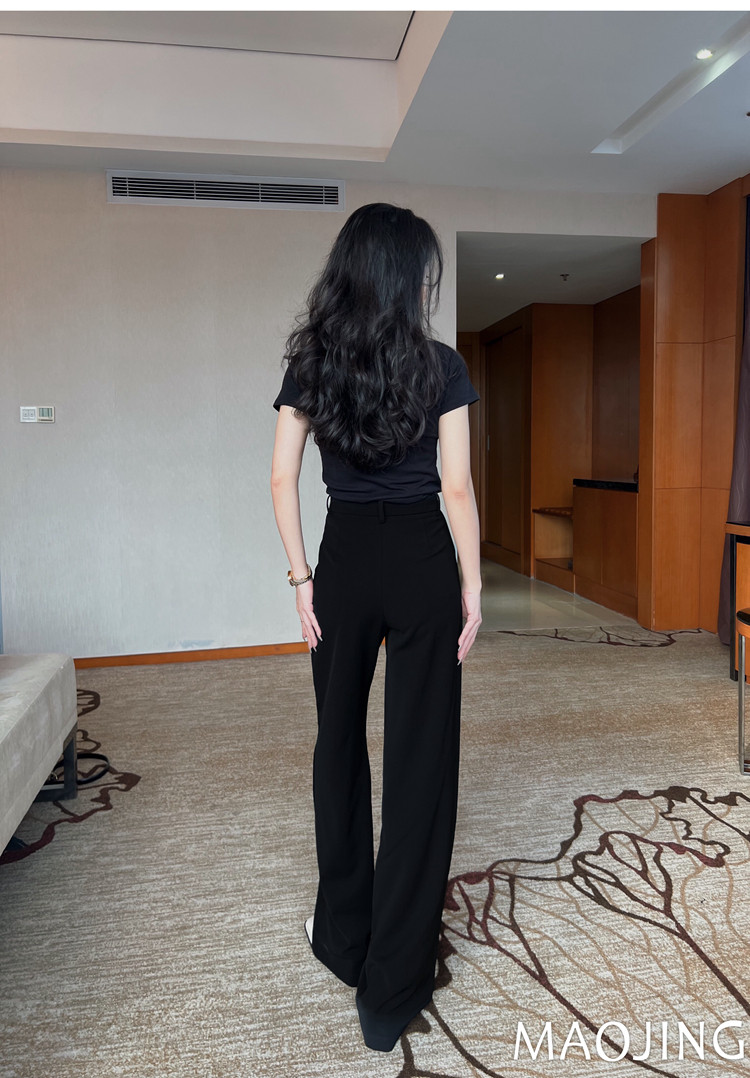 貓境經典不過時高腰極簡高級感顯瘦垂感加長窄版直筒西裝休閒長褲