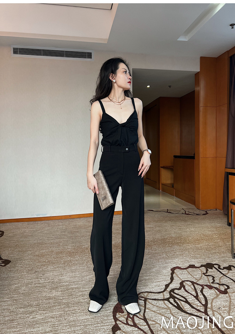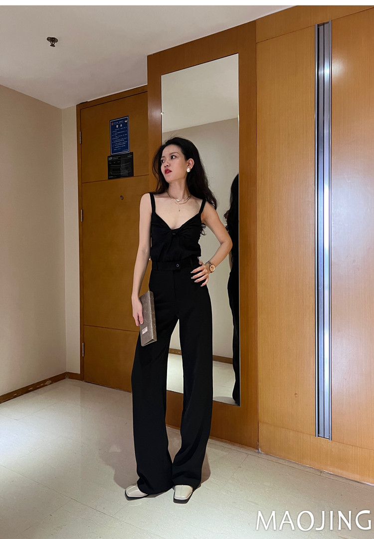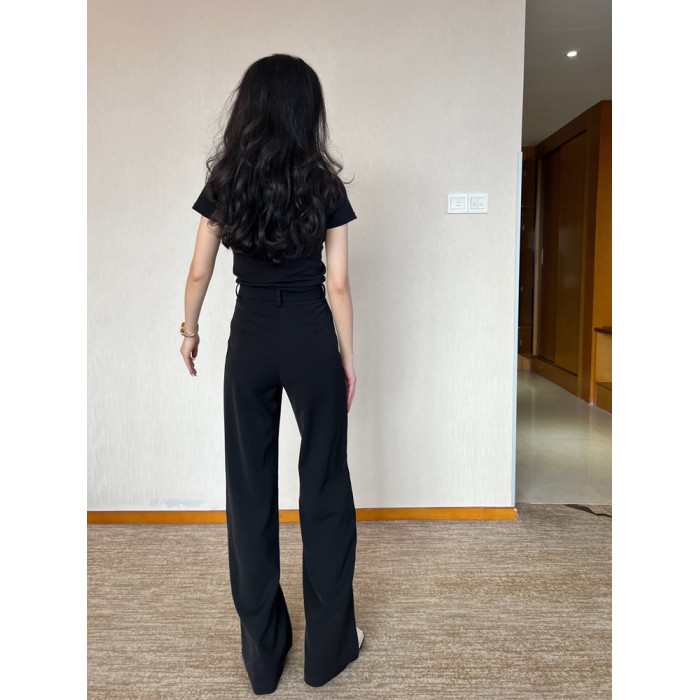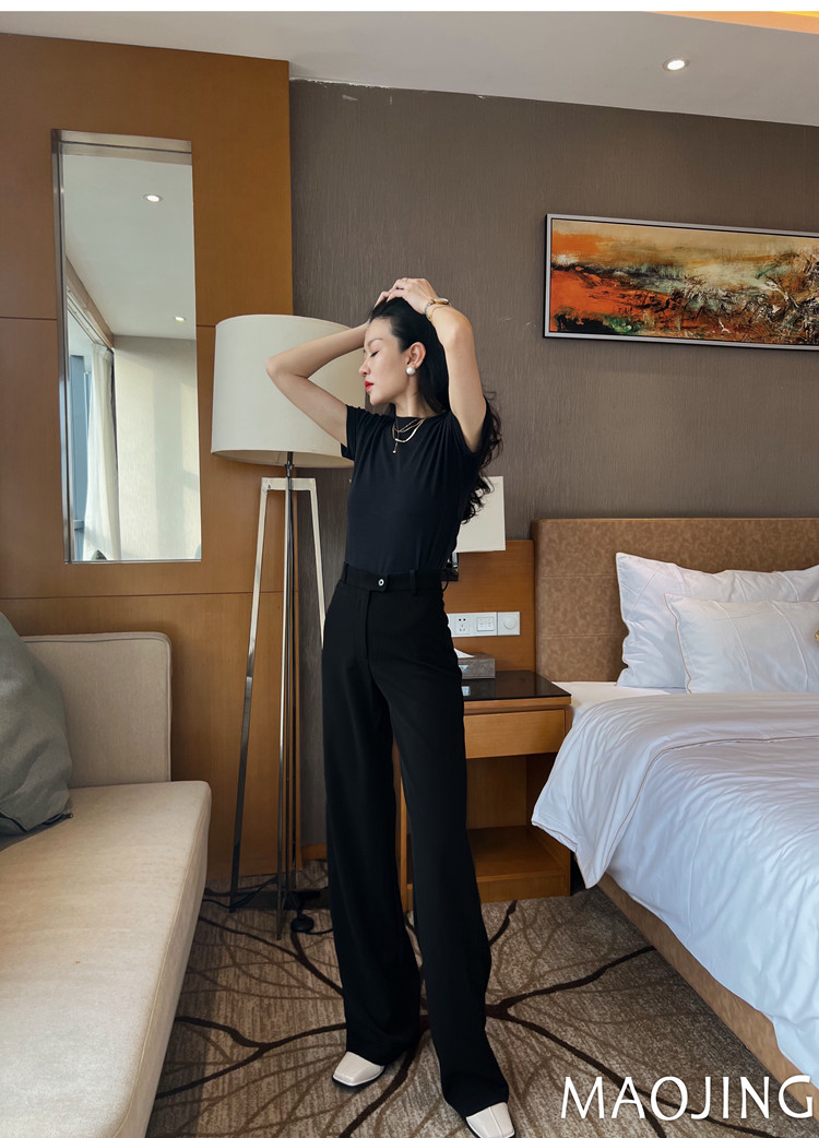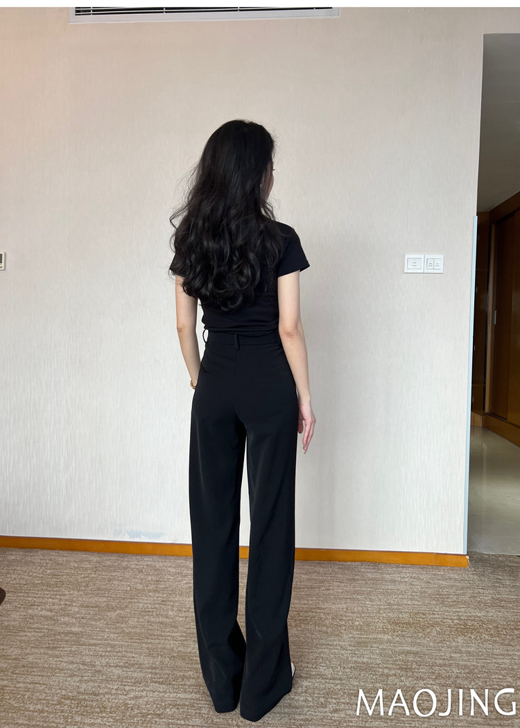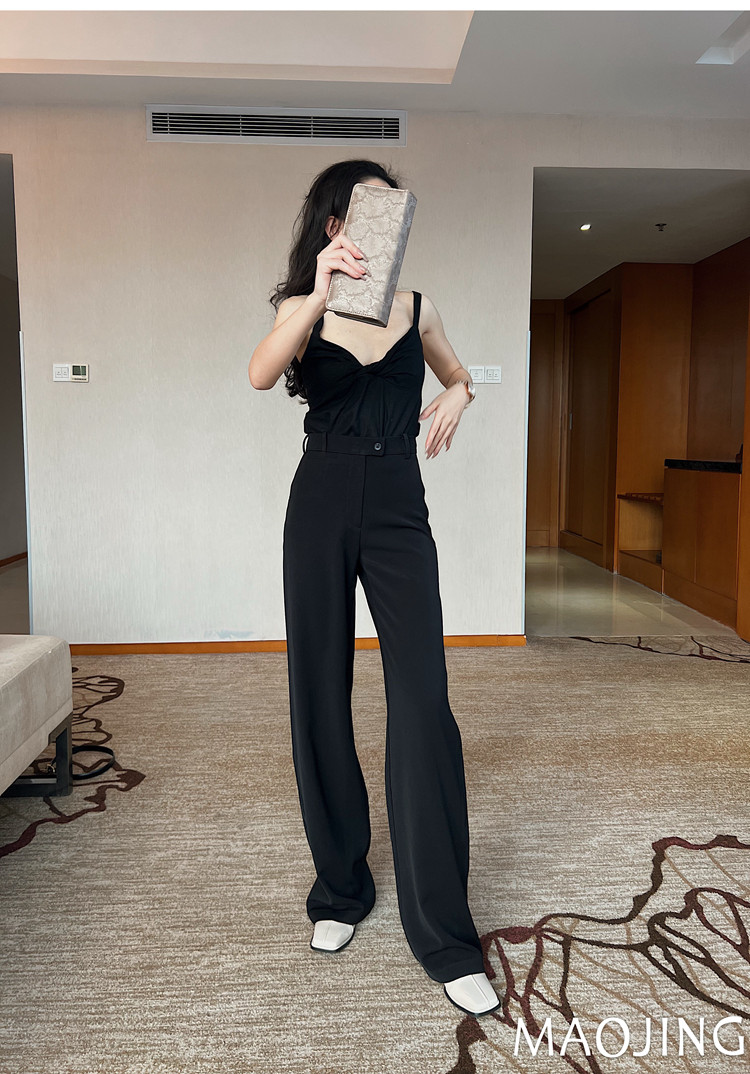 貓境經典不過時高腰極簡高級感顯瘦垂感加長窄版直筒西裝休閒長褲