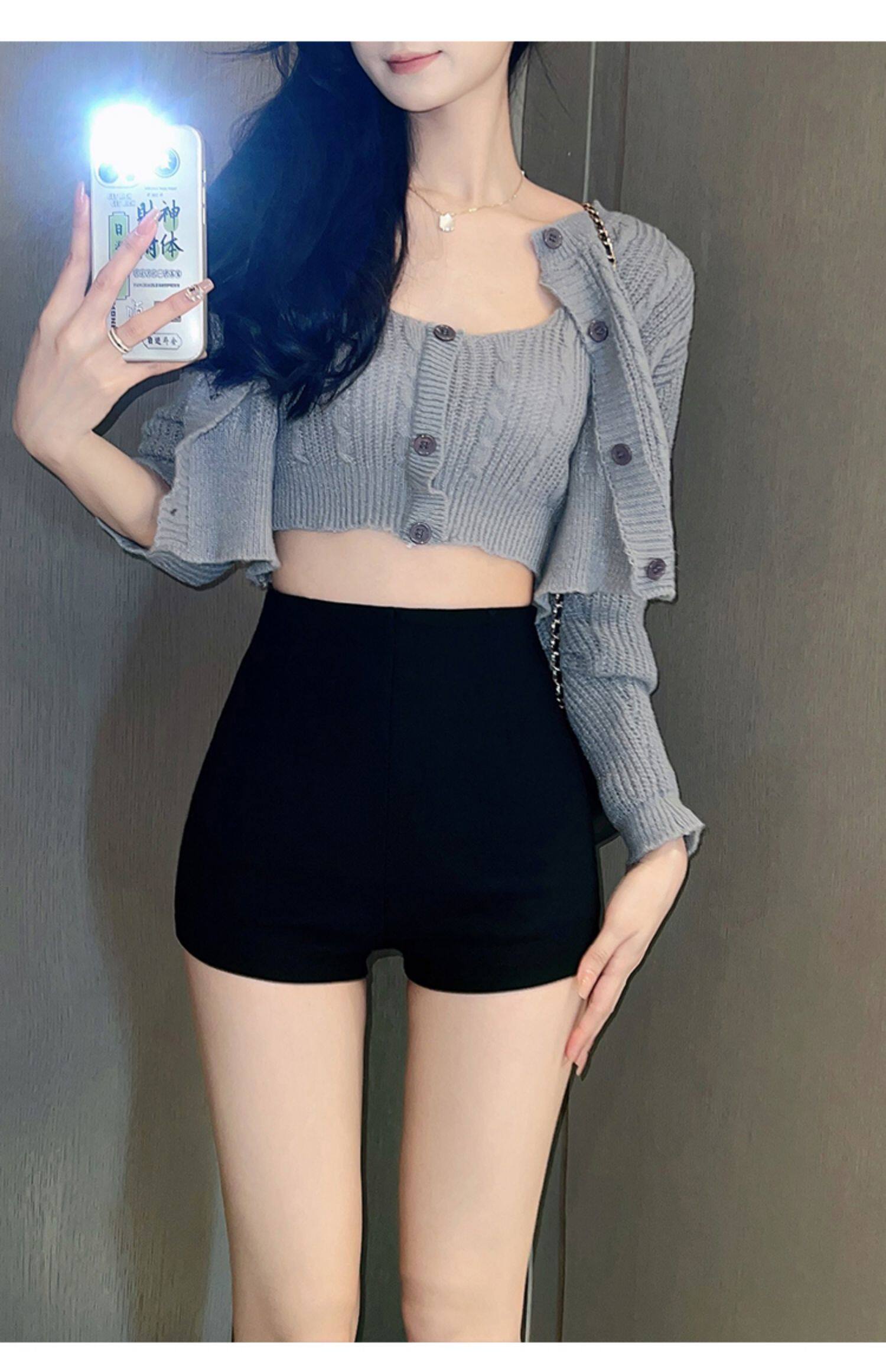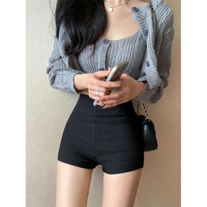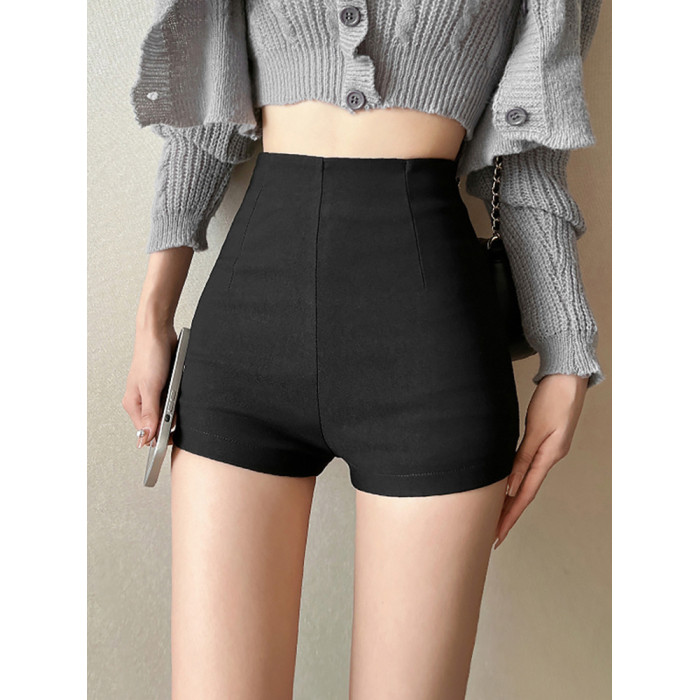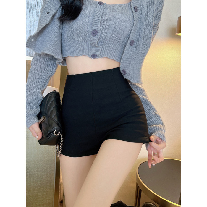 高腰黑色休閒短褲女秋季韓版百搭a字彈力打底褲修身顯瘦提臀熱褲