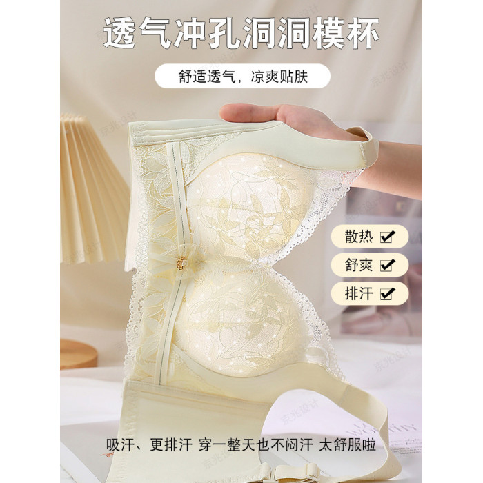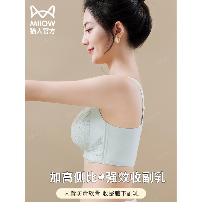 貓人內衣女小胸聚攏顯大上托防下垂收副乳無鋼圈調整型蕾絲文胸罩