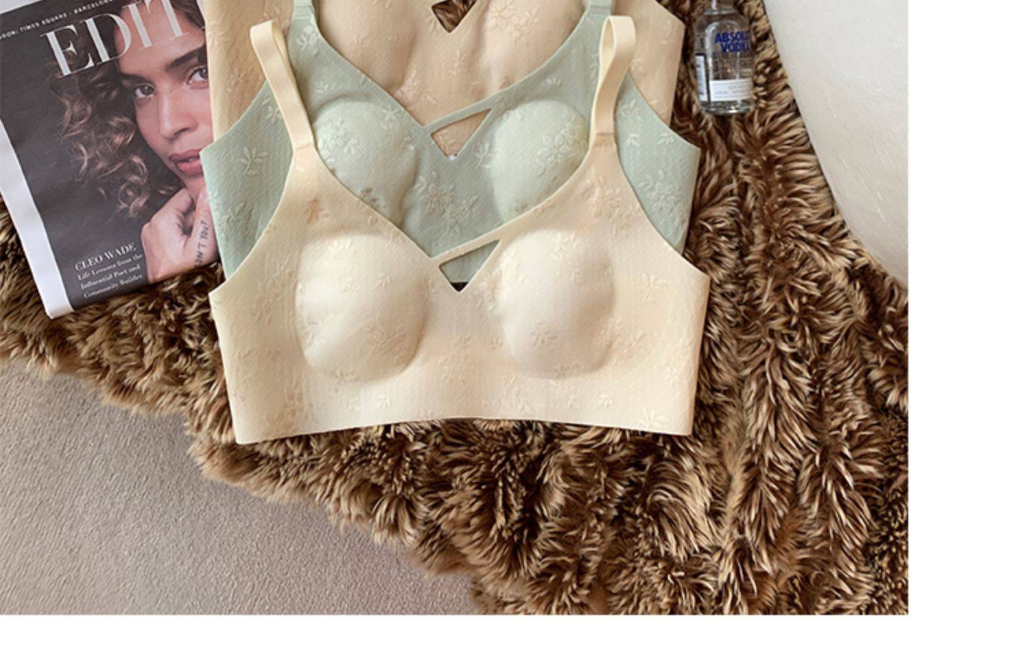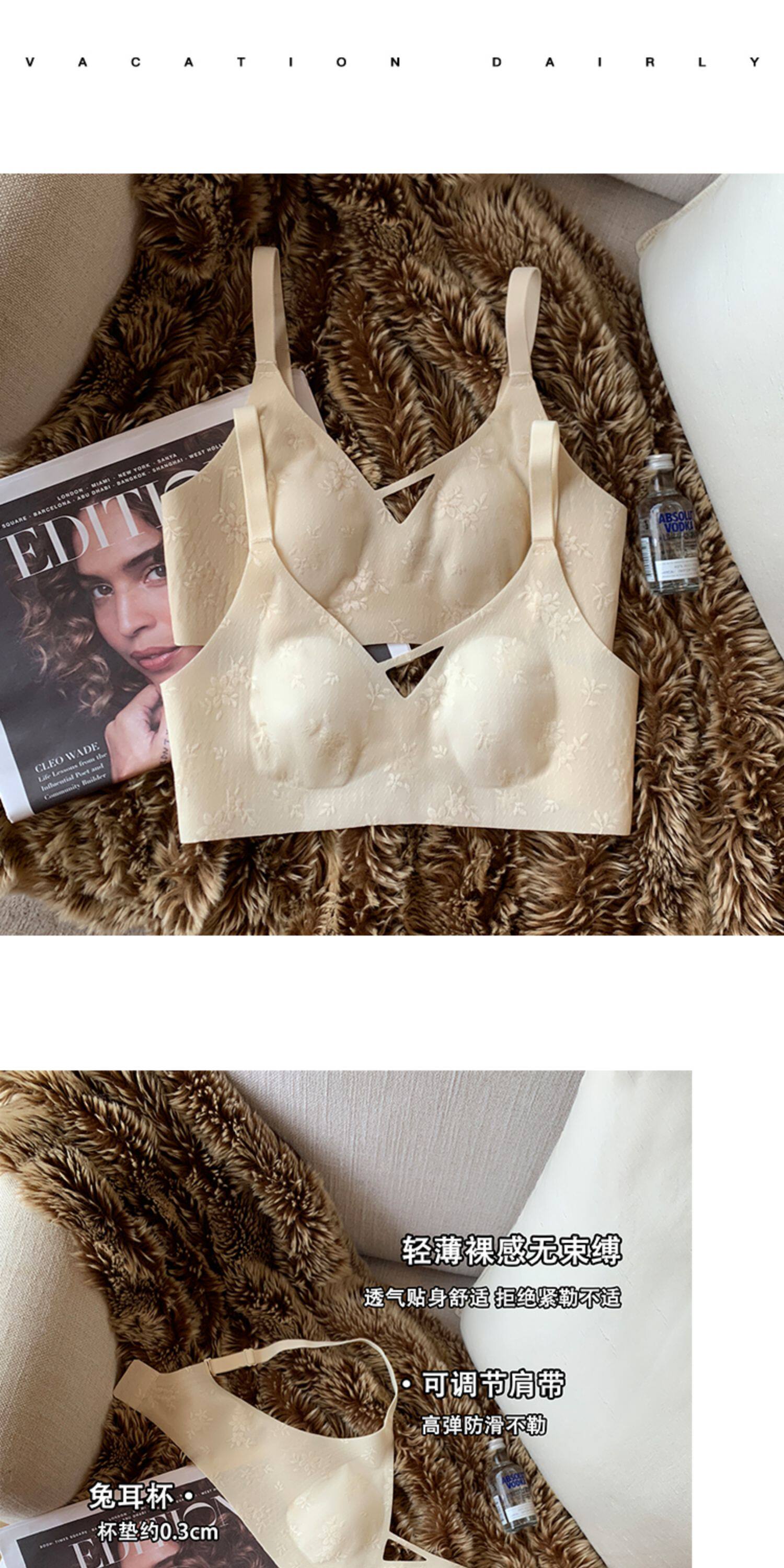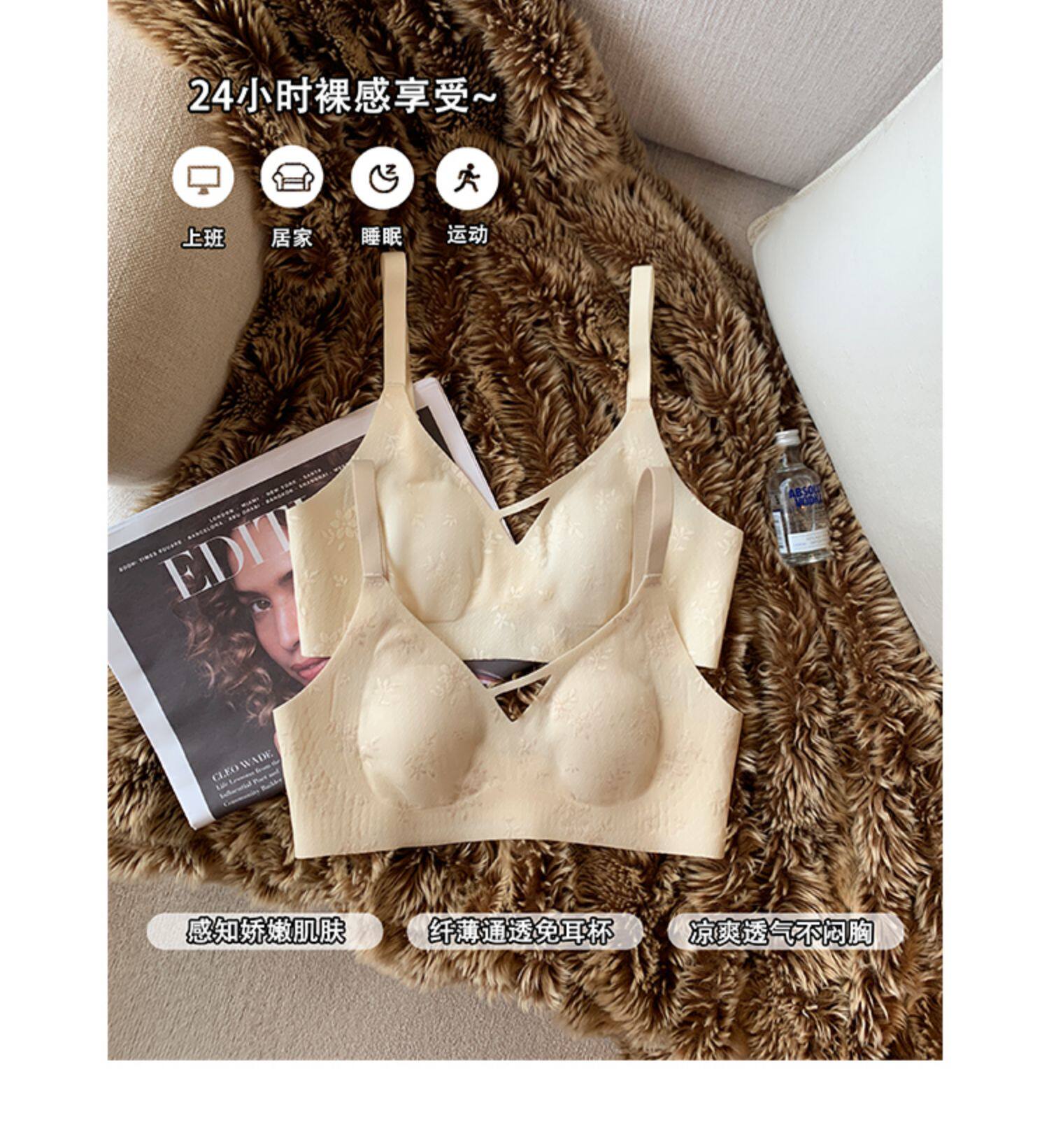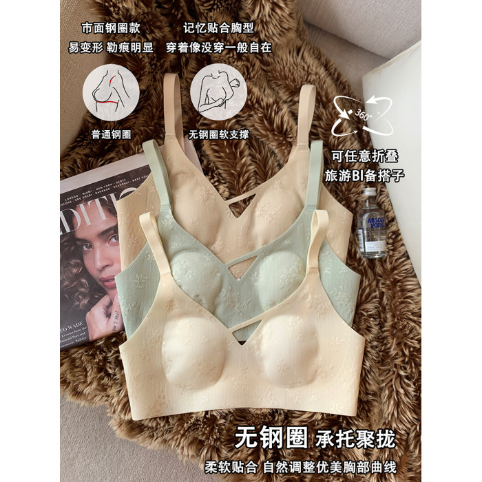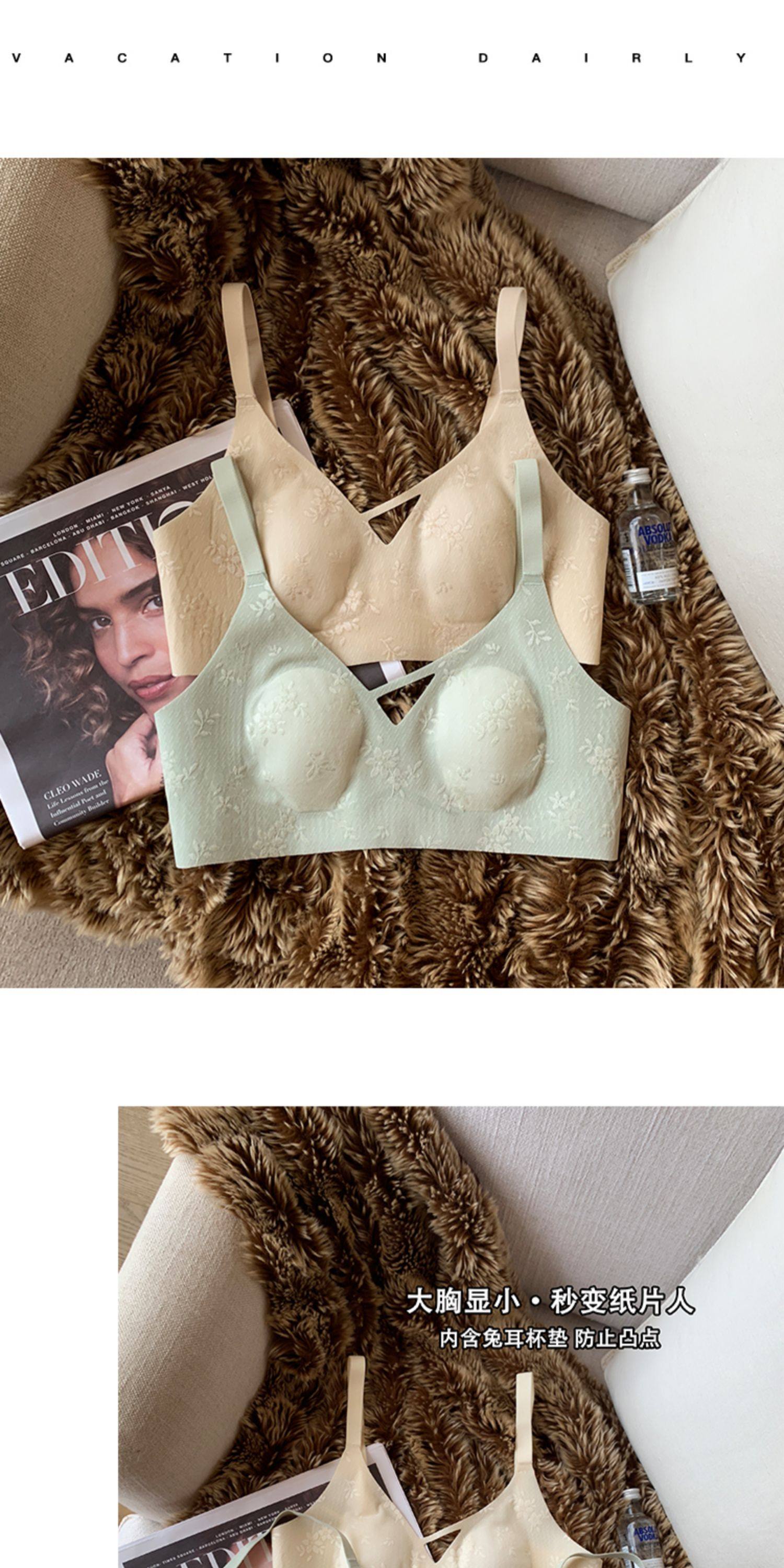 薄款提花蕾絲透氣內衣女大胸顯小顯瘦無鋼圈上托收副乳少女文胸罩