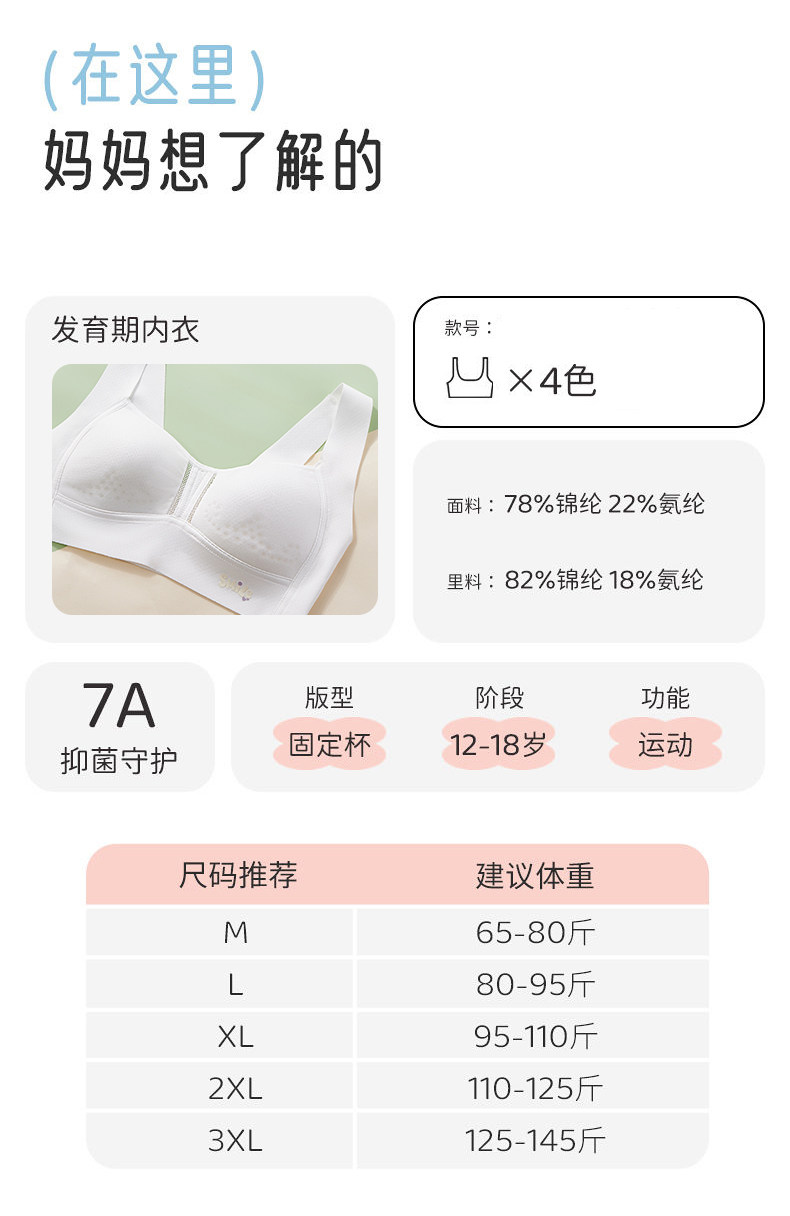 發育期少女內衣高中生16嵗青少年女孩二階段初中生文胸純棉固定杯