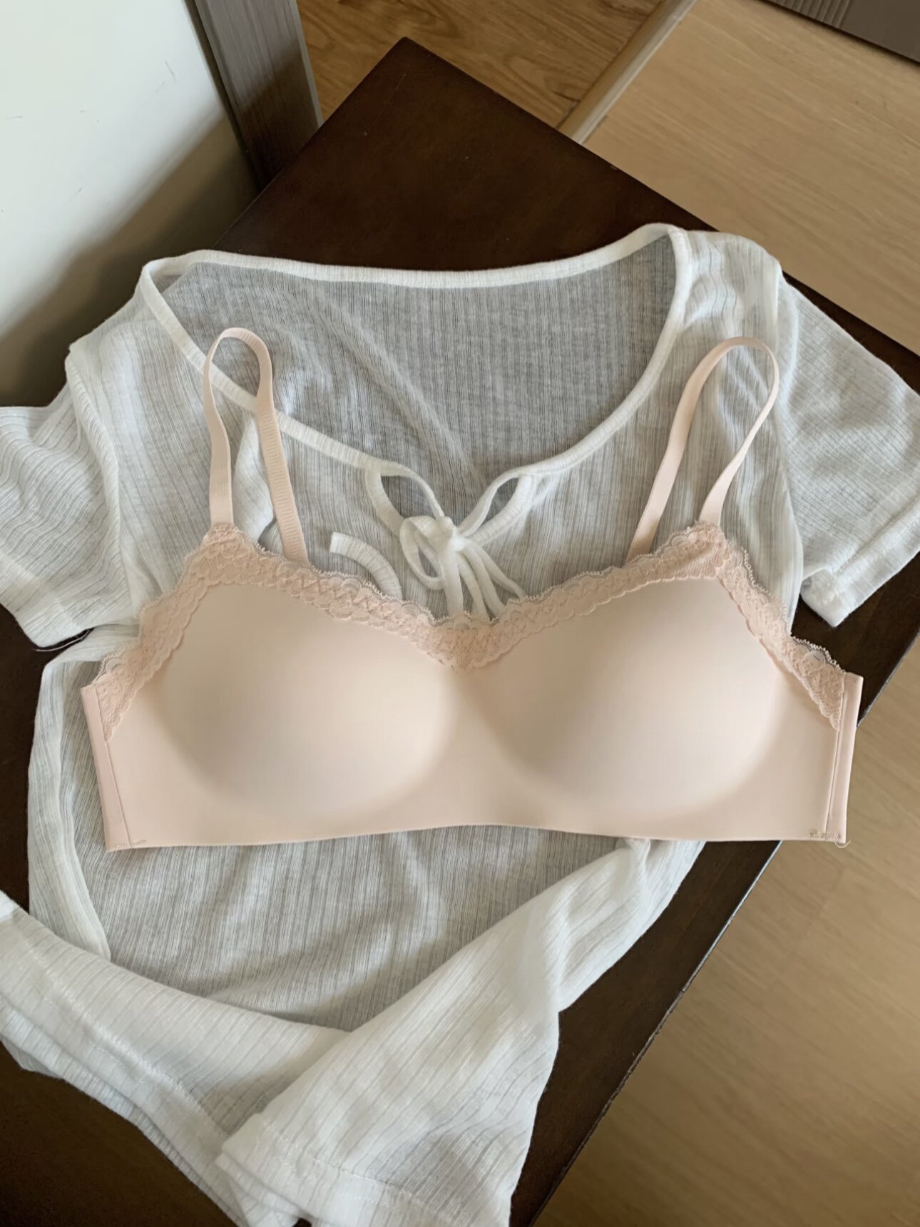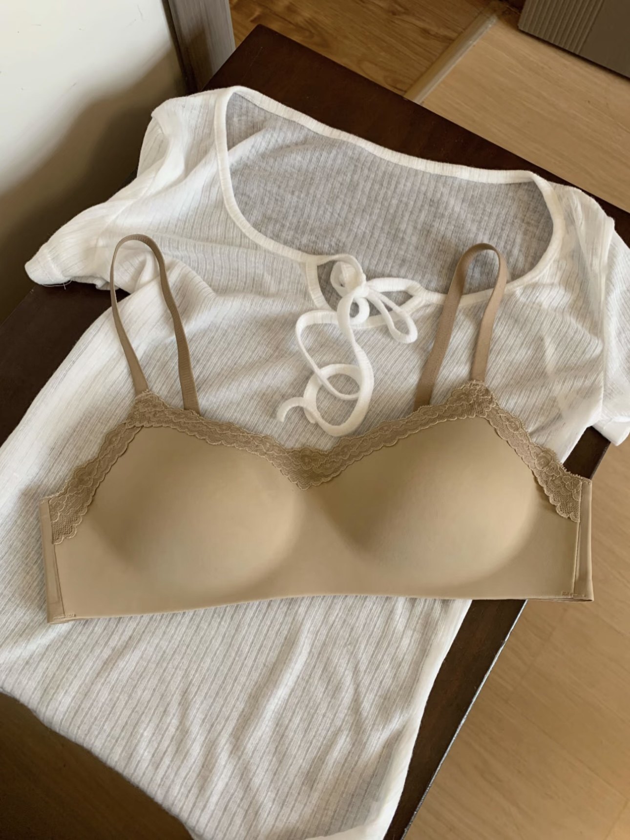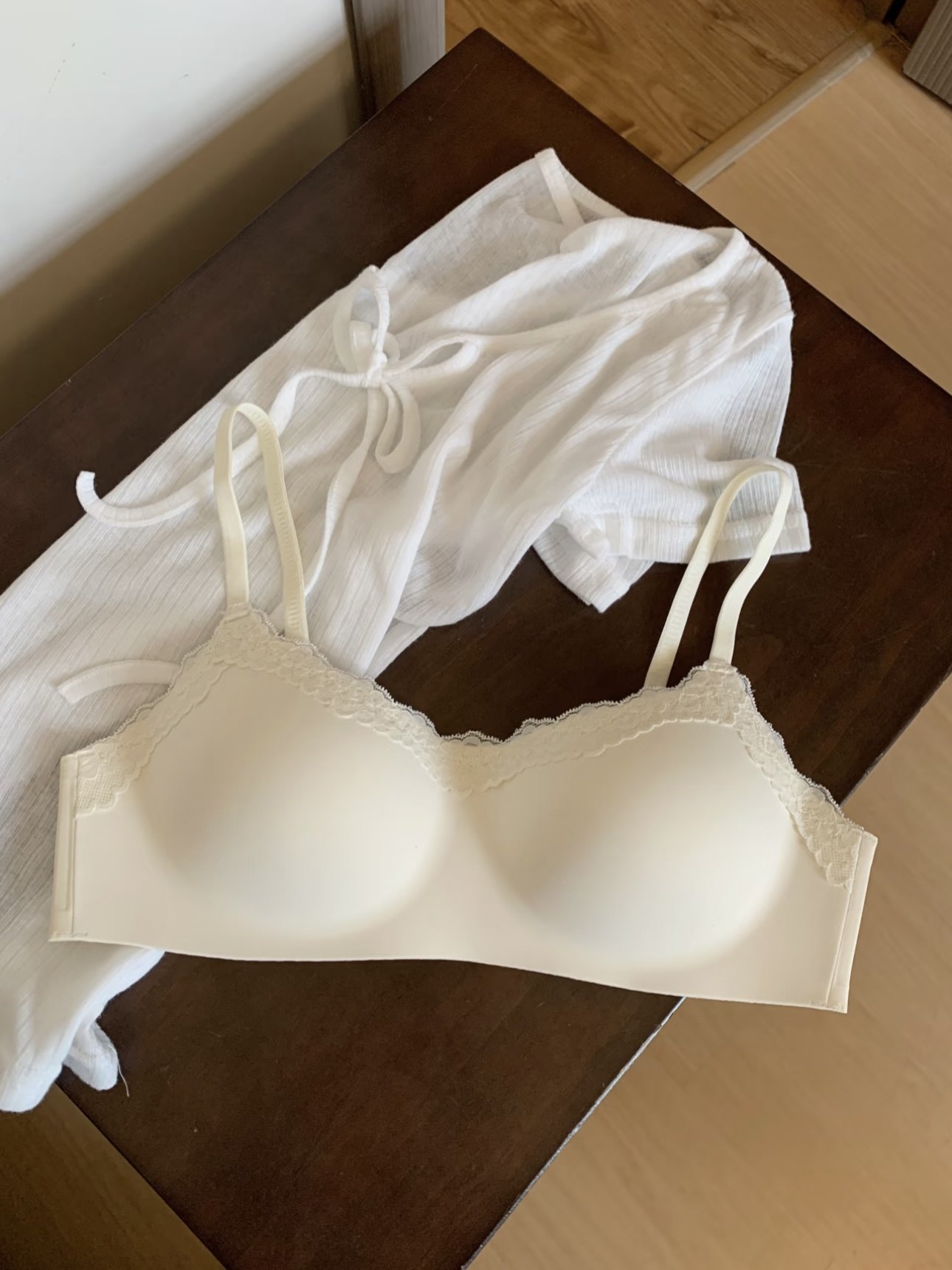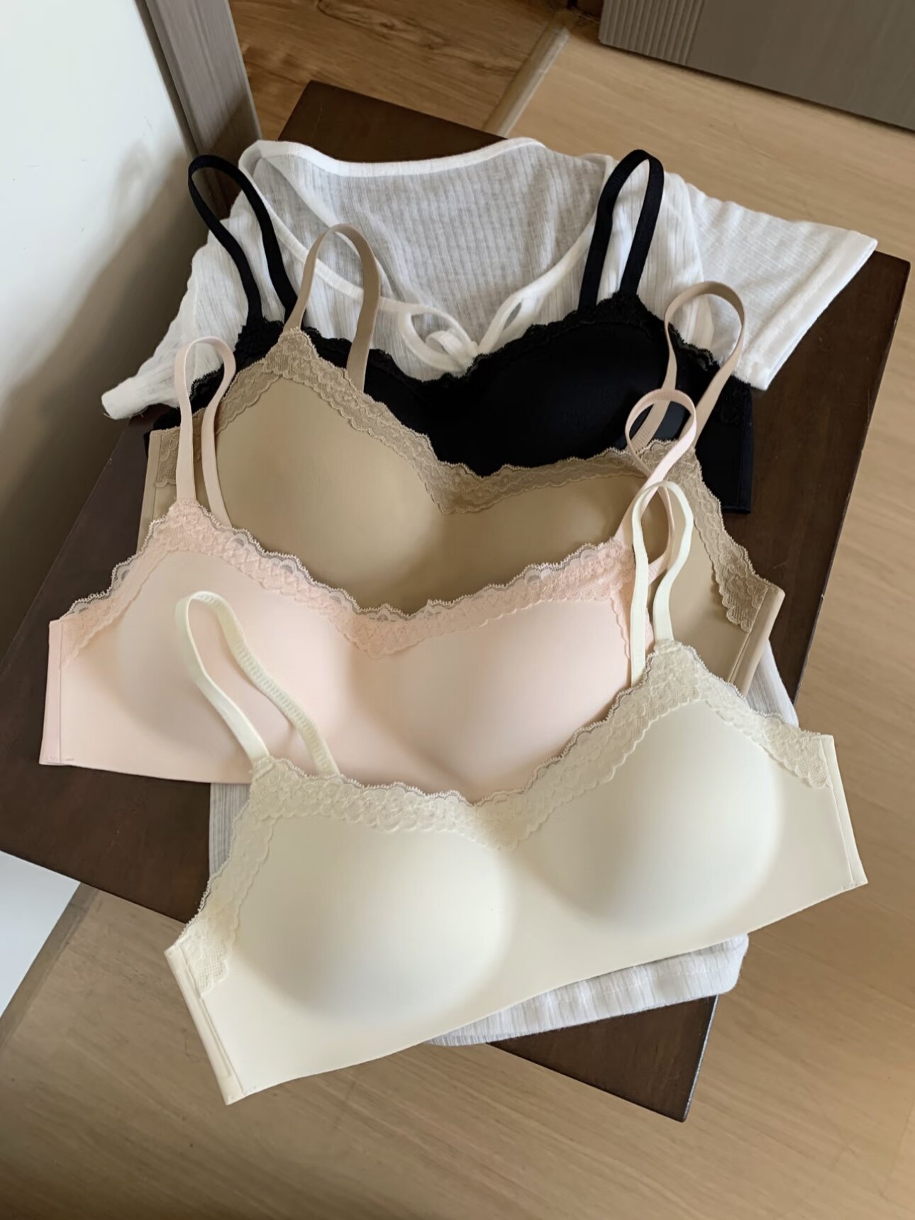 軟糯綿綿無痕無鋼圈甜美蕾絲內衣女小胸聚攏上托防下垂收副乳文胸