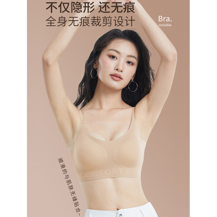 少女美背無痕內衣文胸學生粉底液隱形不透背心固定杯無釦胸罩定型