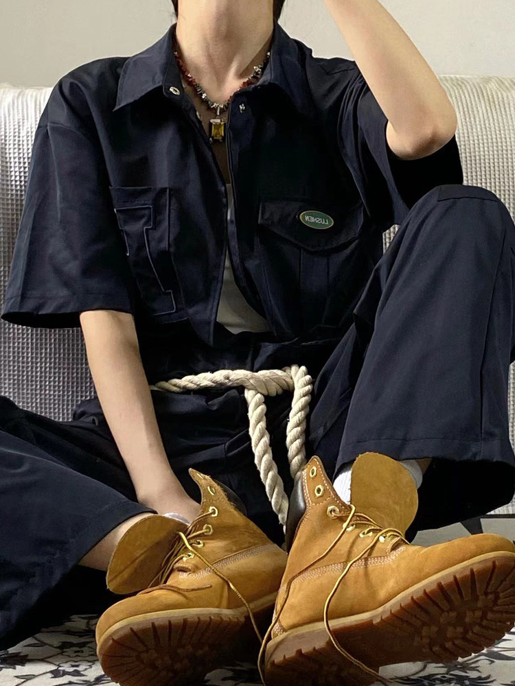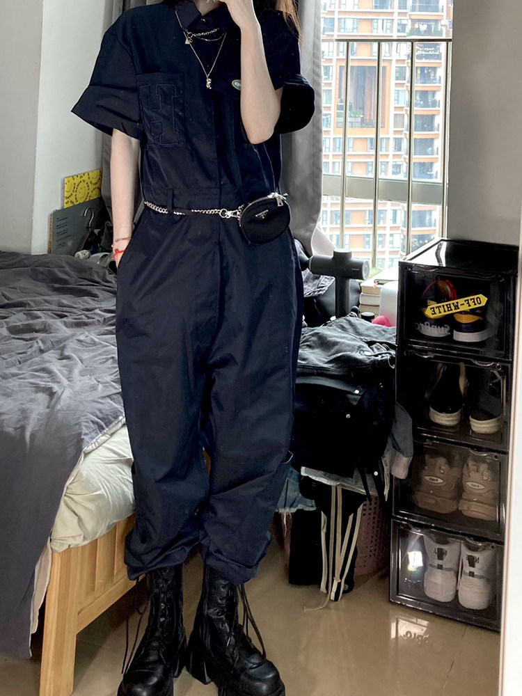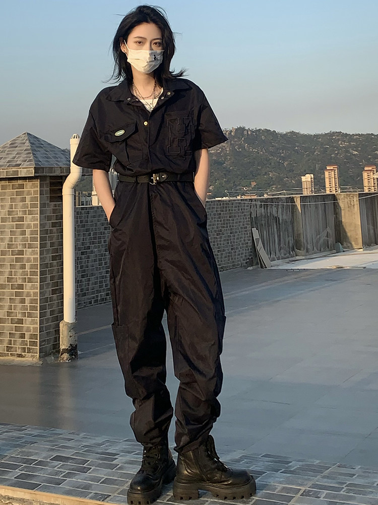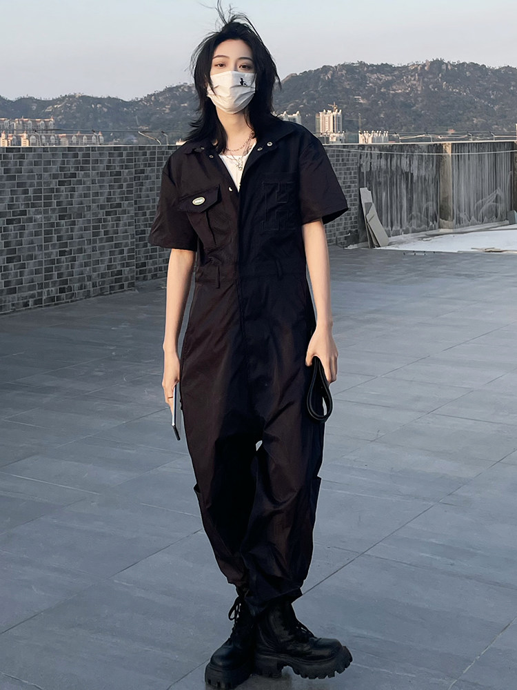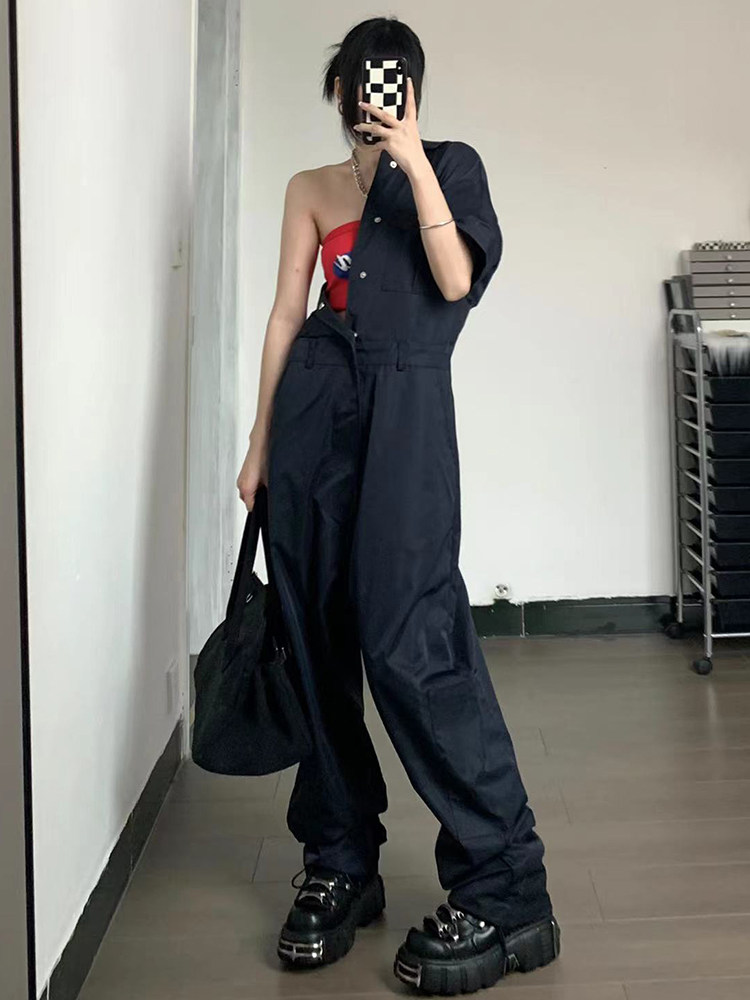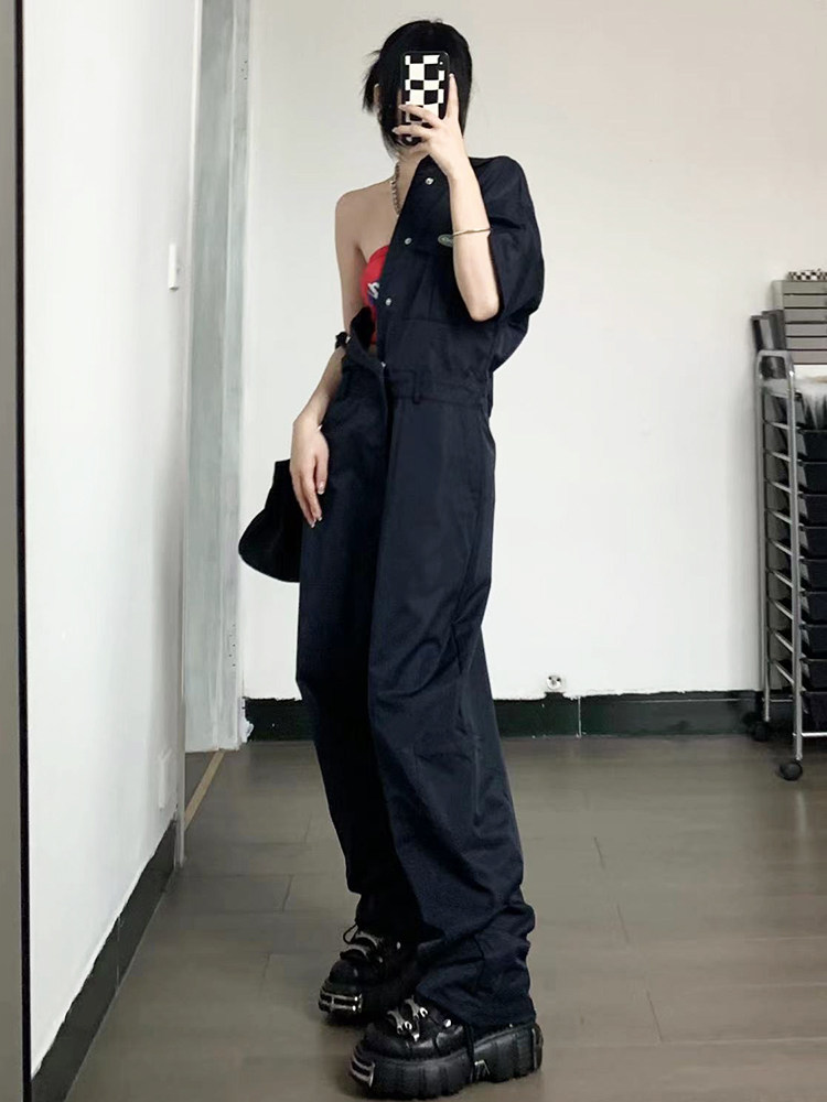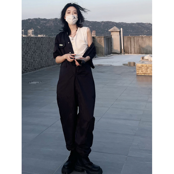 黑色連體工裝背帶褲女2025新款機能連體衣套裝一體式酷颯風連體褲