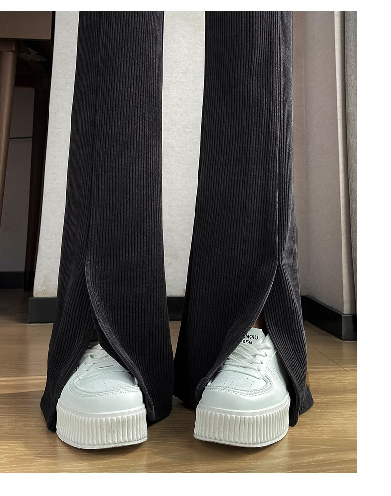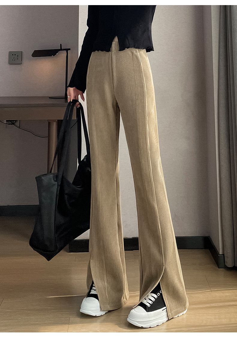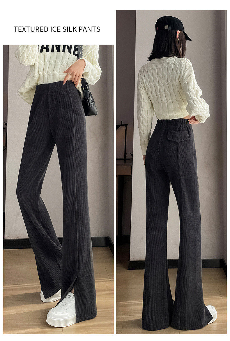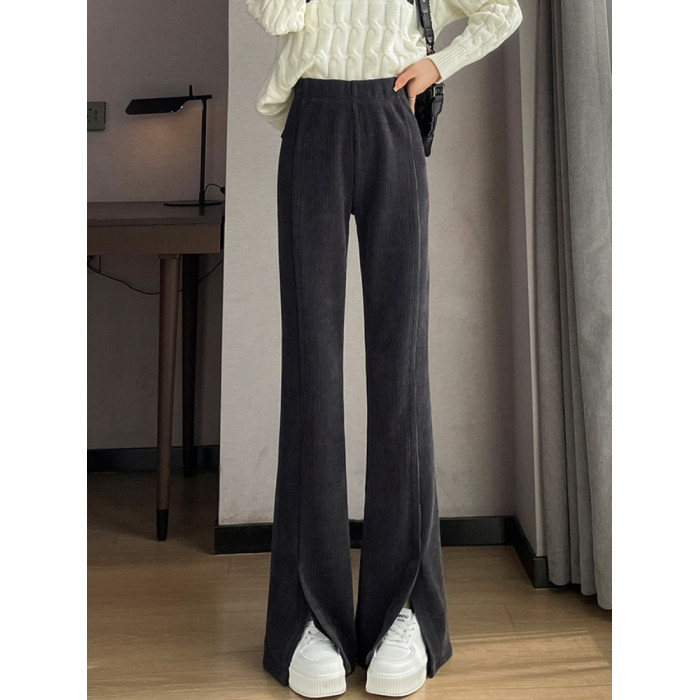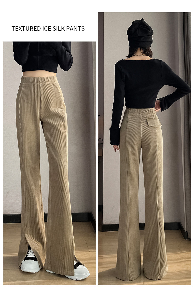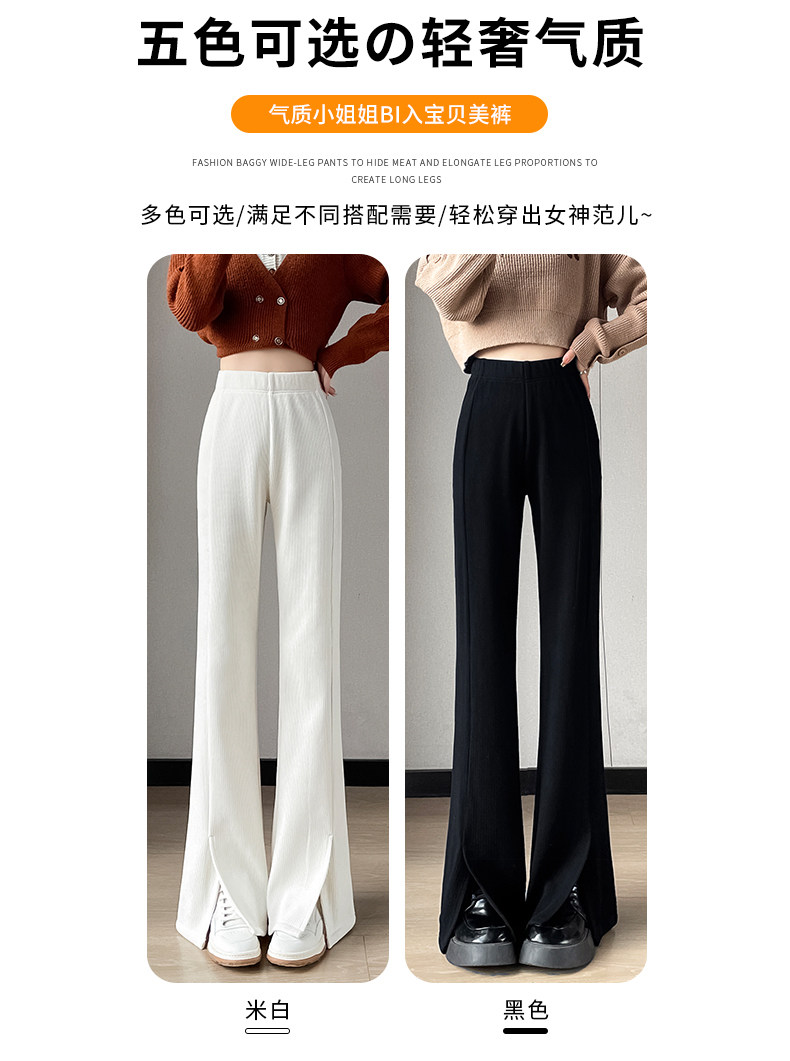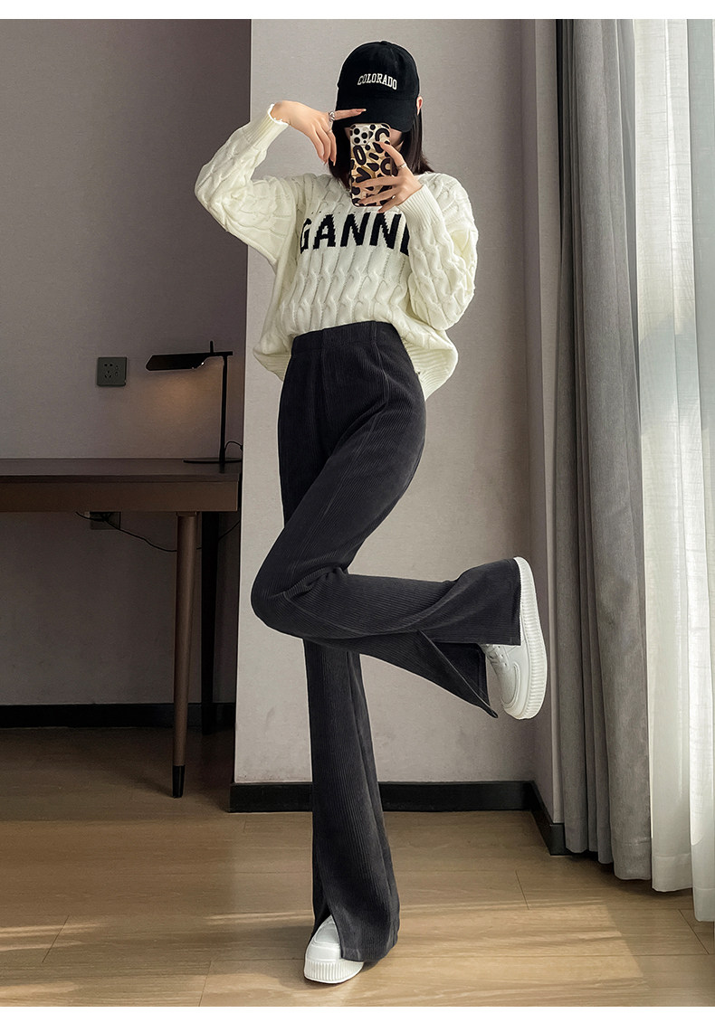 美拉德燈芯絨開叉微喇褲咖色歐棉絨拖地褲秋冬加絨雪尼爾喇叭褲女