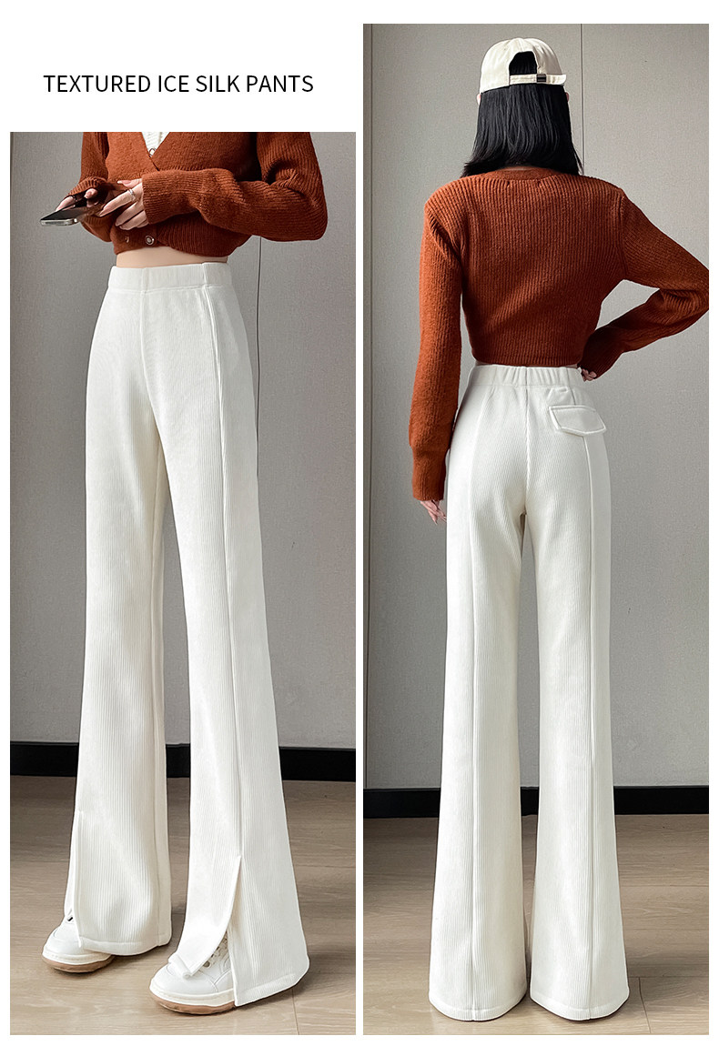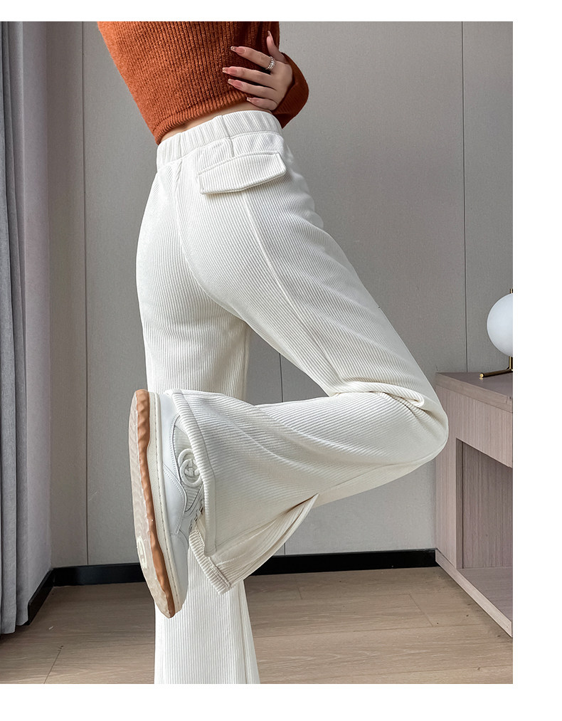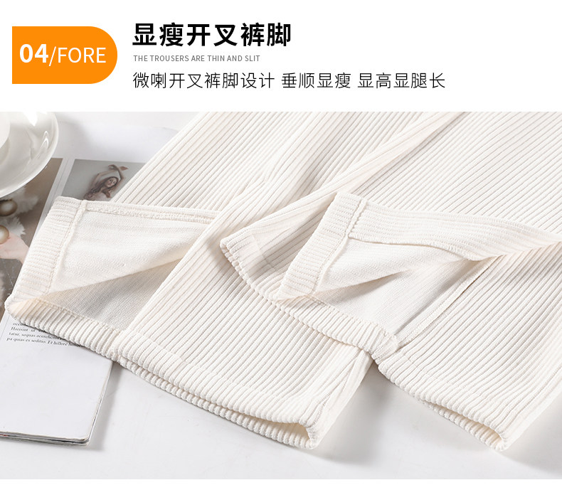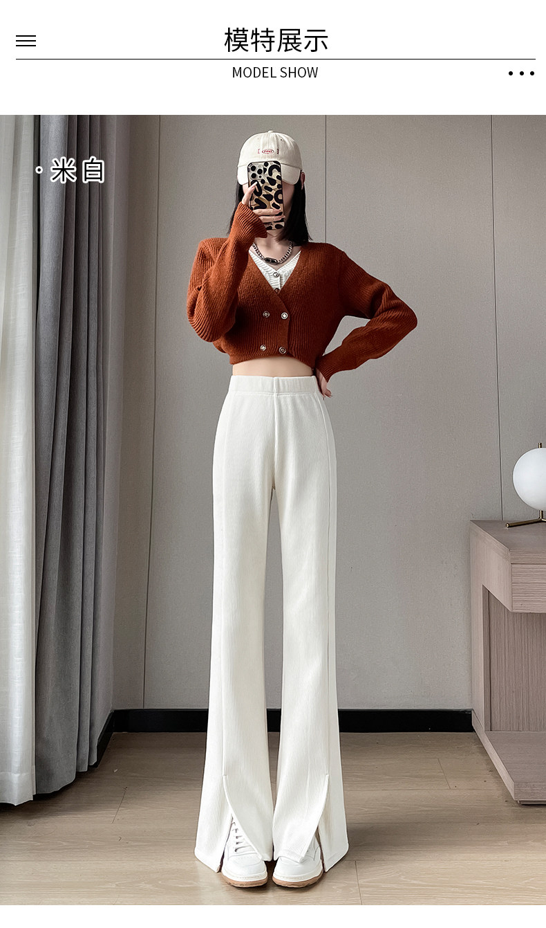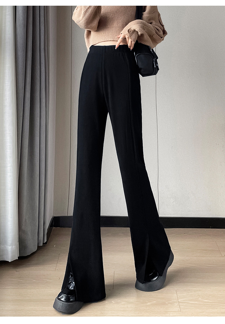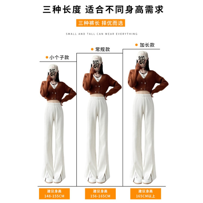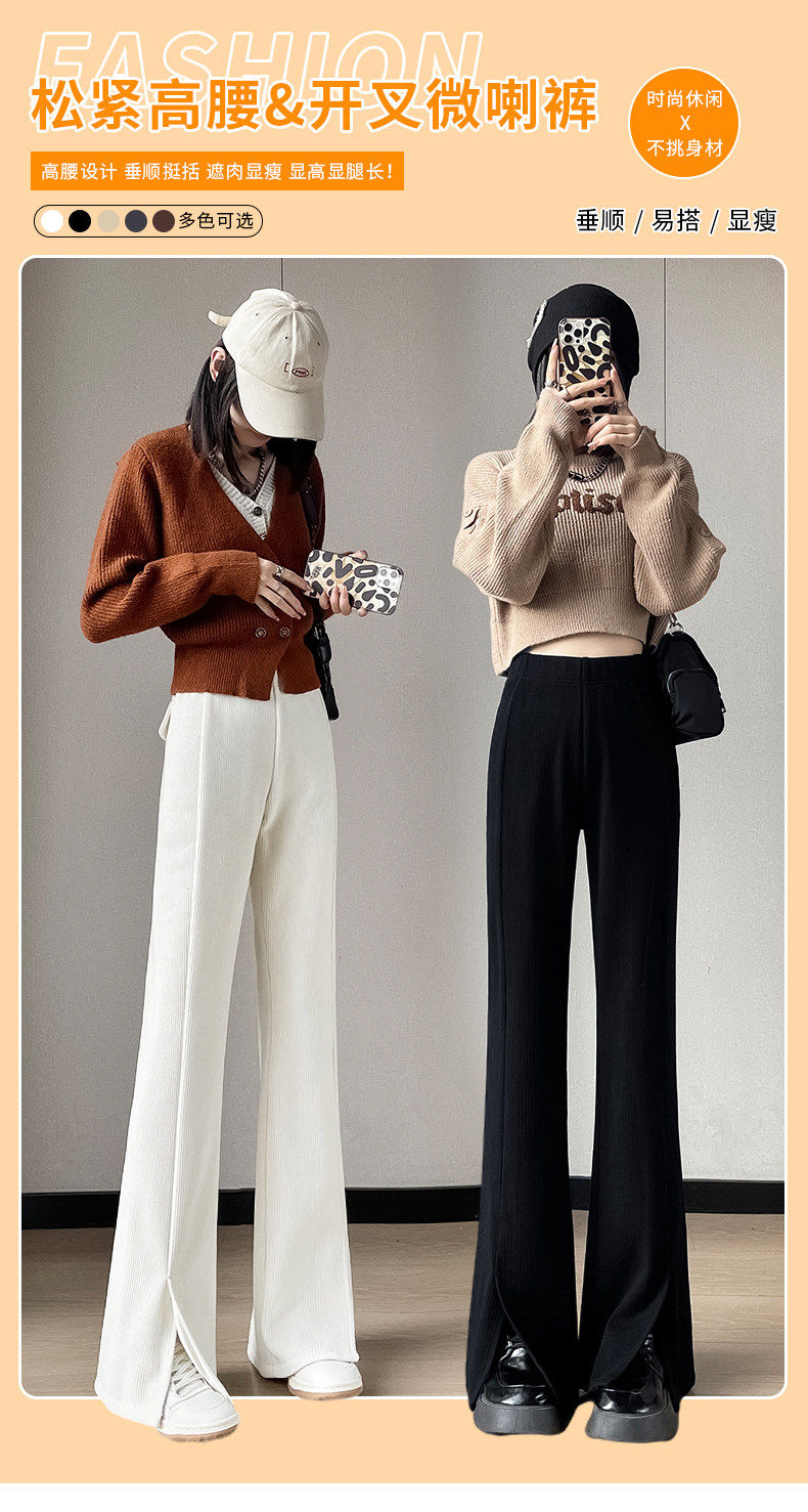 美拉德燈芯絨開叉微喇褲咖色歐棉絨拖地褲秋冬加絨雪尼爾喇叭褲女