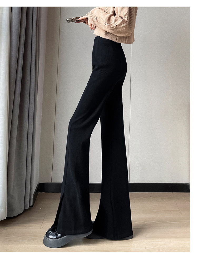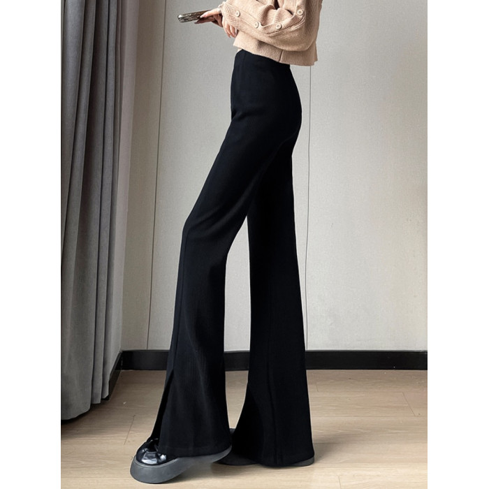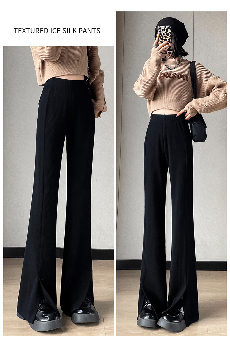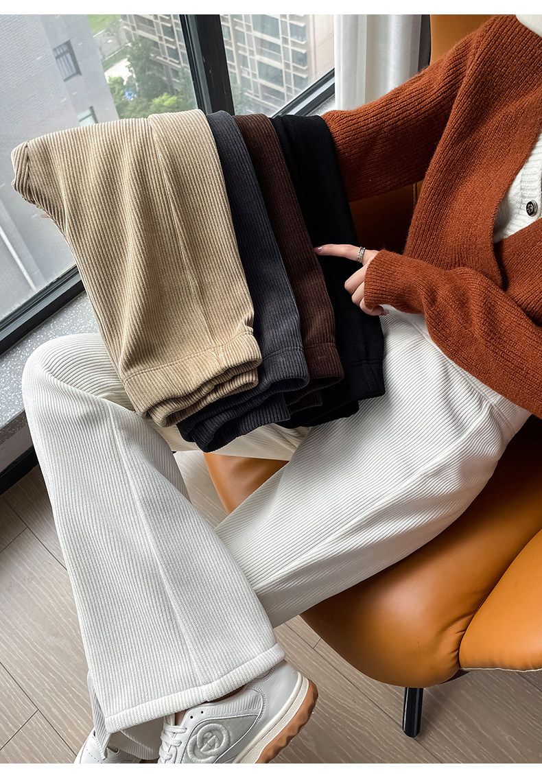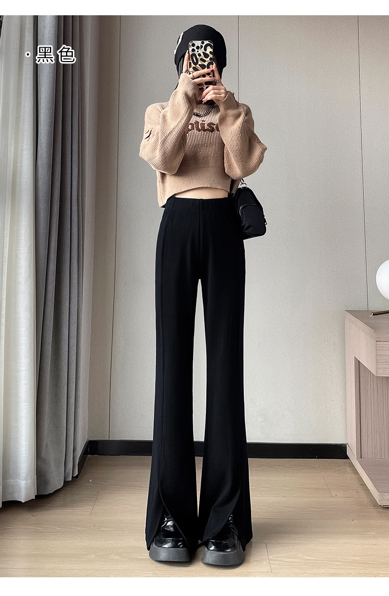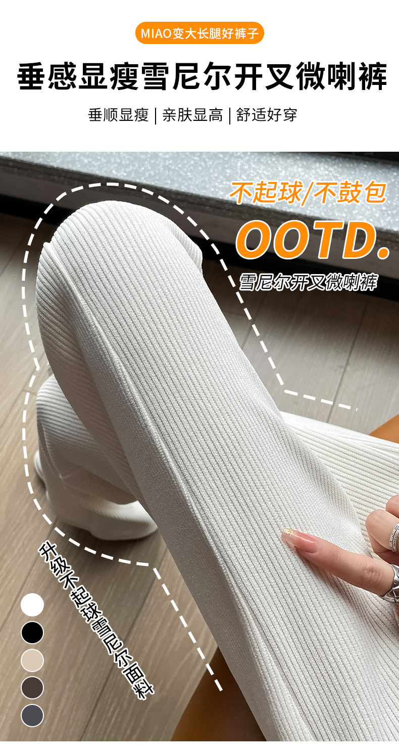 美拉德燈芯絨開叉微喇褲咖色歐棉絨拖地褲秋冬加絨雪尼爾喇叭褲女