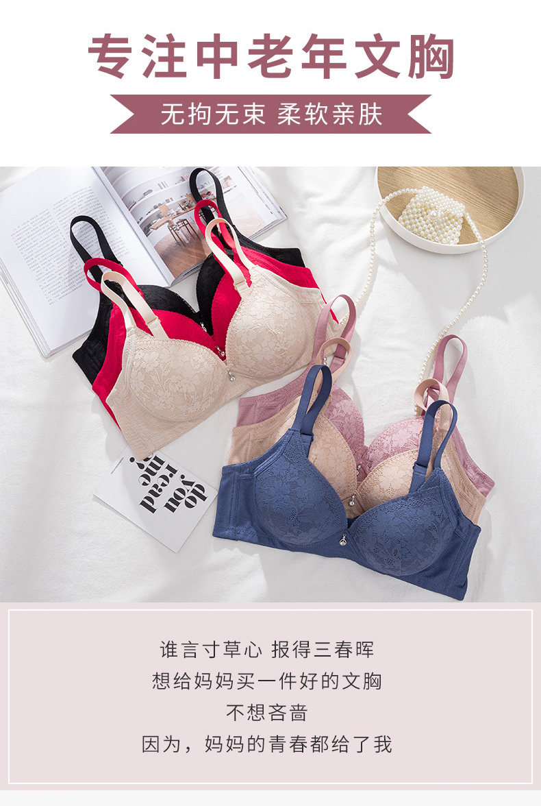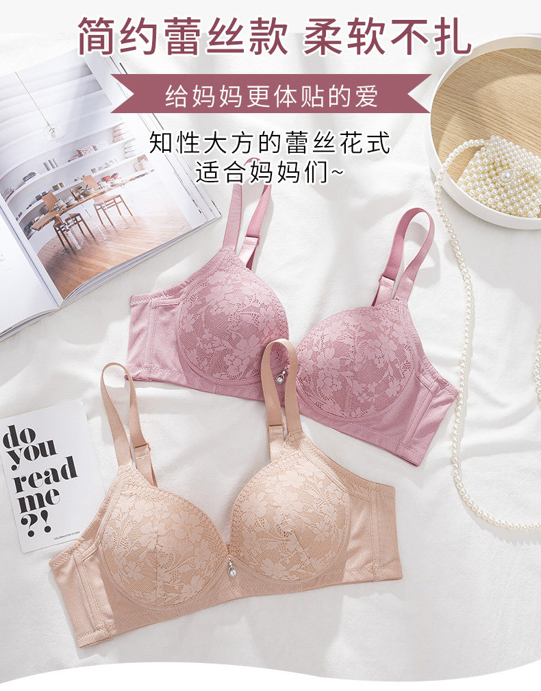 媽媽內衣文胸中年婦女無鋼圈聚攏大碼柔軟透氣舒適蕾絲老年人胸罩