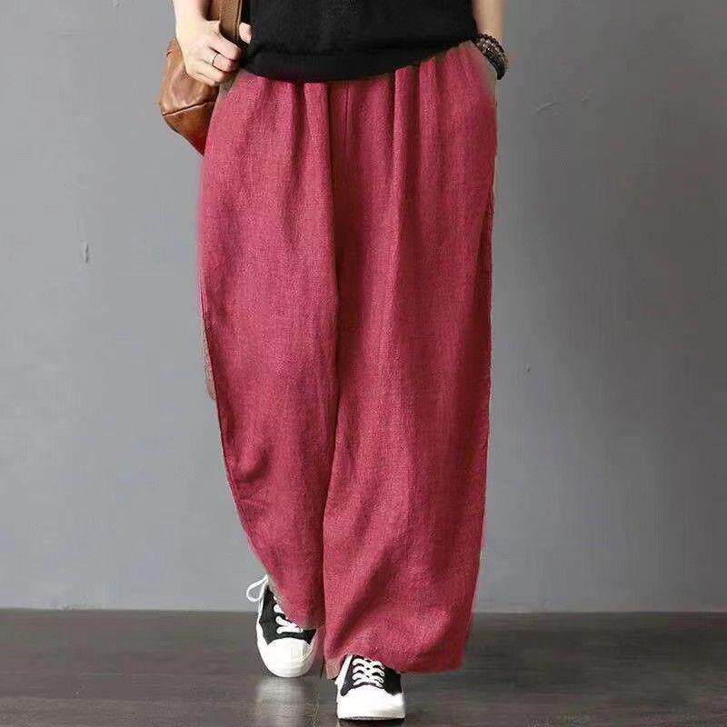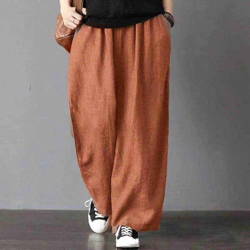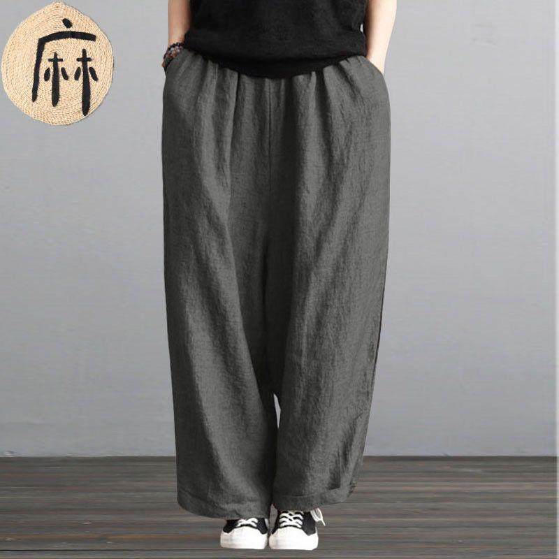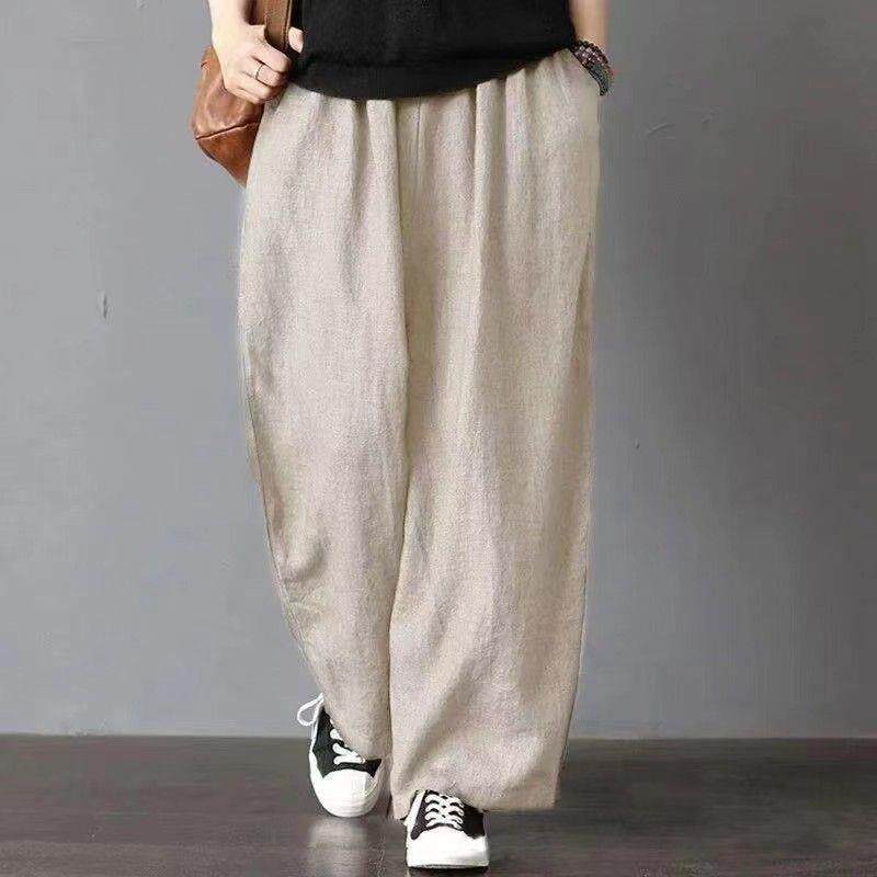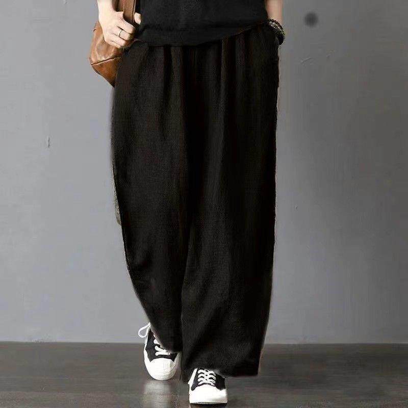 80-300斤春夏秋老爹媽媽休閒褲女復古禪意純色範濶腿褲大碼長褲子