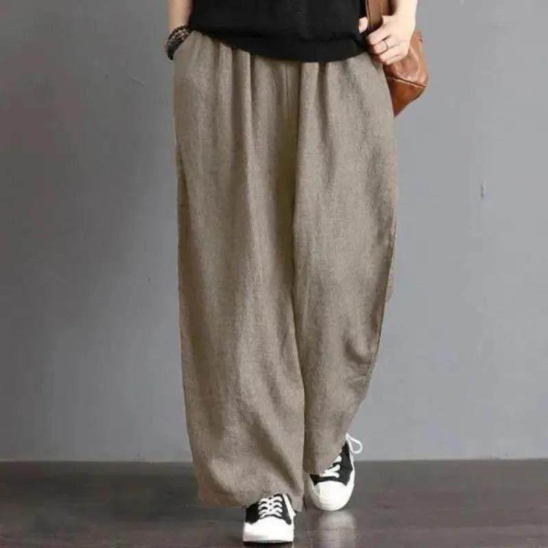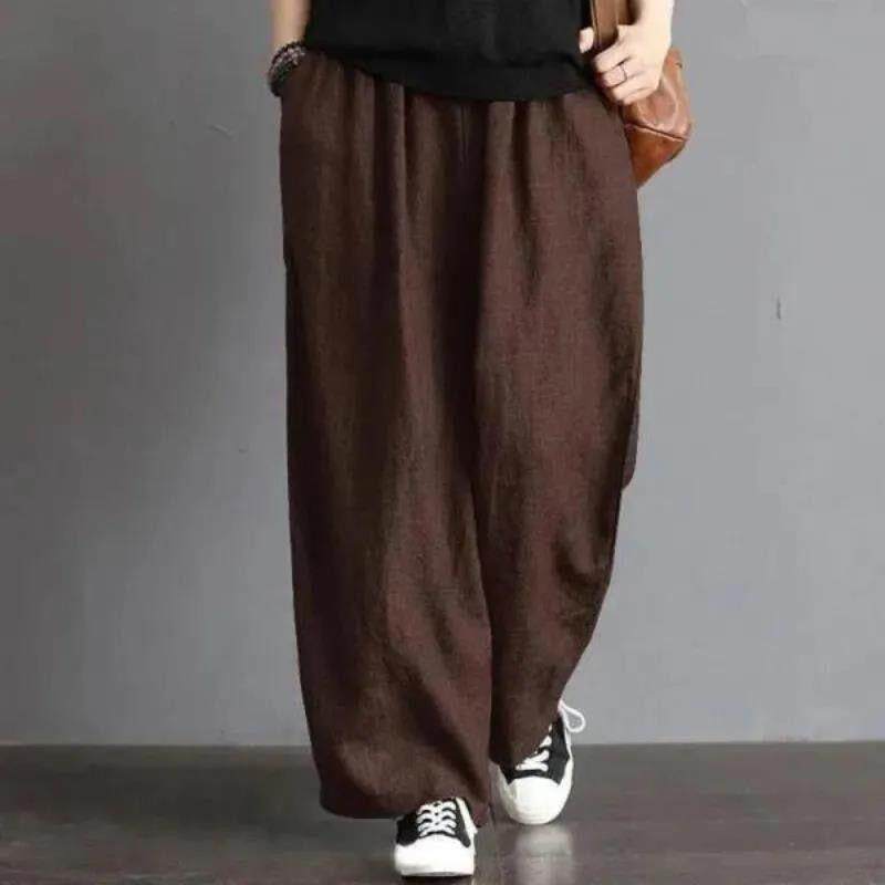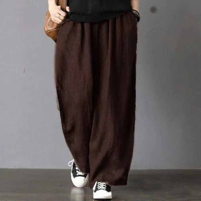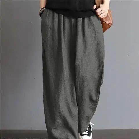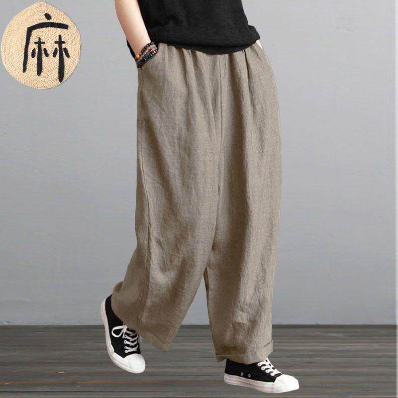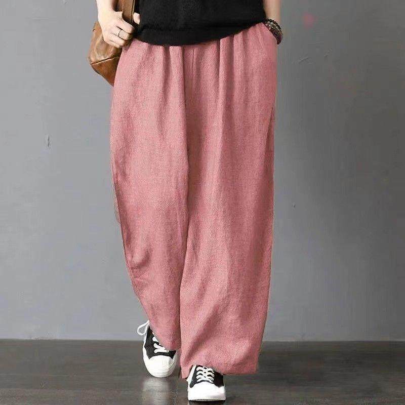 80-300斤春夏秋老爹媽媽休閒褲女復古禪意純色範濶腿褲大碼長褲子