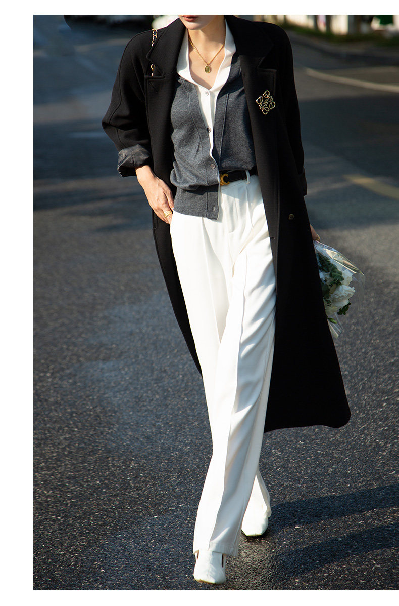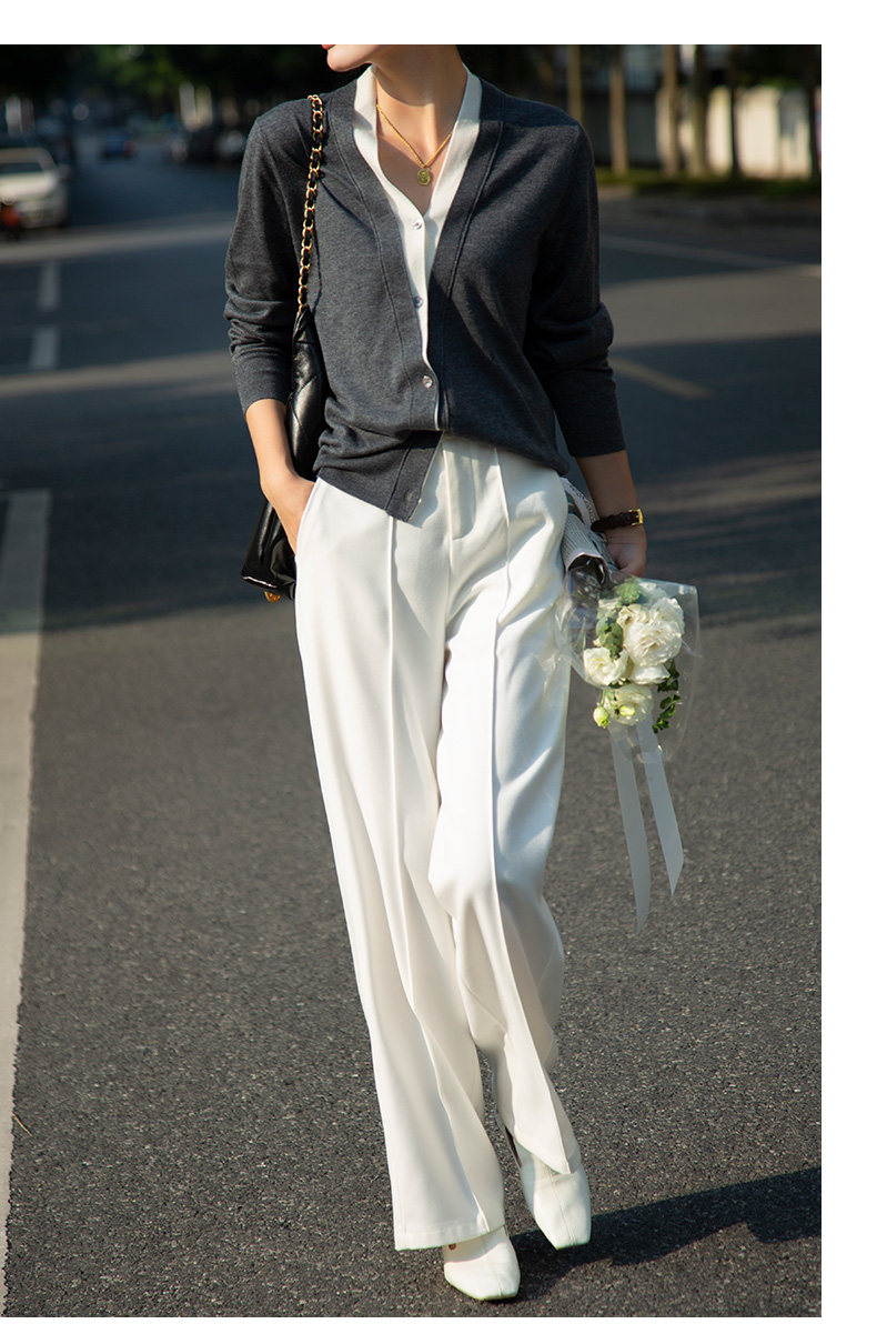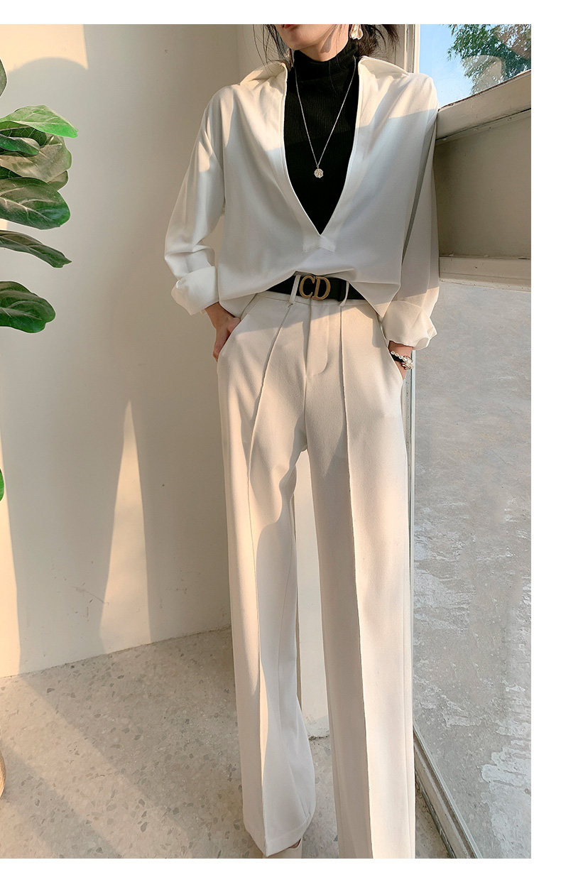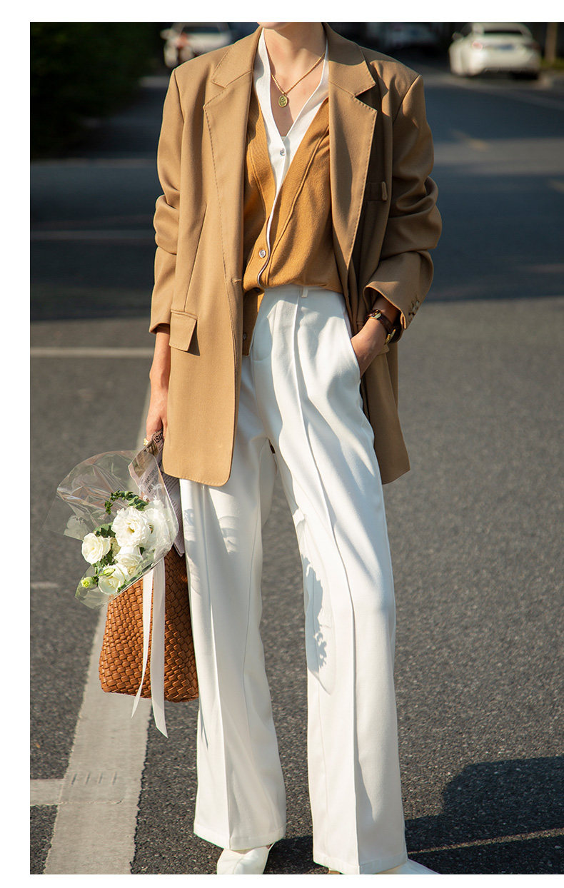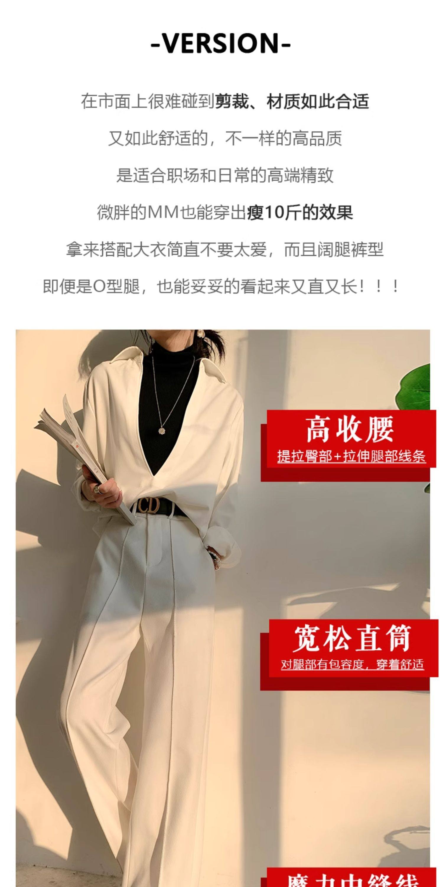 白色西裝濶腿褲女2026年秋冬新款加絨加厚高腰直筒垂感高級感褲子