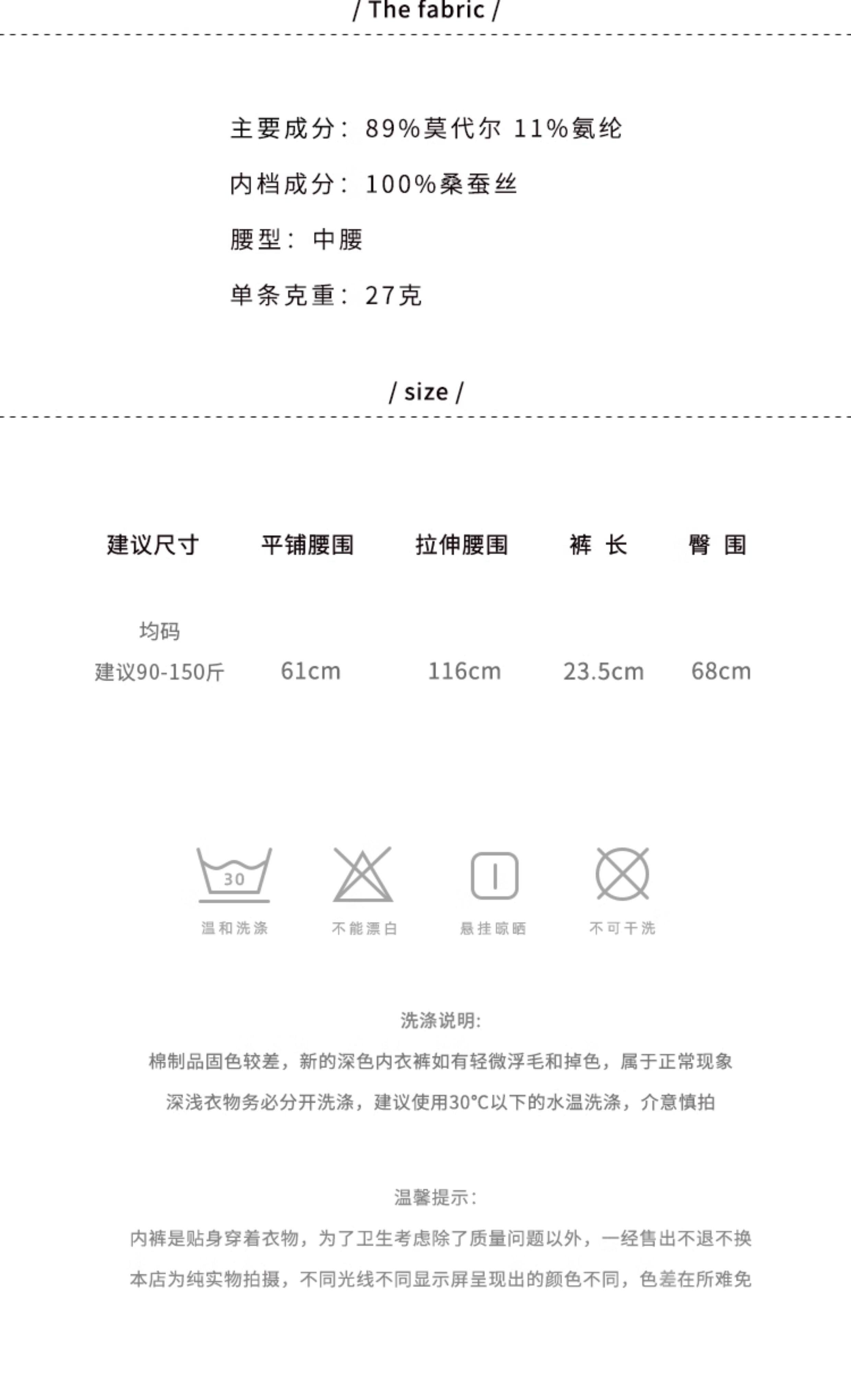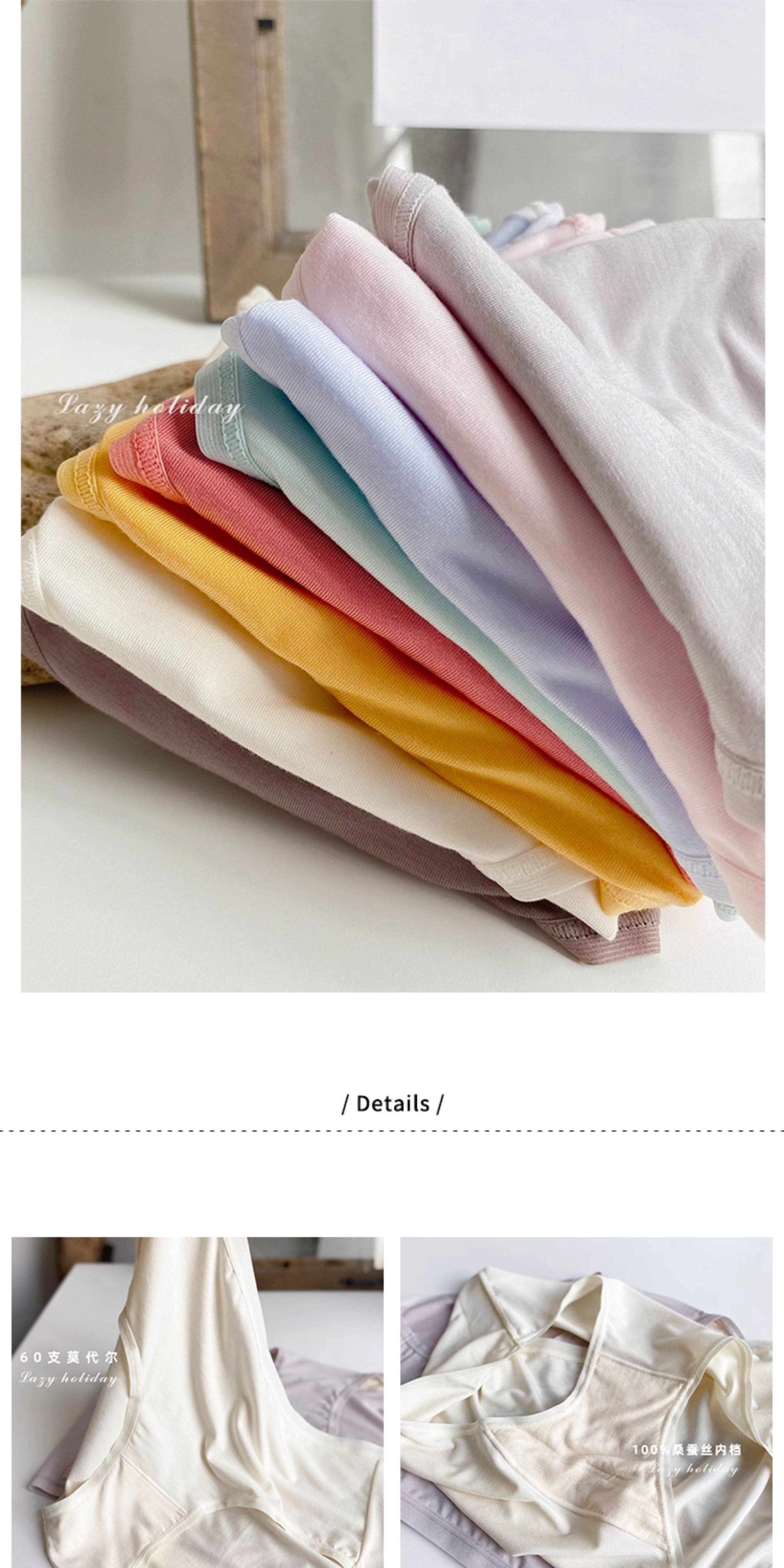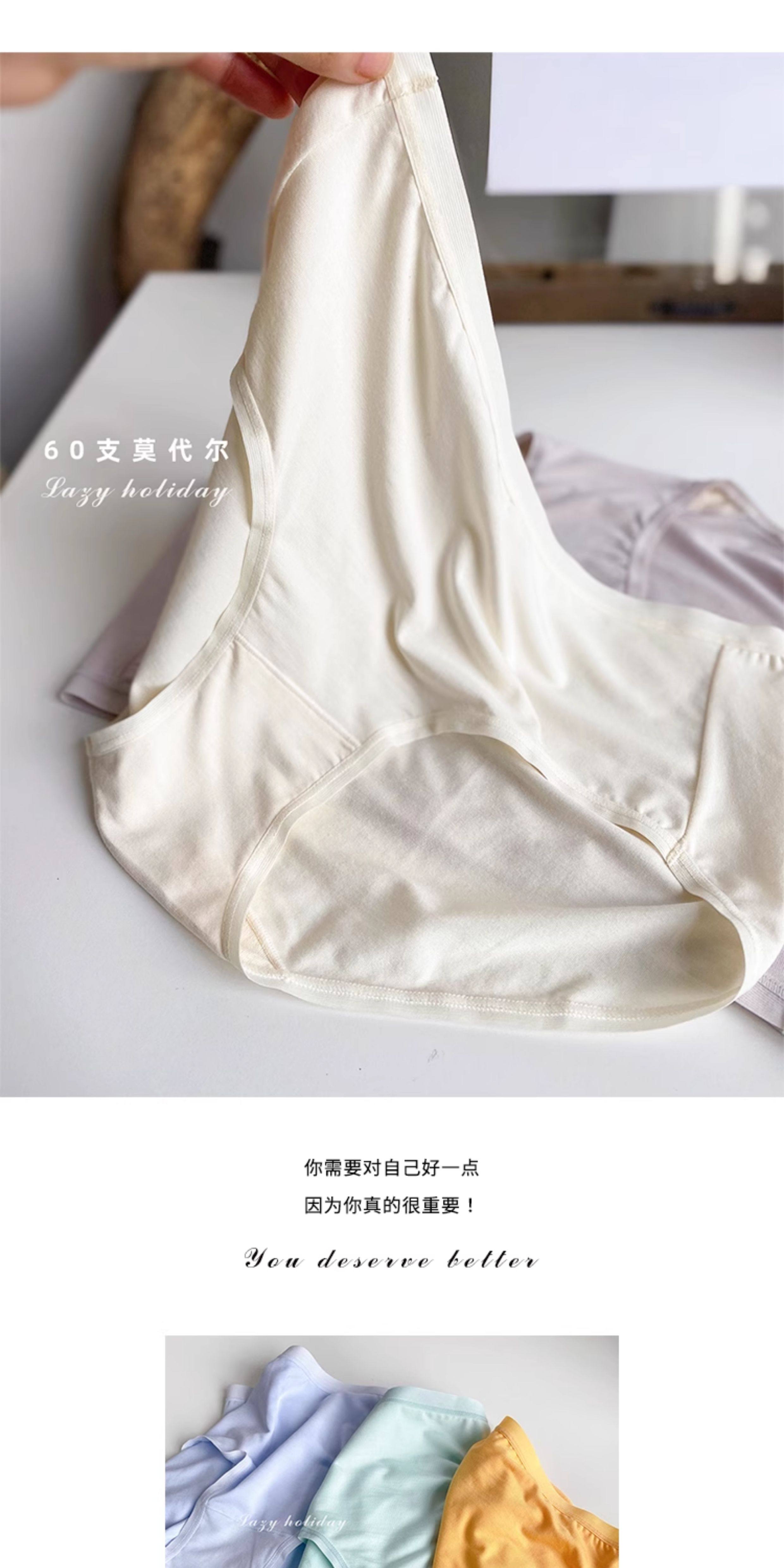 Lazy Holiday莫代爾內褲女生桑蠶絲內檔少女無痕中腰薄款三角短褲