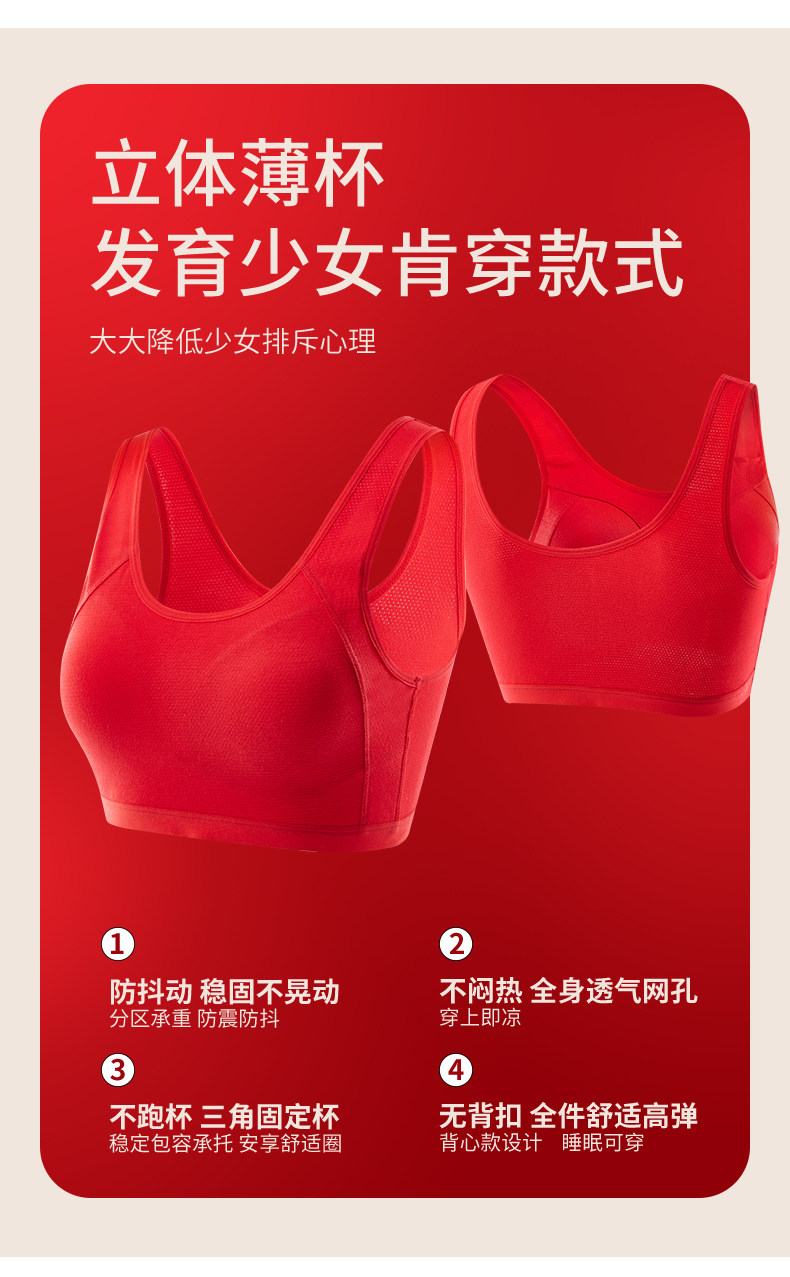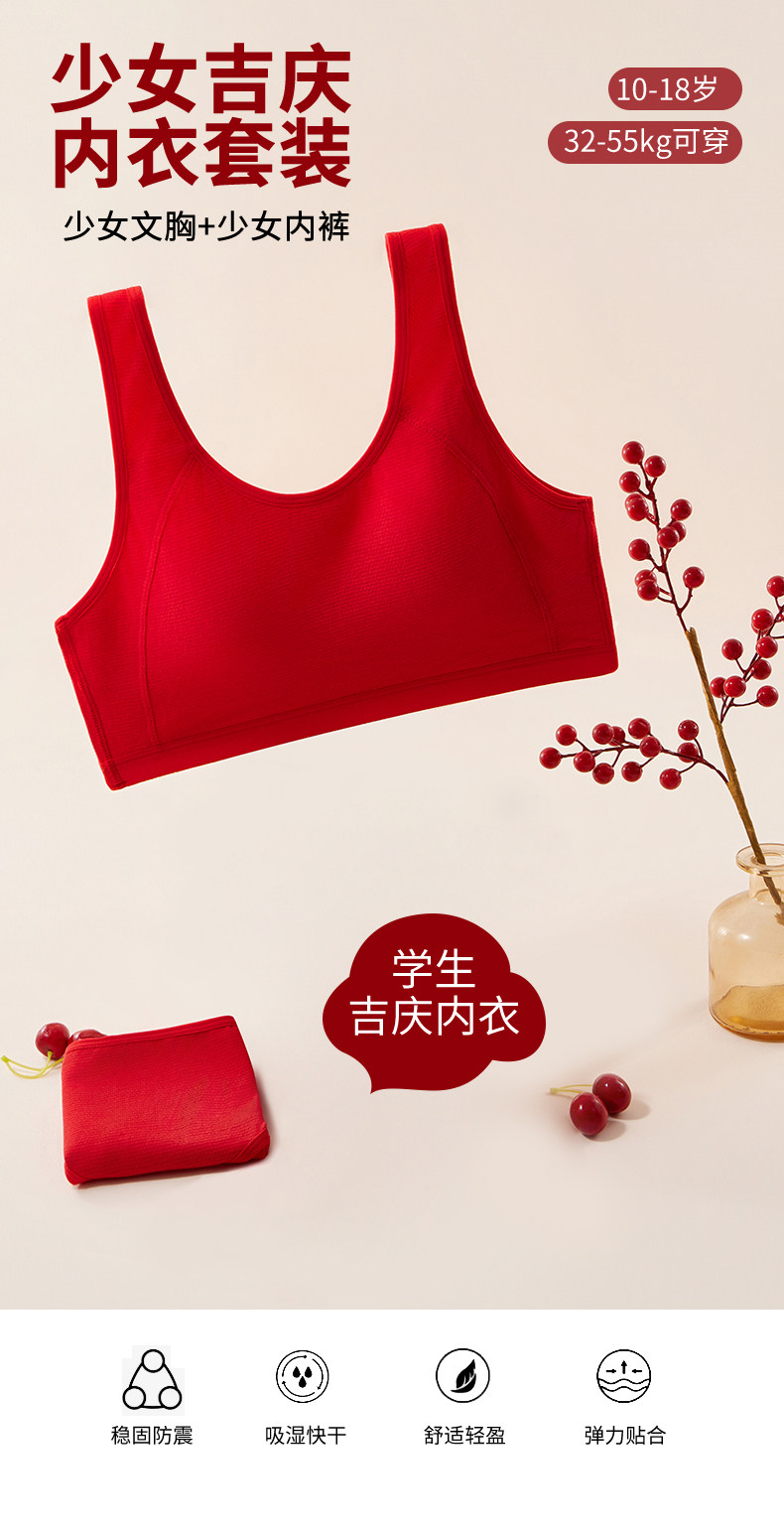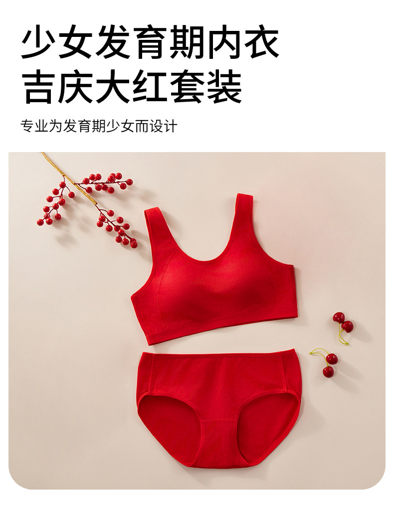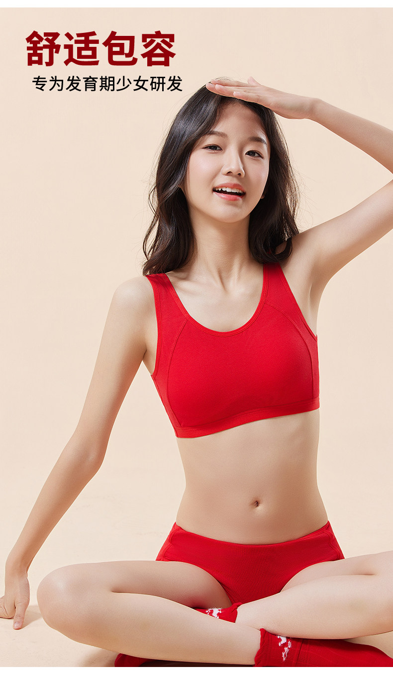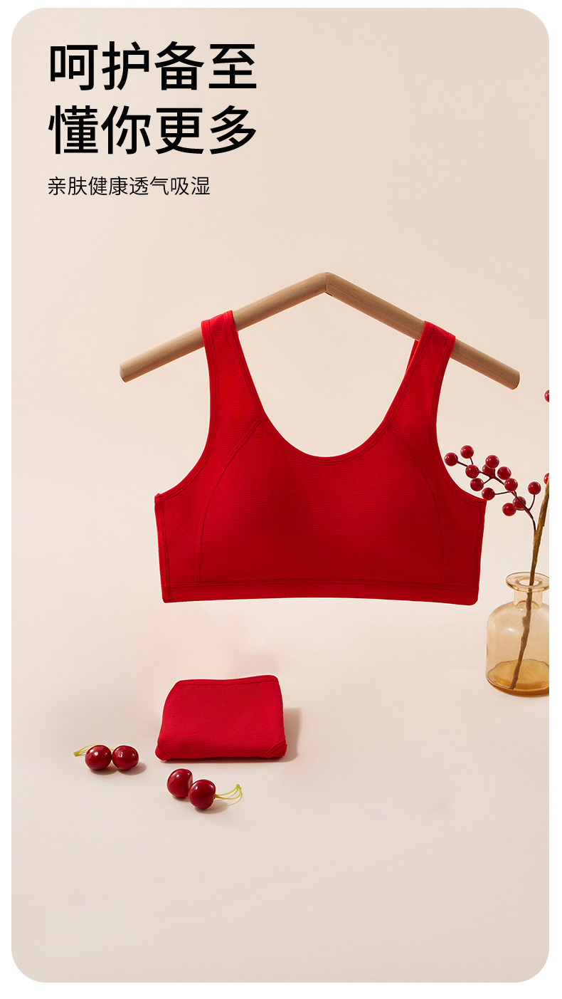 少女本命年大紅色15嵗小背心內衣套裝青春發育期初高中生女童文胸
