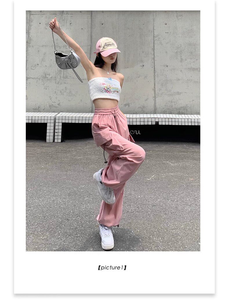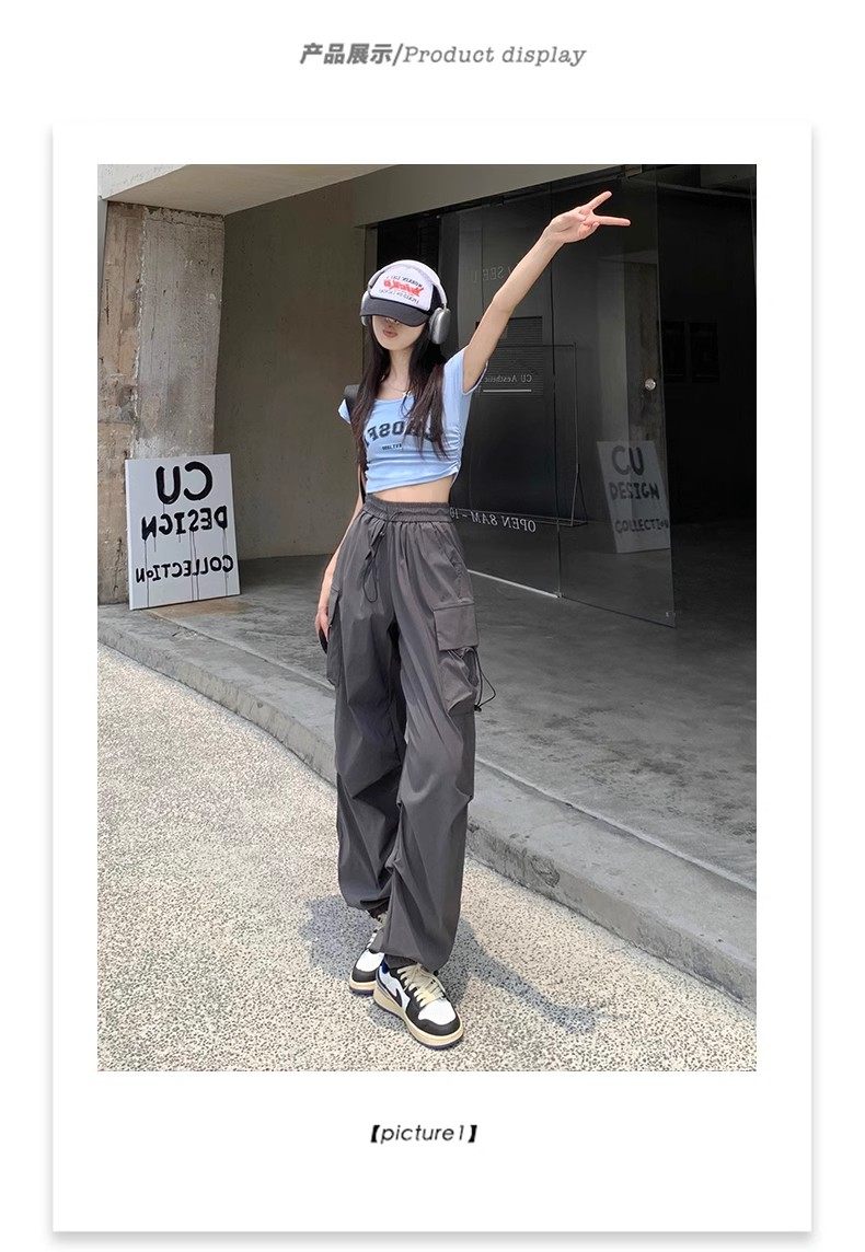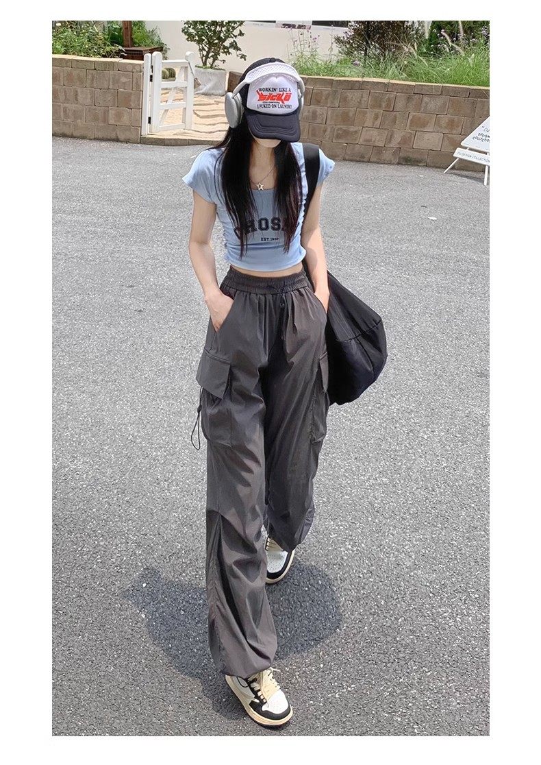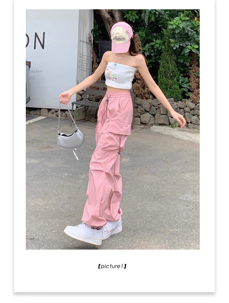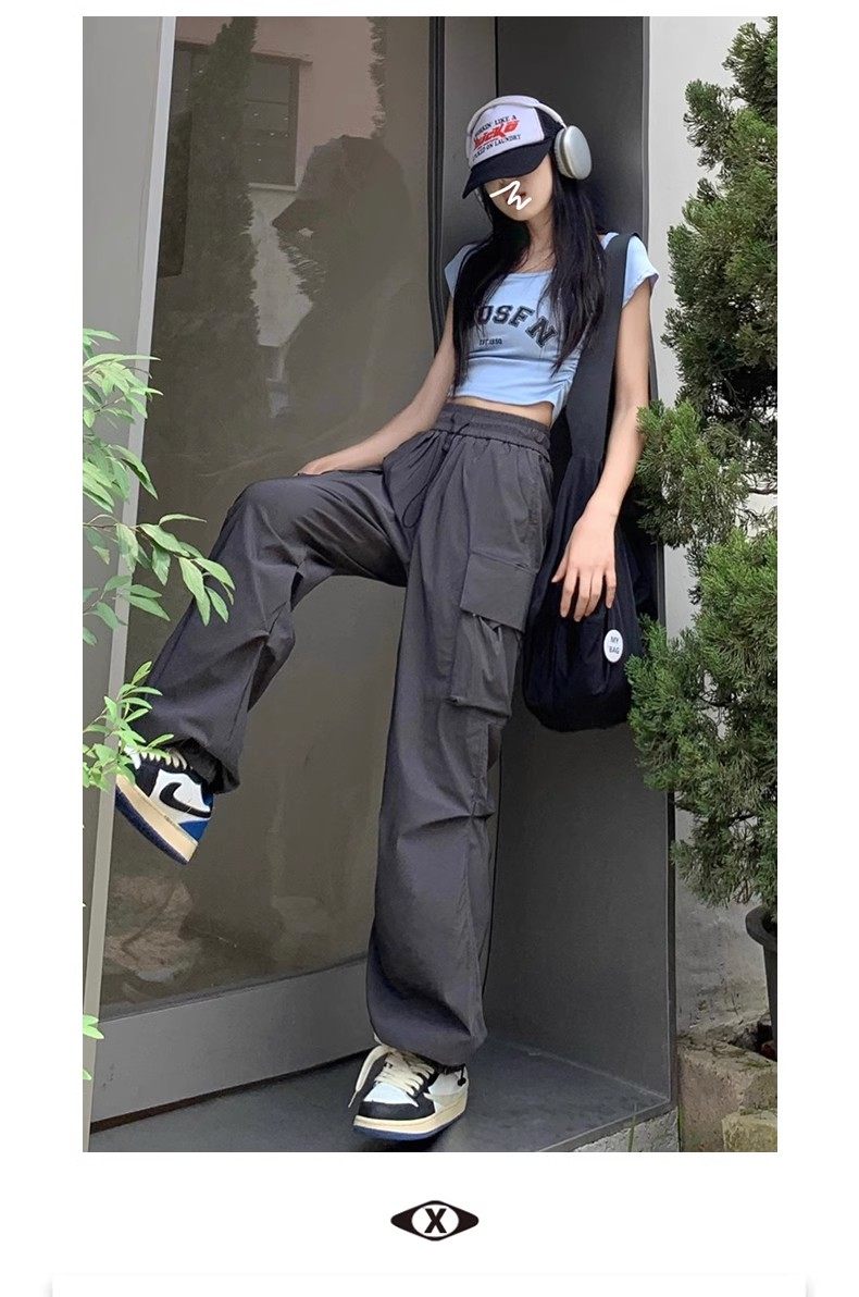 黑色工裝褲女爵士舞寬鬆顯瘦濶腿運動長褲百搭休閒直筒束腳褲子潮